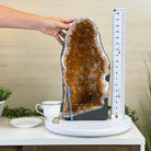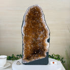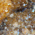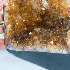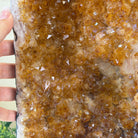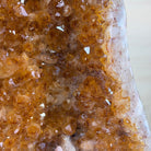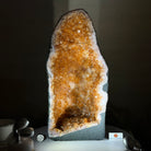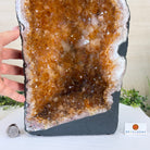 This impressive Extra Plus Quality Brazilian Citrine Cathedral Geode, features radiant golden-amber crystals will enhance your favorite space. This geode displays sparkling citrine points and distinctive white crystal bands along the outer edges, creating a dramatic natural contrast.