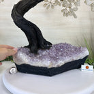 At approximately 22" tall to the top of its bark style branches this gemstone tree is both big and a design statement that will impact any room in your home or office. The amethyst clusters used as bases for this size of our gemstone trees are substantial gemstones on their own.