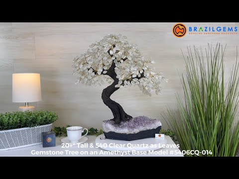 Disclaimer: This is a genuine gemstone handmade item sold by Brazil Gems® as is and as you see it in its images and video. It is the exact tree you will receive. The base may contain natural imperfections as well as imperfections, repairs and broken edges from the extraction, polishing, and prepping processes and the branches and leaf gemstones may contain imperfections as well. To allow for it to stand on its own the amethyst cluster base may have a small amount of cement added to the bottom then painted black. At Brazil Gems® we make every effort to get measurements as exact as possible but they are done by human hands and eyes and therefore may have minor discrepancies.