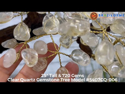 25" Tall Large Handmade Clear Quartz Gemstone Tree on an Amethyst Base, 720 gems #5407CQ-006 by Brazil Gems