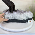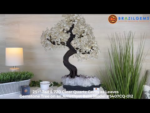 Disclaimer: This is a genuine gemstone handmade item sold by Brazil Gems® as is and as you see it in its images and video. It is the exact tree you will receive. The base may contain natural imperfections as well as imperfections, repairs and broken edges from the extraction, polishing, and prepping processes and the branches and leaf gemstones may contain imperfections as well.  To allow for it to stand on its own the amethyst cluster base may have a small amount of cement added to the bottom then painted black. At Brazil Gems® we make every effort to get measurements as exact as possible but they are done by human hands and eyes and therefore may have minor discrepancies.
