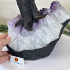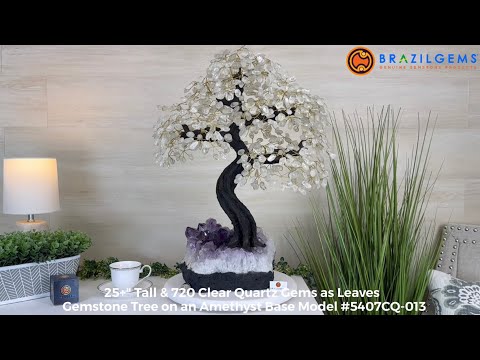 Disclaimer: This is a genuine gemstone handmade item sold by Brazil Gems® as is and as you see it in its images and video. It is the exact tree you will receive. The base may contain natural imperfections as well as imperfections, repairs and broken edges from the extraction, polishing, and prepping processes and the branches and leaf gemstones may contain imperfections as well. To allow for it to stand on its own the amethyst cluster base may have a small amount of cement added to the bottom then painted black. At Brazil Gems® we make every effort to get measurements as exact as possible but they are done by human hands and eyes and therefore may have minor discrepancies.