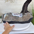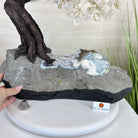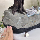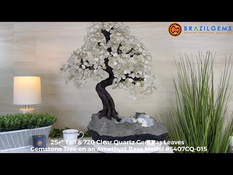 Disclaimer: This is a genuine gemstone handmade item sold by Brazil Gems® as is and as you see it in its images and video. It is the exact tree you will receive. The base may contain natural imperfections as well as imperfections, repairs and broken edges from the extraction, polishing, and prepping processes and the branches and leaf gemstones may contain imperfections as well.  To allow for it to stand on its own the amethyst cluster base may have a small amount of cement added to the bottom then painted black. At Brazil Gems® we make every effort to get measurements as exact as possible but they are done by human hands and eyes and therefore may have minor discrepancies.