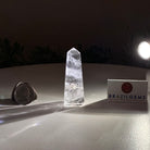 Crafted by master artisans in Brazil, this Clear Quartz crystal obelisk showcases 4 smooth, flat sides that taper to a sharp, elegant point. Polished to perfection with a flat base for upright display, this crystal point stands tall as a testament to skilled craftsmanship. Its translucent beauty captures light, revealing delicate veils and inclusions formed over millions of years deep within the earth.