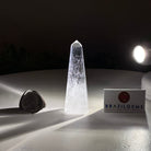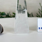 Crafted by master artisans in Brazil, this Clear Quartz crystal obelisk showcases 4 smooth, flat sides that taper to a sharp, elegant point. Polished to perfection with a flat base for upright display, this crystal point stands tall as a testament to skilled craftsmanship. Its translucent beauty captures light, revealing delicate veils and inclusions formed over millions of years deep within the earth.