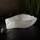 Elegant and versatile, this Clear Quartz decorative bowl is handcrafted from natural Brazilian stone and polished to reveal soft white tones. Use it as a soap dish, jewelry and ring holder, or a decorative catch-all for small items like crystals, keys, or loose change. Its smooth, durable surface makes it ideal for bathroom countertops, bedside tables, or entryway décor. Its edges are rough and not polished.