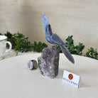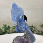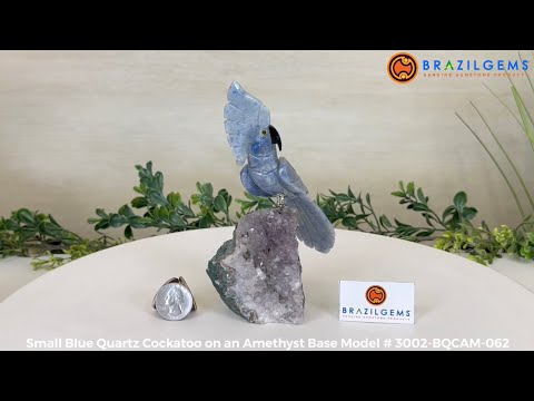 Small Hand-Carved Blue Quartz Cockatoo 5.9" Long on an Amethyst Base #3002-BQCAM-062