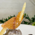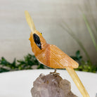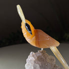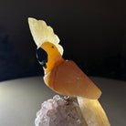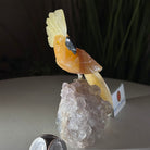 Small Hand-Carved Orange Calcite Cockatoo 5.2" Long on an Amethyst Base, #3002-ORCAM-060
