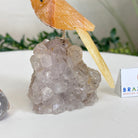 Disclaimer: This is a natural gemstone product sold by Brazil Gems® as is and as you see it in its images and video. The bird figurine has been hand carved out of natural gemstones and constructed together to give it its unique look. It and its cluster base may contain natural imperfections as well as imperfections, broken edges and repairs from the hand carving, extraction, mounting and prepping processes. The cluster base has a small hole drilled in the top for the bird to mount into. The crystal bird detaches from its base for shipping purposes. At Brazil Gems® we make every effort to get measurements as exact as possible but they are done by human hands and eyes and therefore may have minor discrepancies.