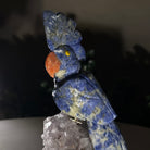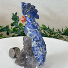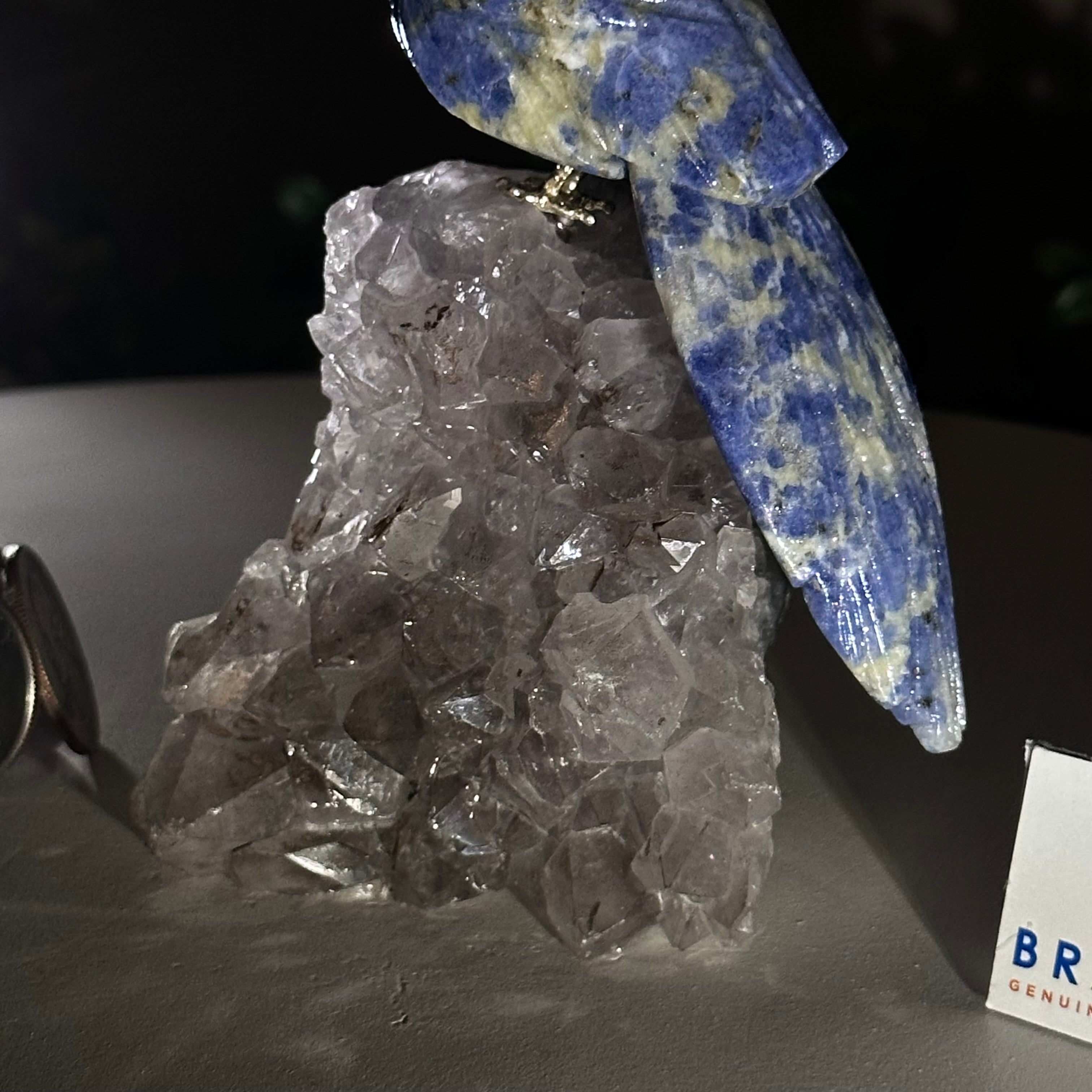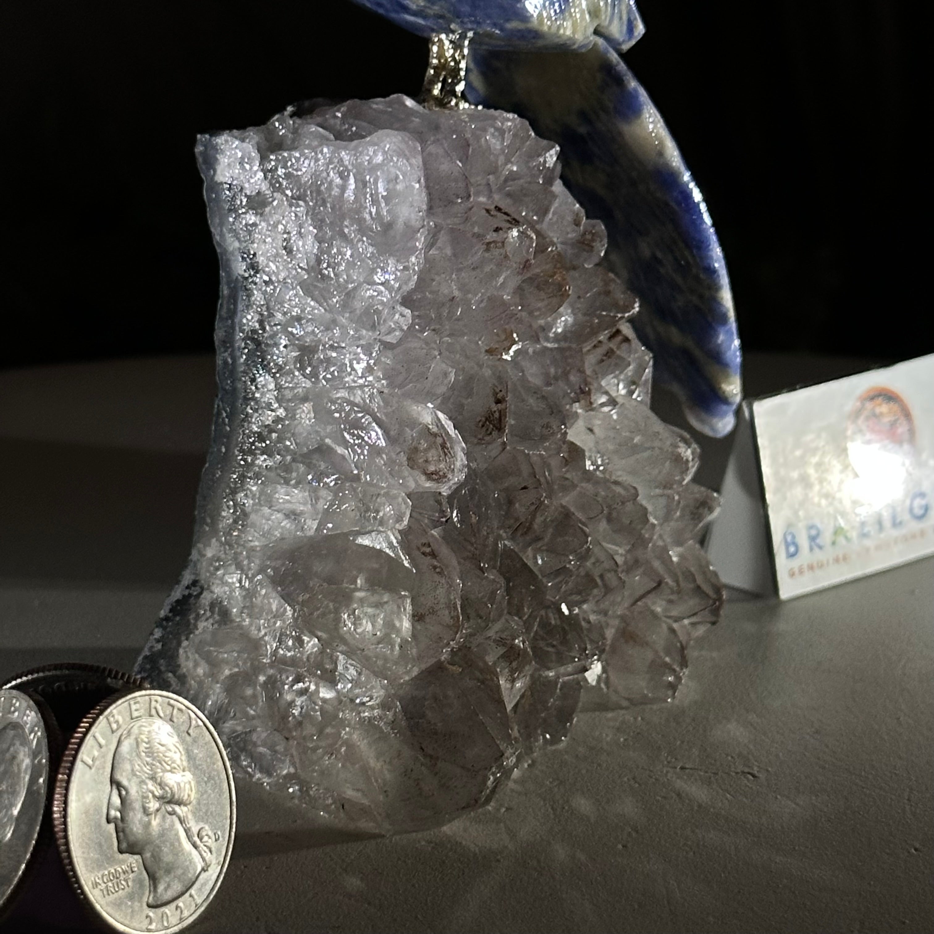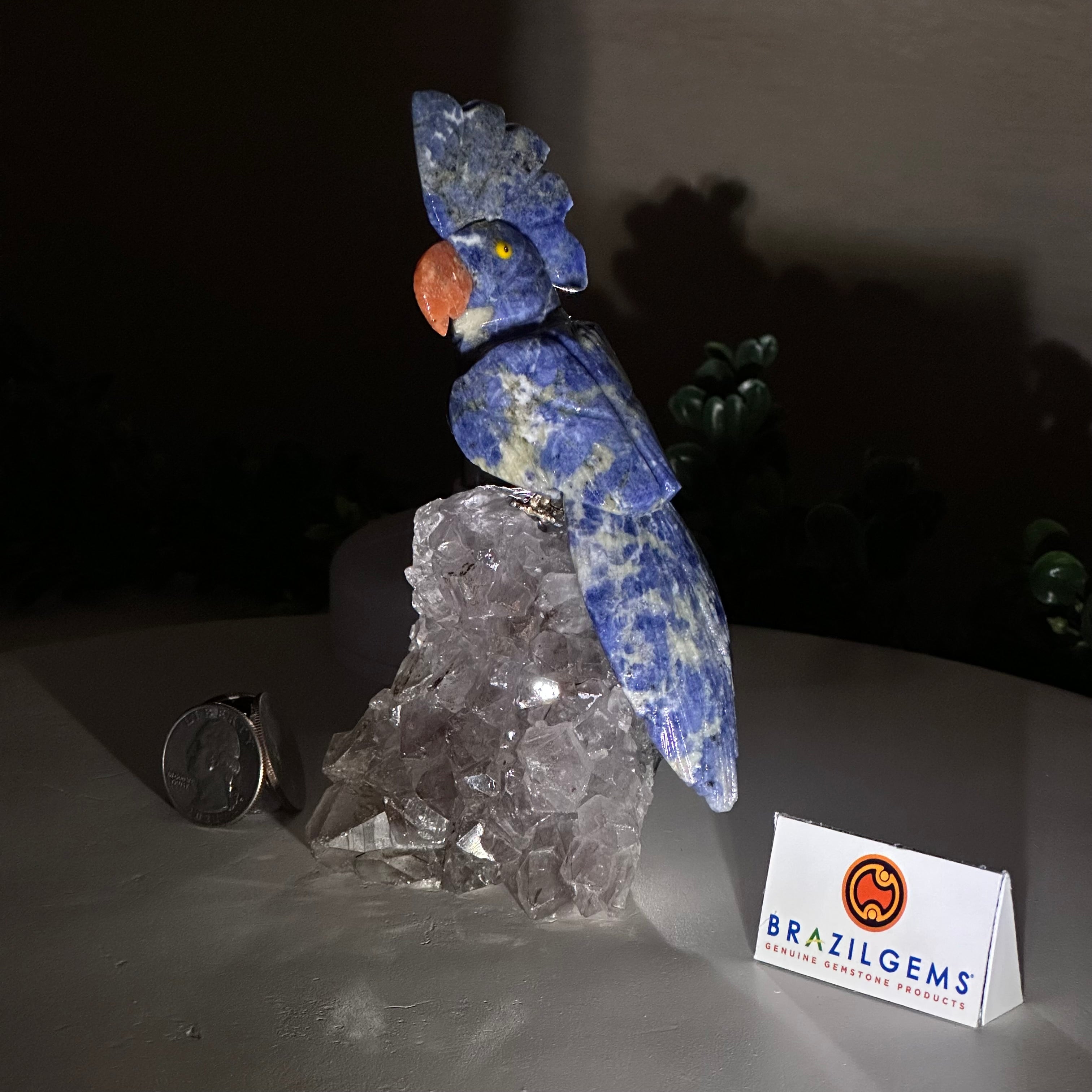 Small Hand-Carved Sodalite Cockatoo 5.4" Long on an Amethyst Base, #3002-SOCAM-047