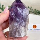 Elevate your spiritual rituals with Brazil Gems' Super Quality Polished Amethyst Crystal Foot & Point. Featuring deep purple tones, this exquisite crystal exudes incredible energy and exquisite artistry. Whether used in meditation or healing, it is a must-have for the refined crystal connoisseur. With its polished point, flat base, and raw side edges, this piece has a tactile and visual appeal, perfect to hold or display on a tabletop.