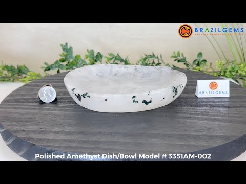 Elegant and versatile, this White Amethyst decorative bowl is handcrafted from natural Brazilian stone and polished to reveal soft lilac and white tones with subtle crystal textures. Use it as a soap dish, jewelry and ring holder, or a decorative catch-all for small items like crystals, keys, or loose change. Its smooth, durable surface makes it ideal for bathroom countertops, bedside tables, or entryway décor.