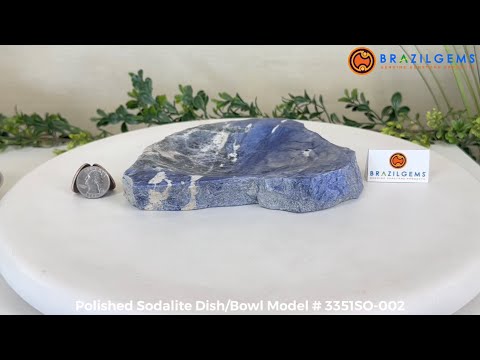Elegant and versatile, this Sodalite decorative bowl is handcrafted from natural Brazilian stone and polished to reveal blue and white tones. Use it as a soap dish, jewelry and ring holder, or a decorative catch-all for small items like crystals, keys, or loose change. Its smooth, durable surface makes it ideal for bathroom countertops, bedside tables, or entryway décor. Its edges are rough and not polished.