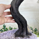 At approximately 21.3" tall to the top of its bark style branches this gemstone tree is both big and a design statement that will impact any room in your home or office. The amethyst clusters used as bases for this size of our gemstone trees are substantial gemstones on their own.