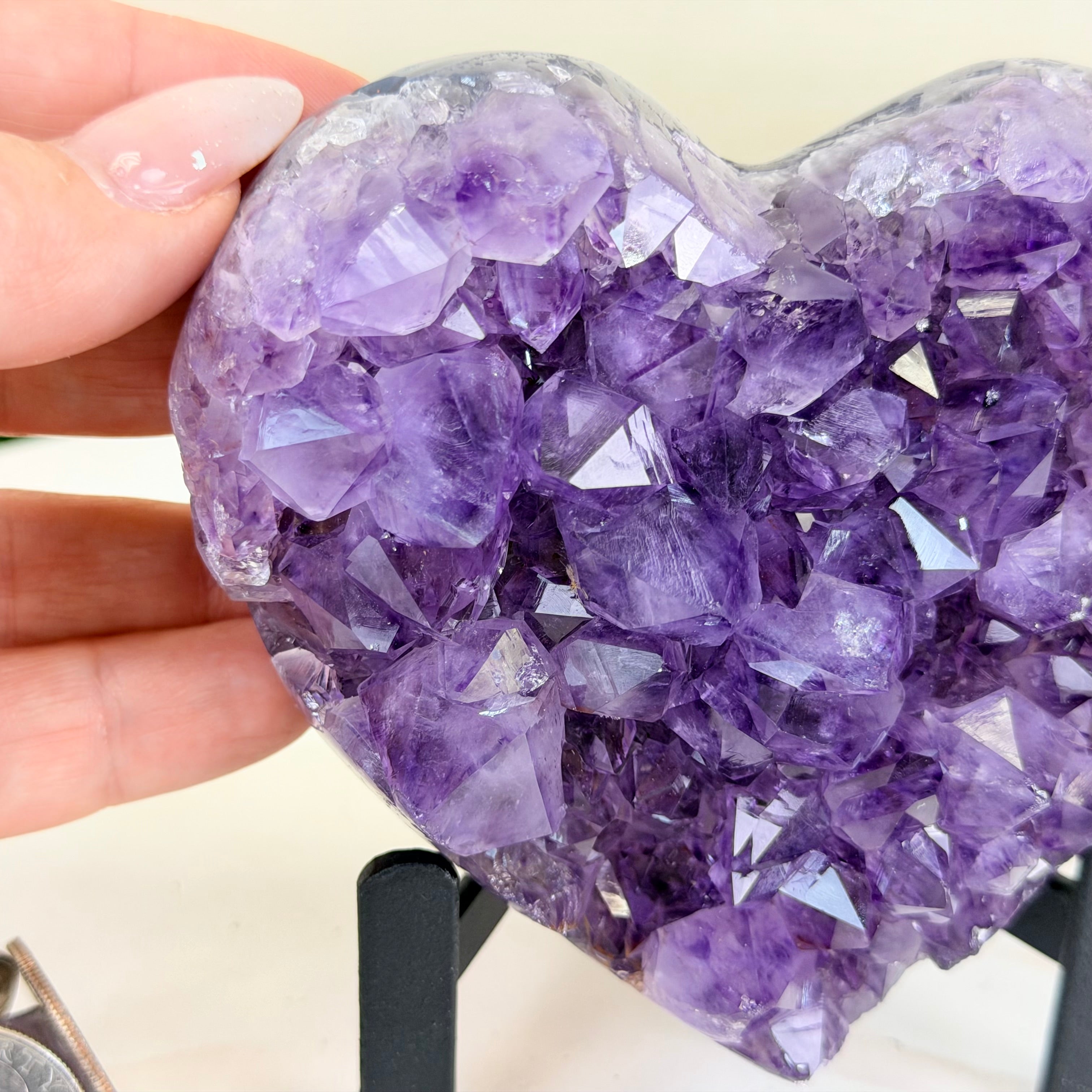 Amethyst Heart Geode on a Metal Stand, 1.3 lbs and 4.4" Tall #5463-0368