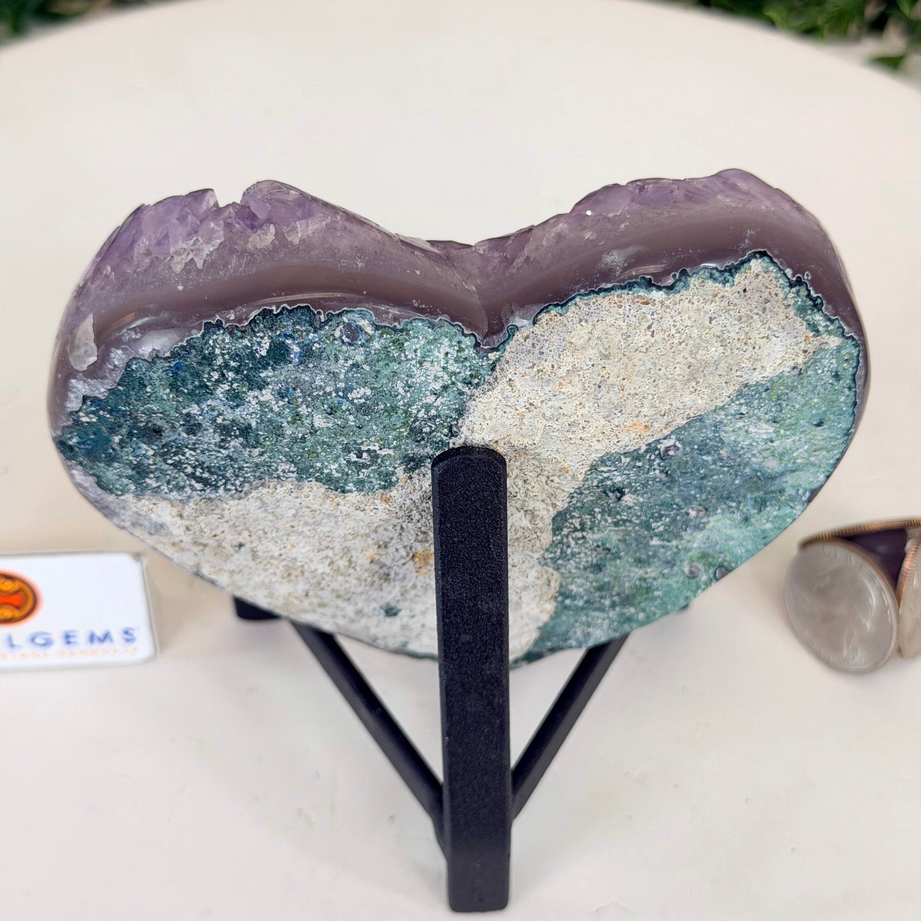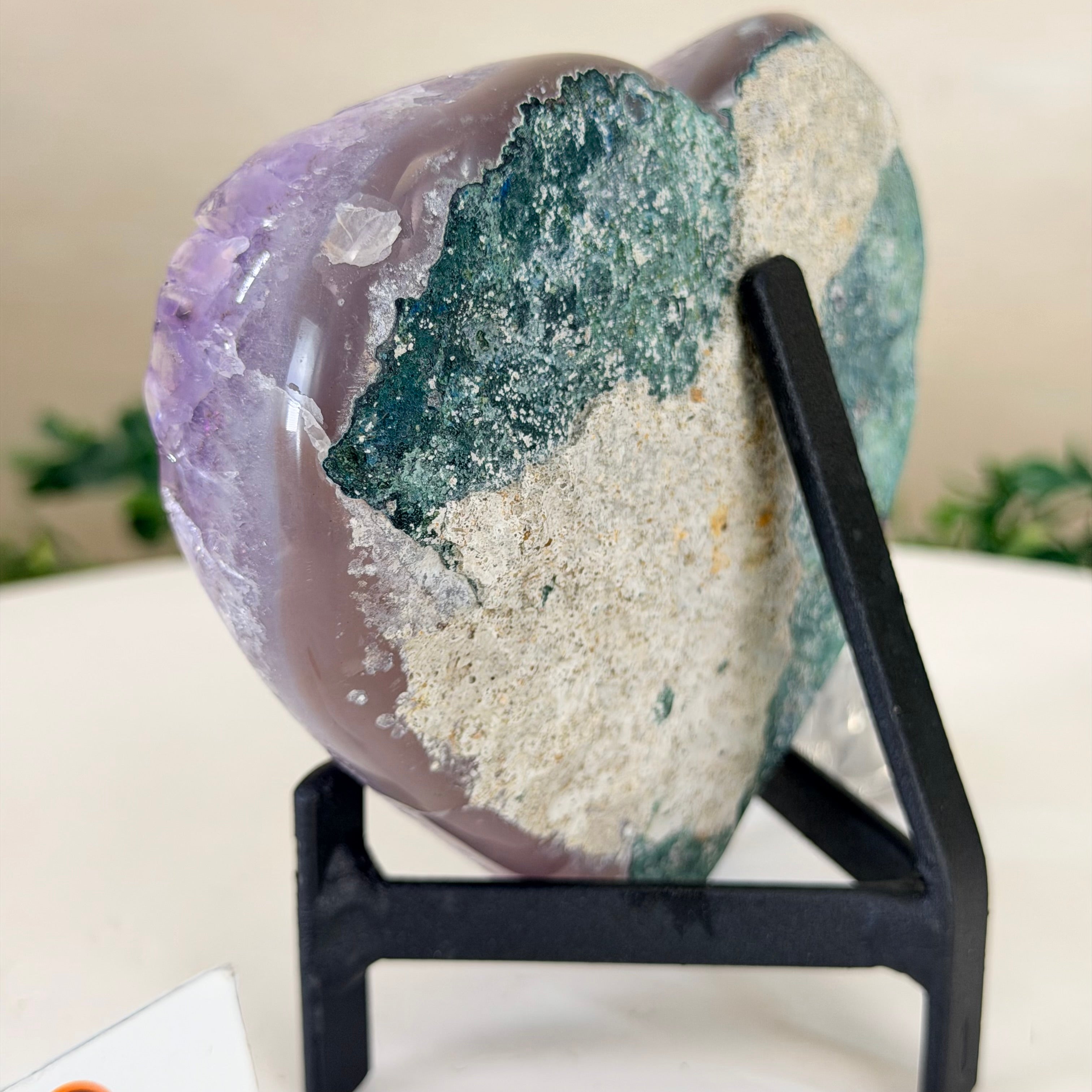 Amethyst Heart Geode on a Metal Stand, 1.4 lbs and 4.5" Tall #5463-0369