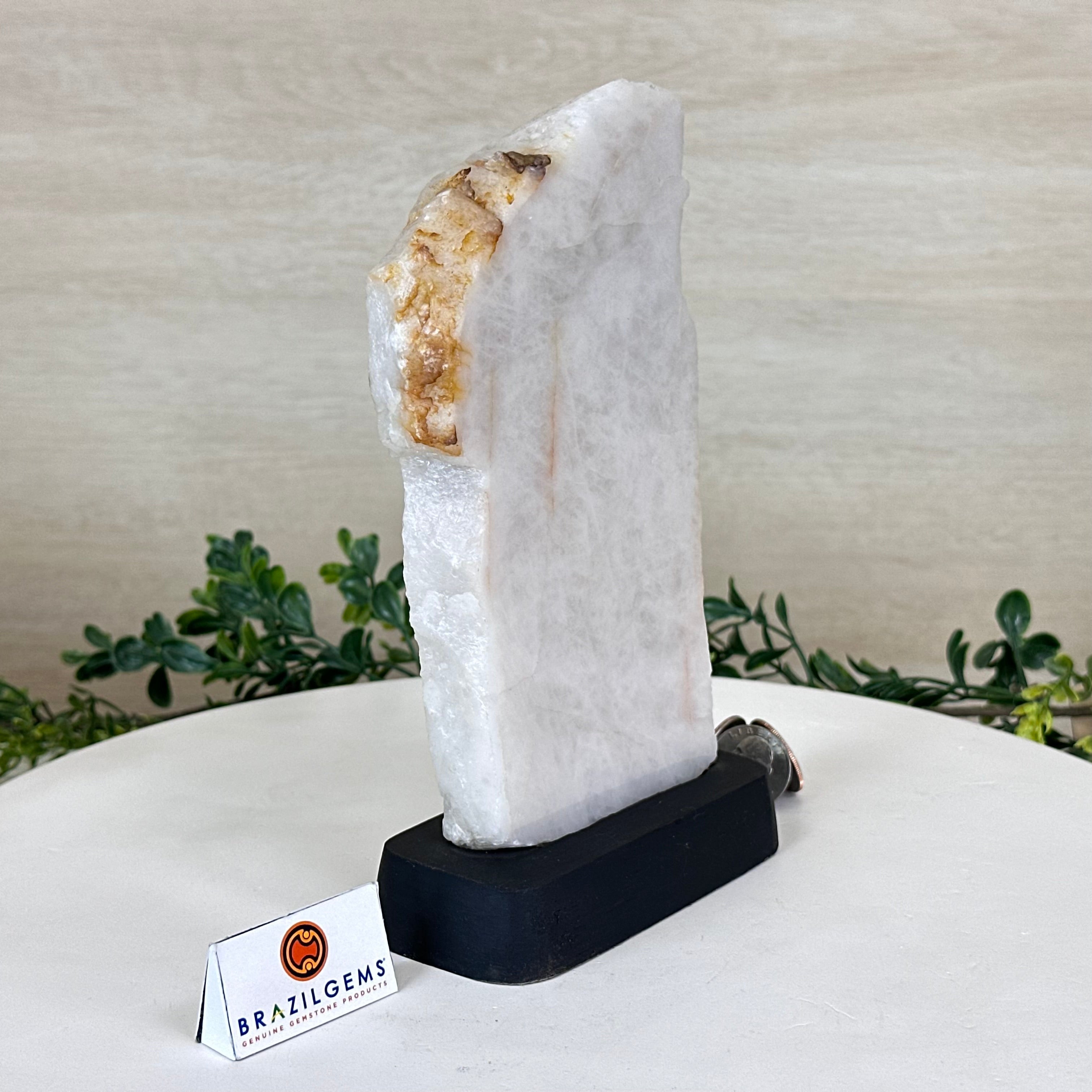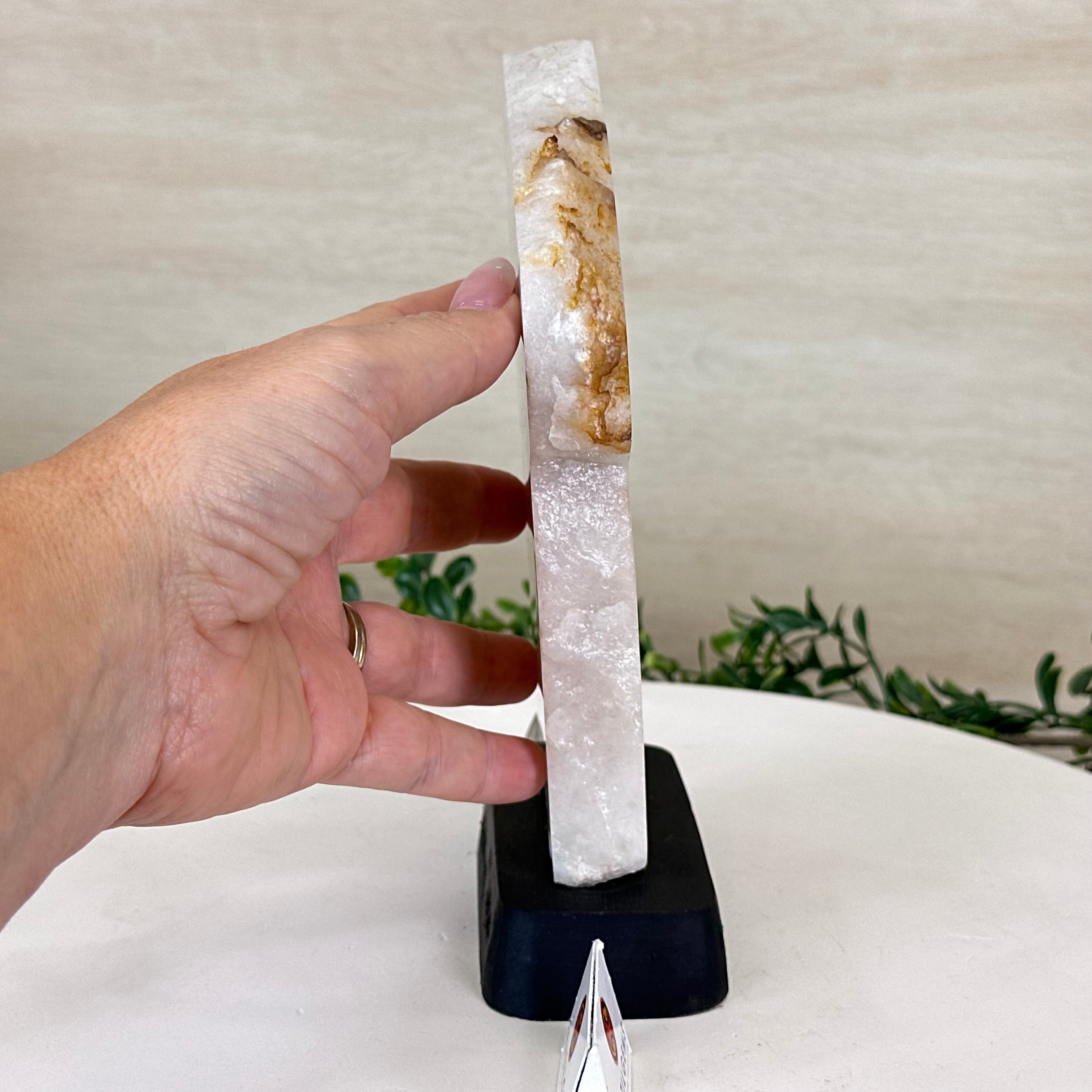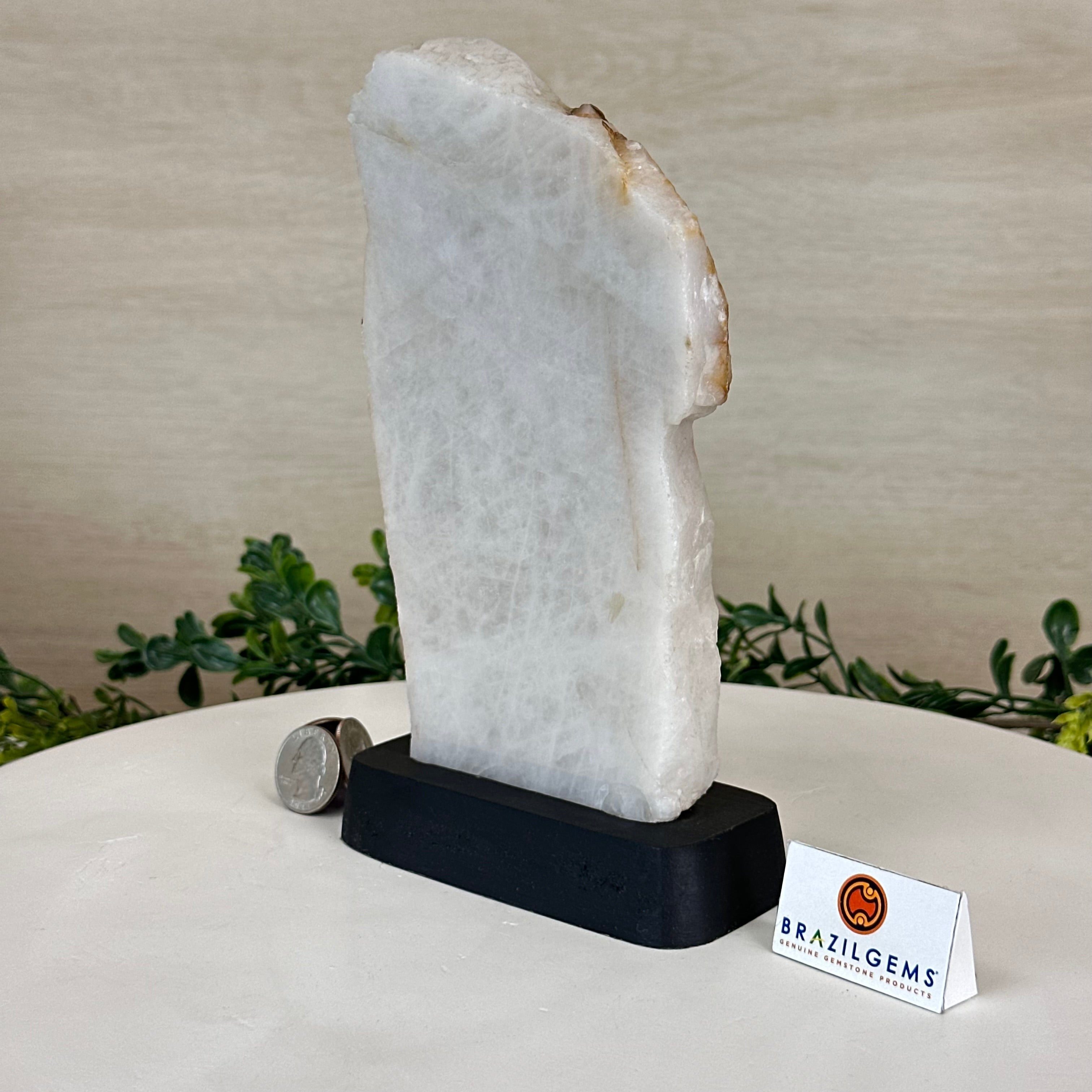 Milky Quartz Polished Slice on a Wood Base 8.1" Tall #6100MQ-002