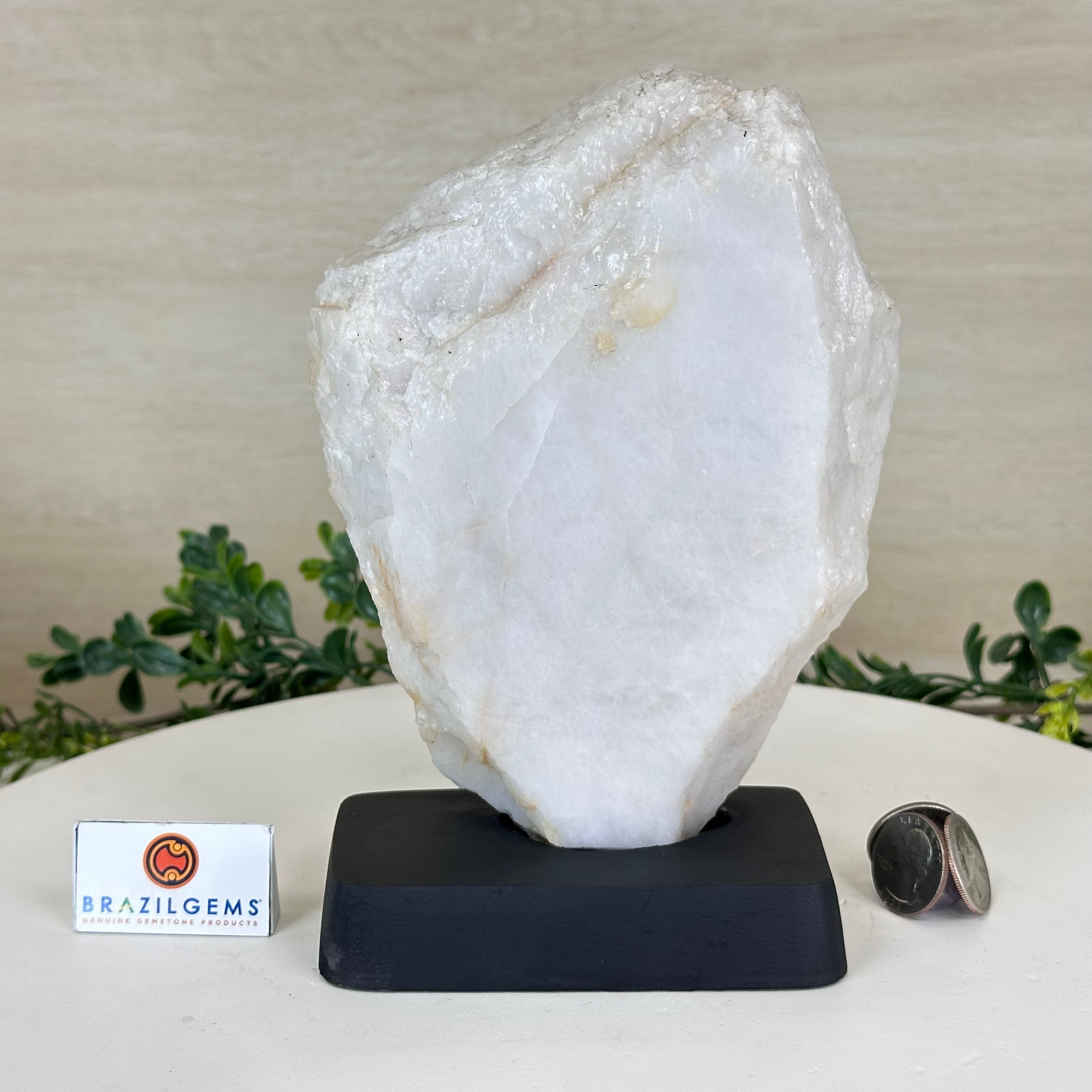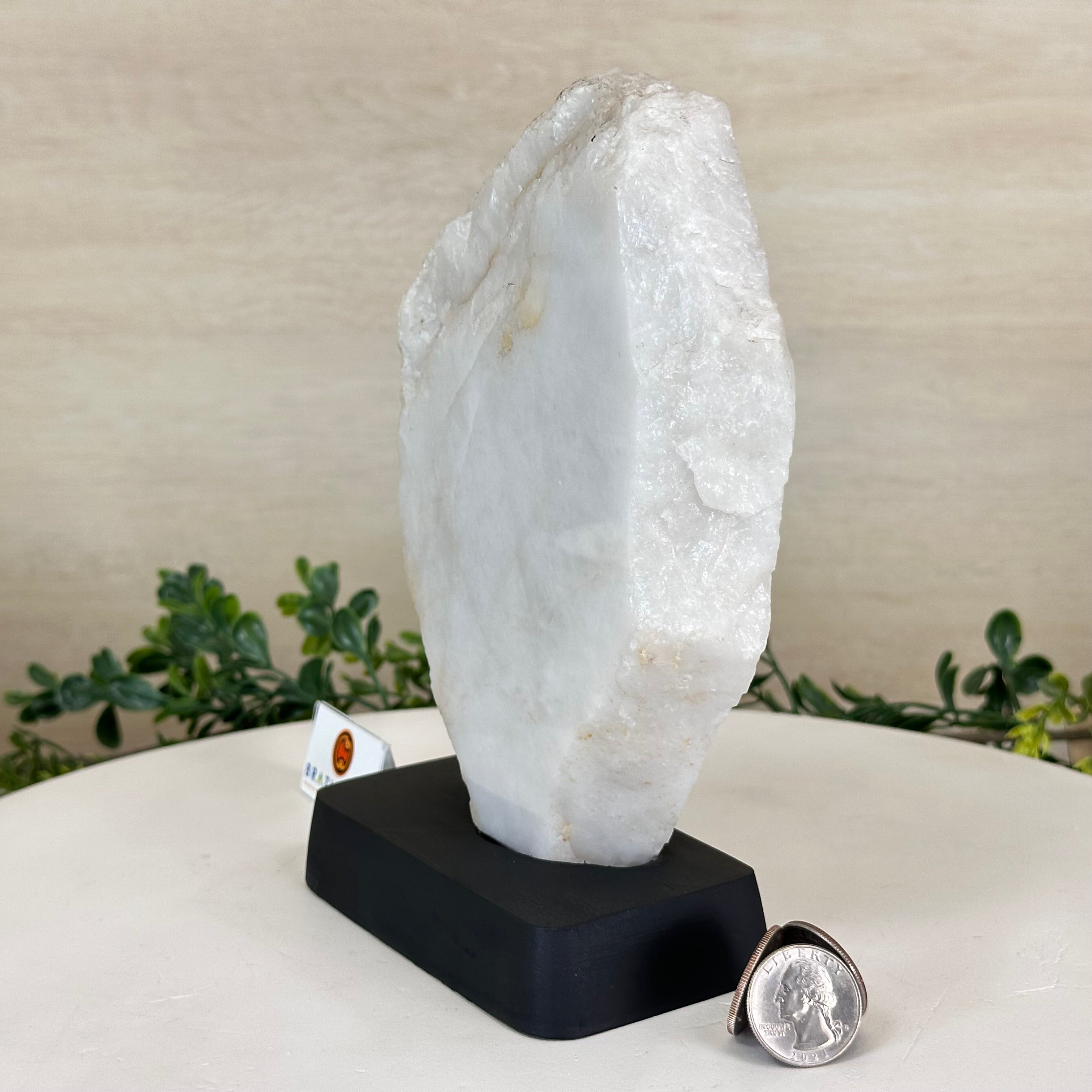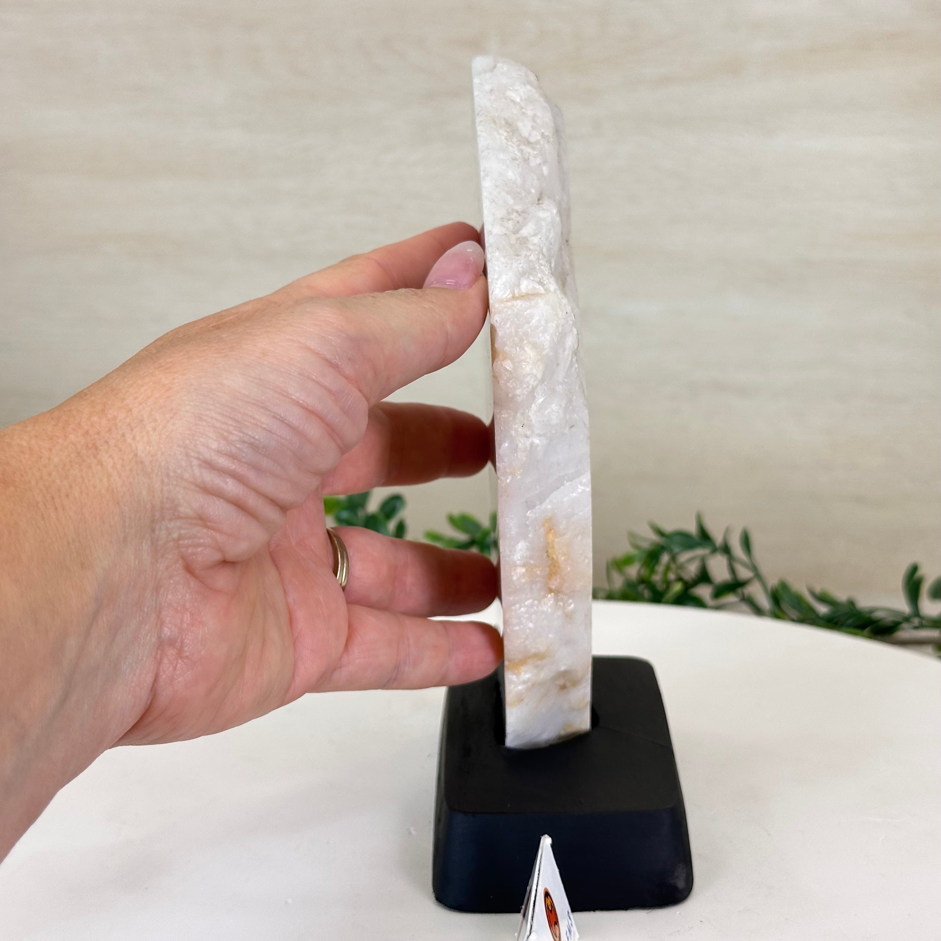 Milky Quartz Polished Slice on a Wood Base 7.9" Tall #6100MQ-003