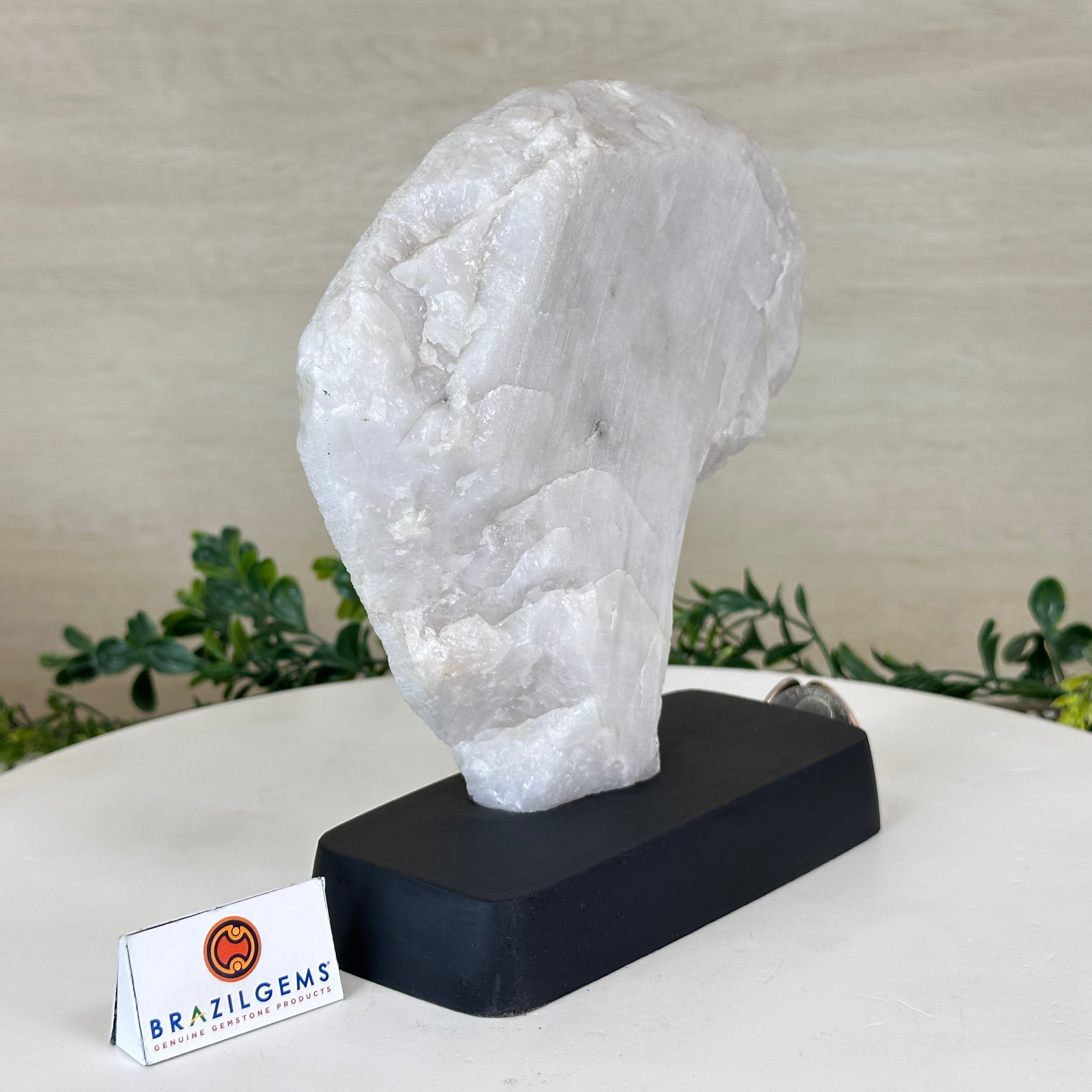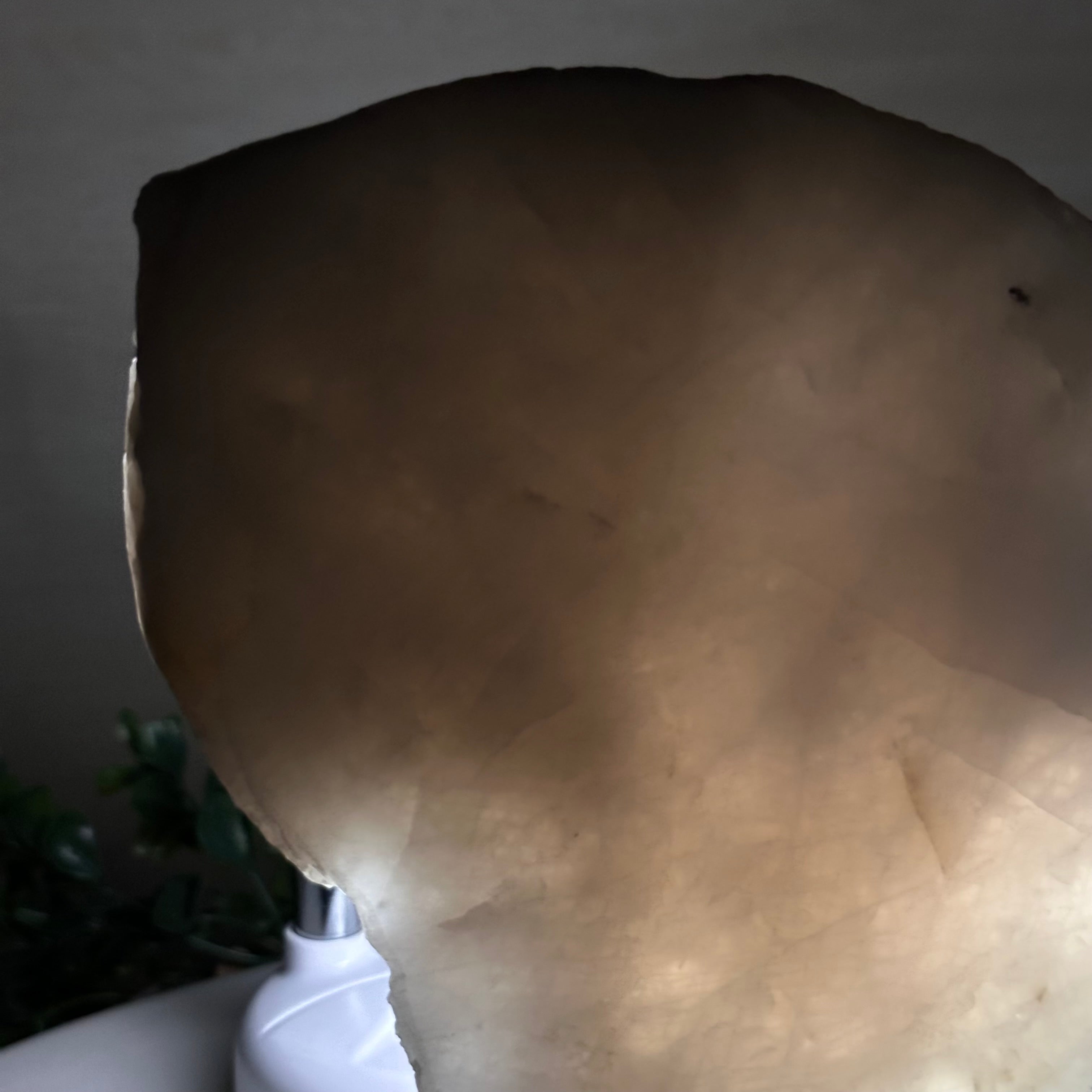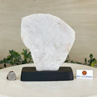 Elevate your space with this Brazilian Milky Quartz Slice on a wood base. This piece is beautifully polished on the front with rough edges on the sides and the back. This slice will make a great addition or start to your crystal collection and will accent the décor of any room.