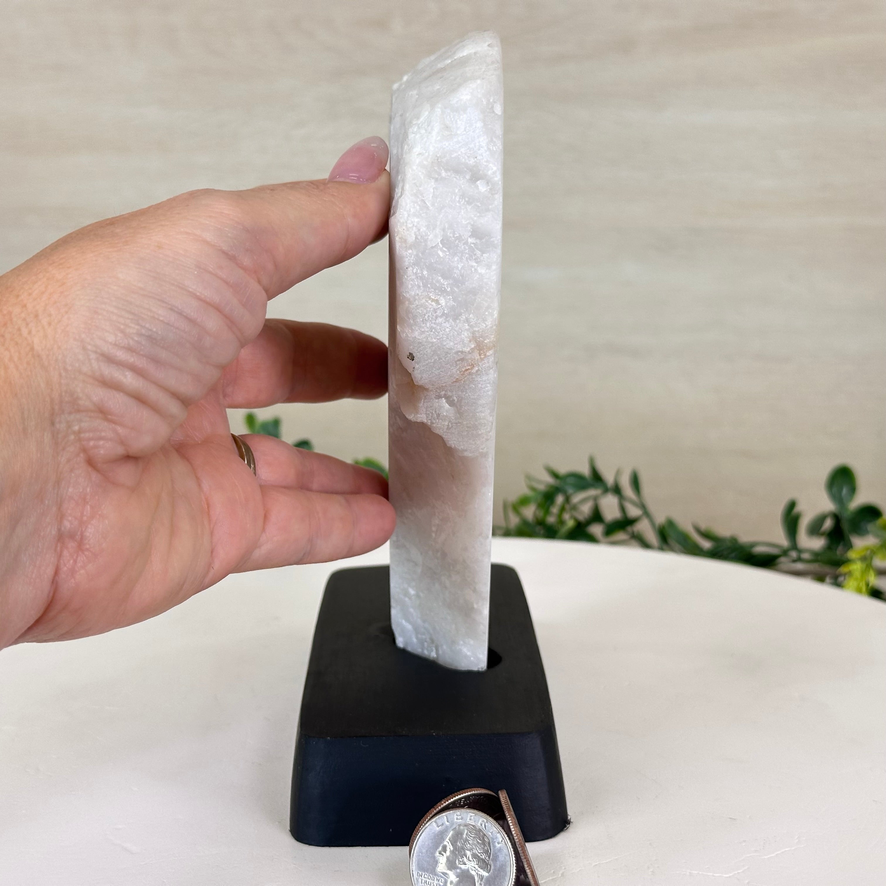 Milky Quartz Polished Slice on a Wood Base 7.4" Tall #6100MQ-005