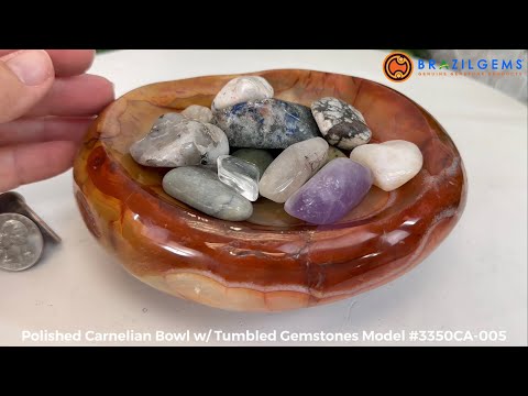 Polished Brazilian Carnelian Crystal Bowl w/ Tumbled Gemstones, 3.2 lbs Model #3350CA-005 by Brazil Gems