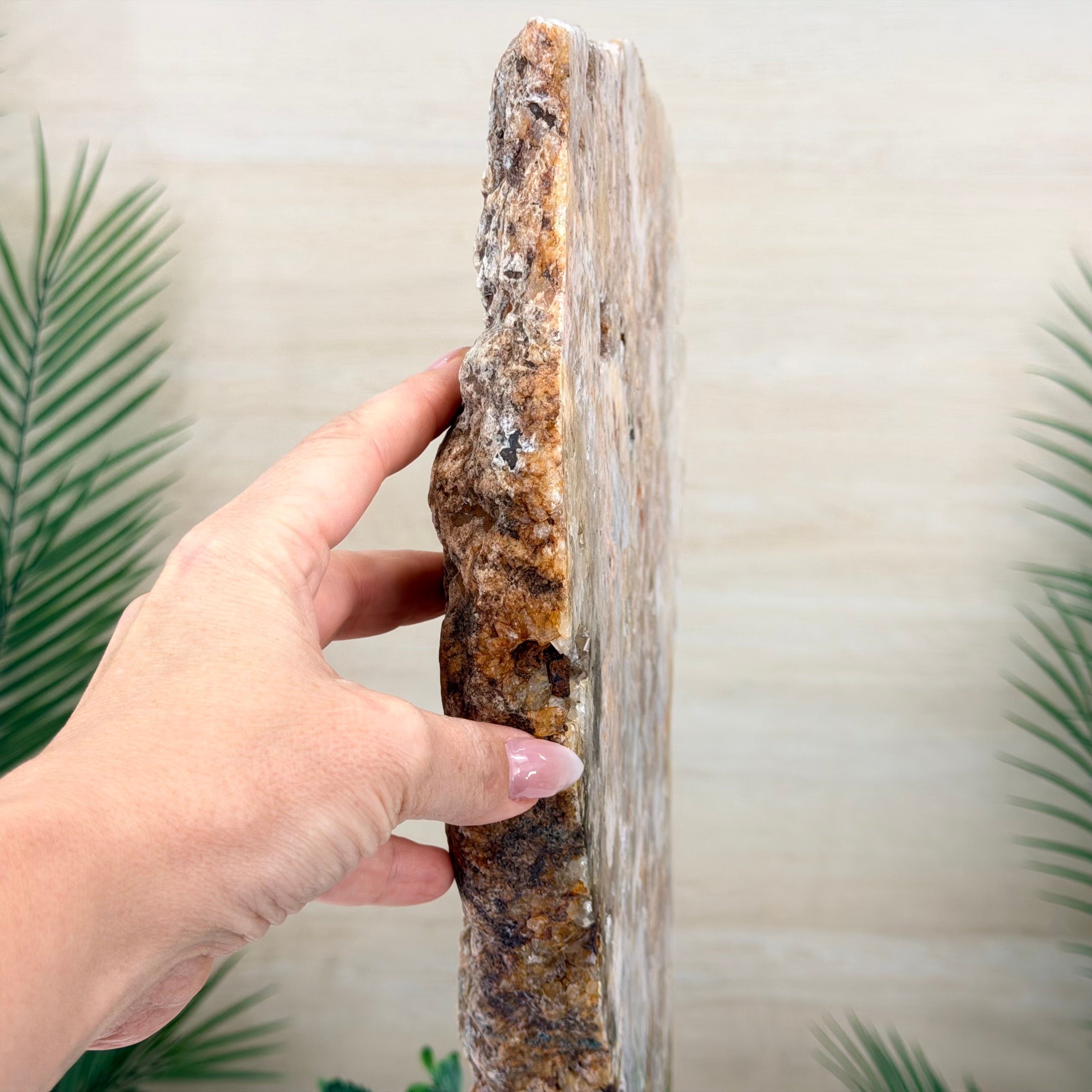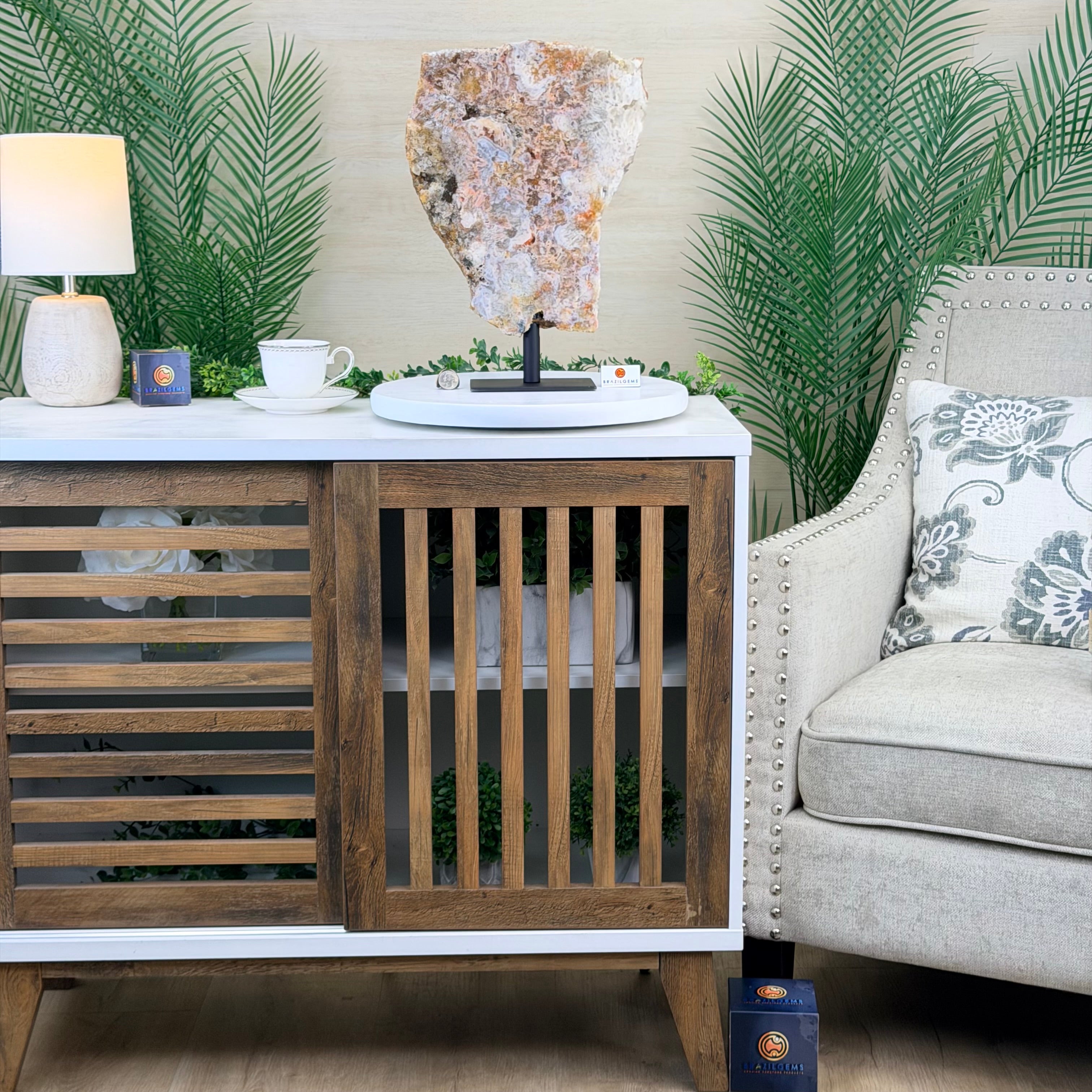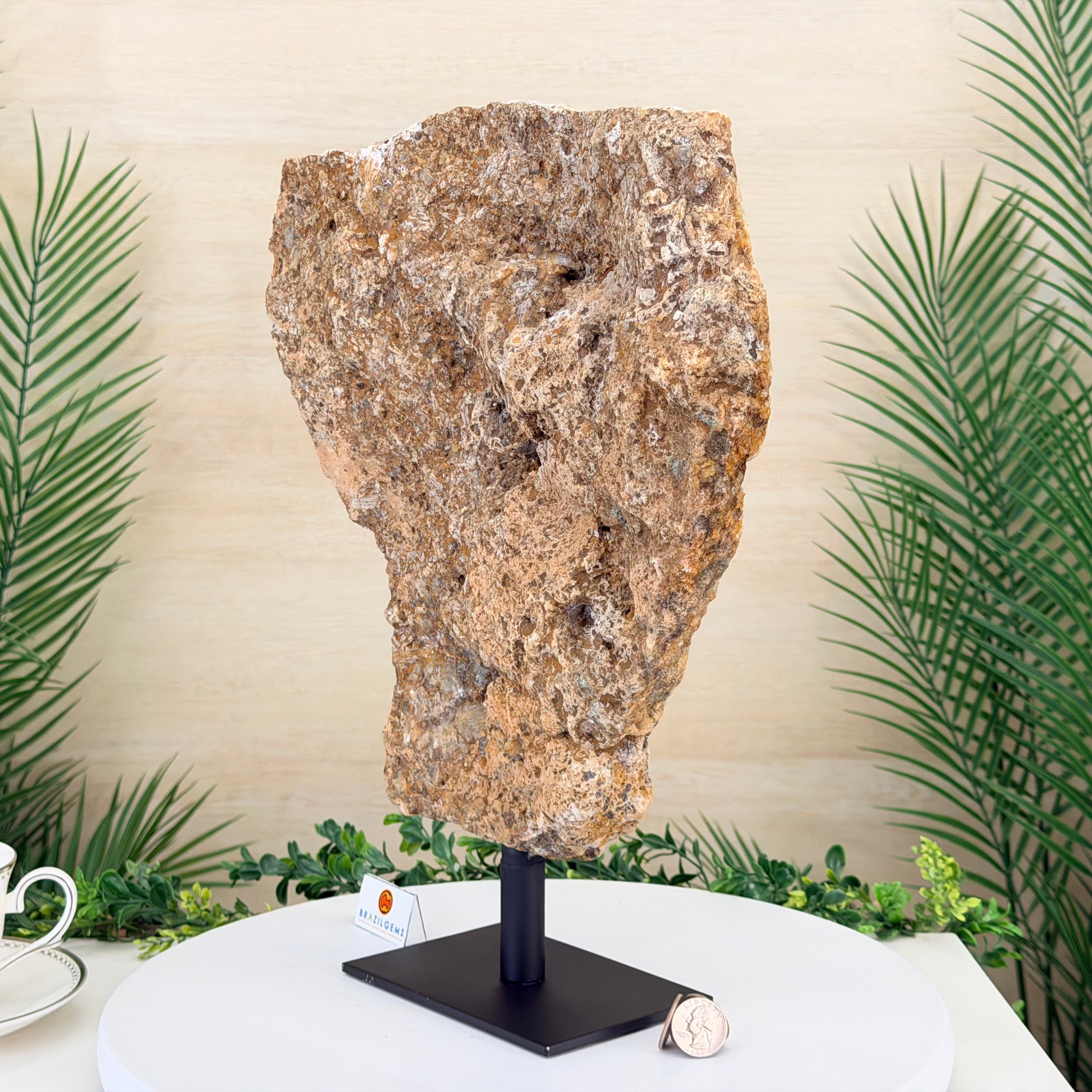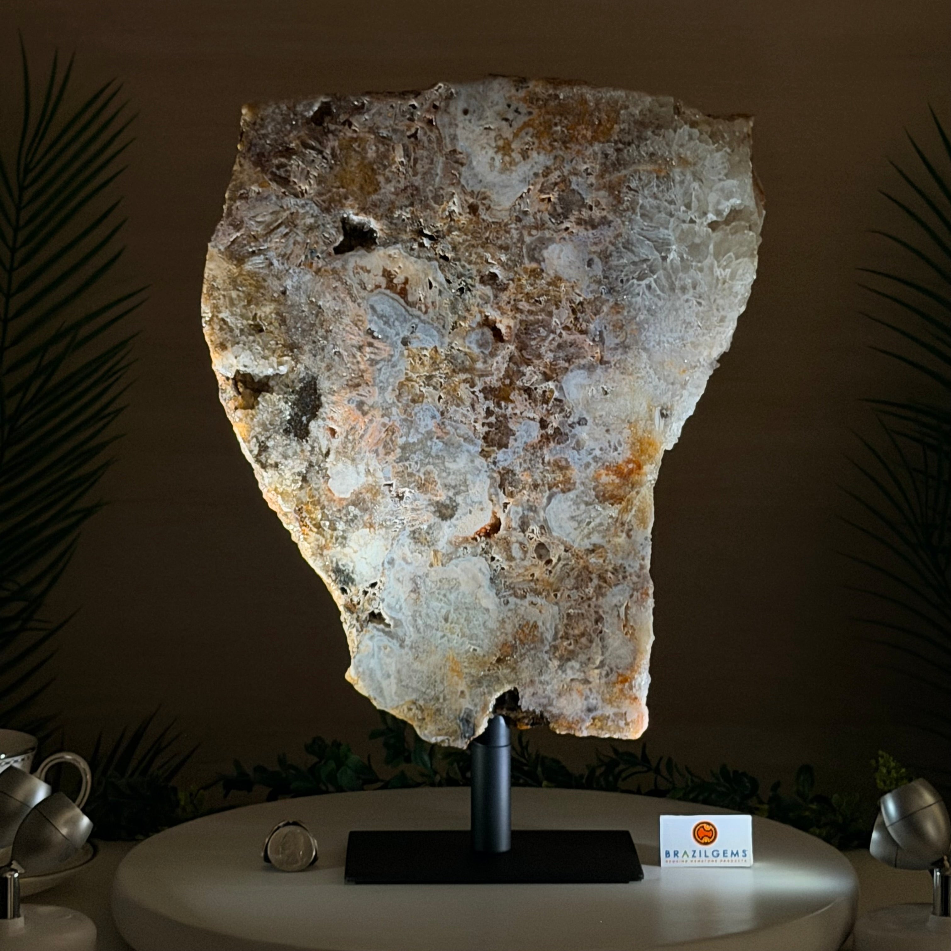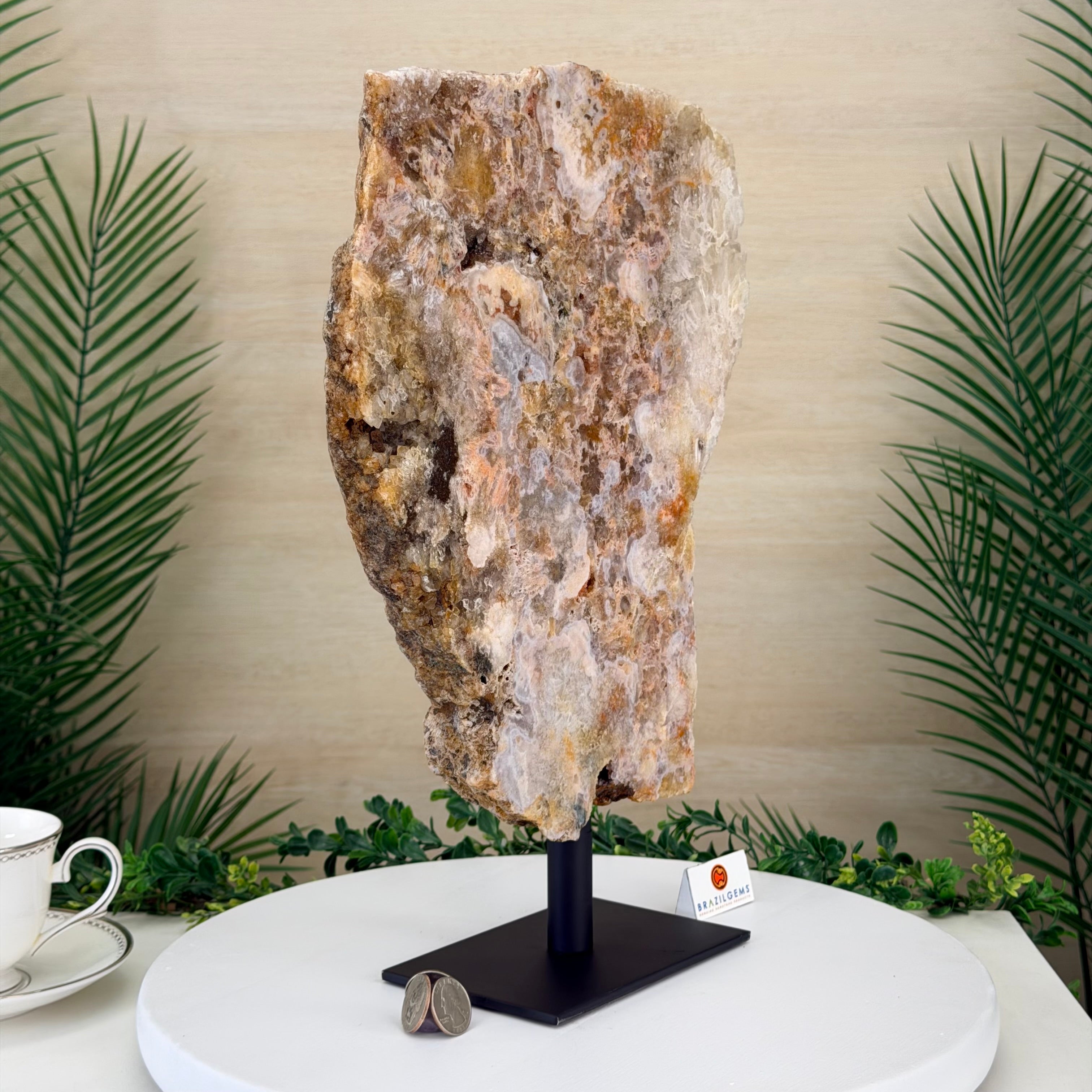 Presented on a modern metal stand, this piece transforms a natural gemstone into a sophisticated décor accent, perfect for adding an elegant, organic touch to any space.