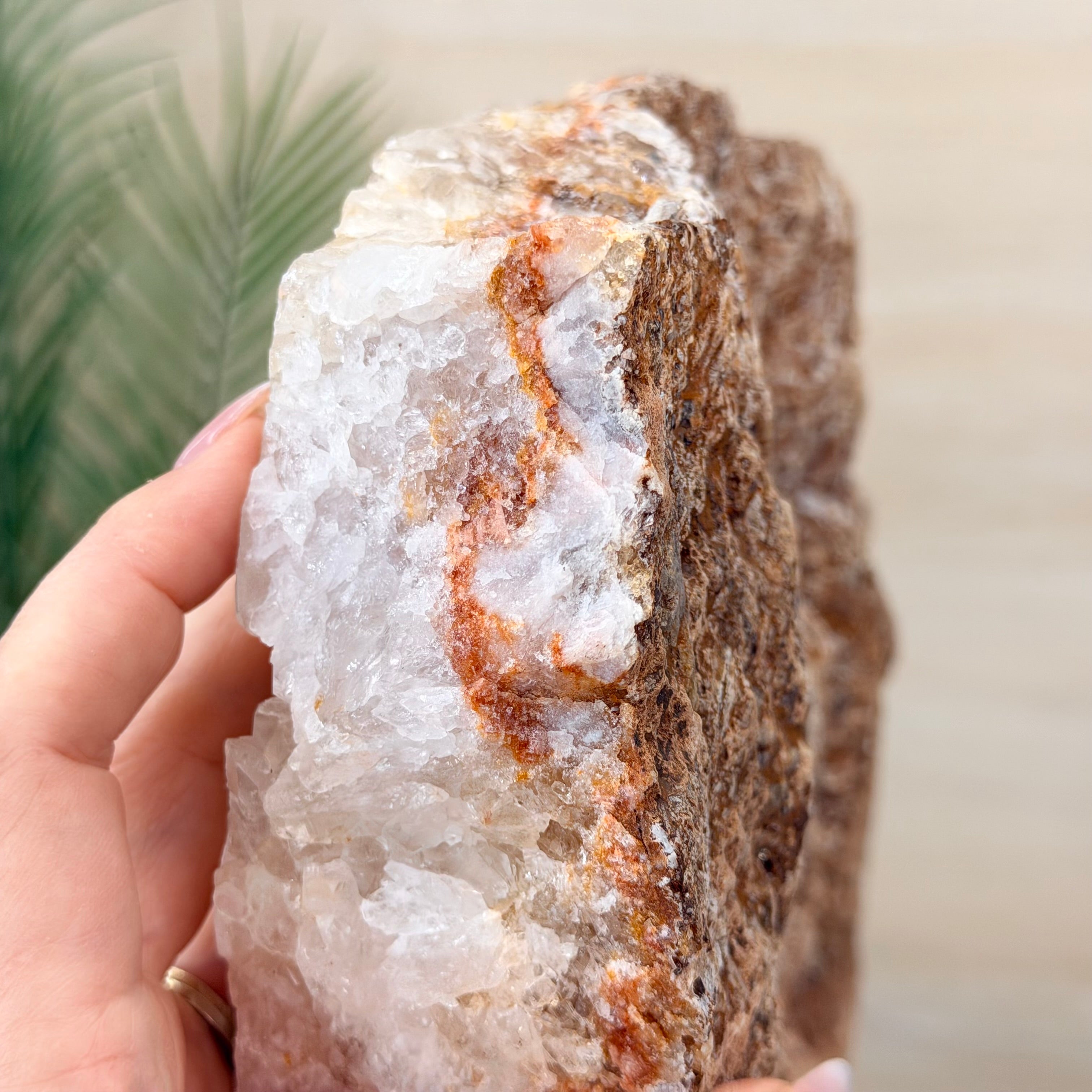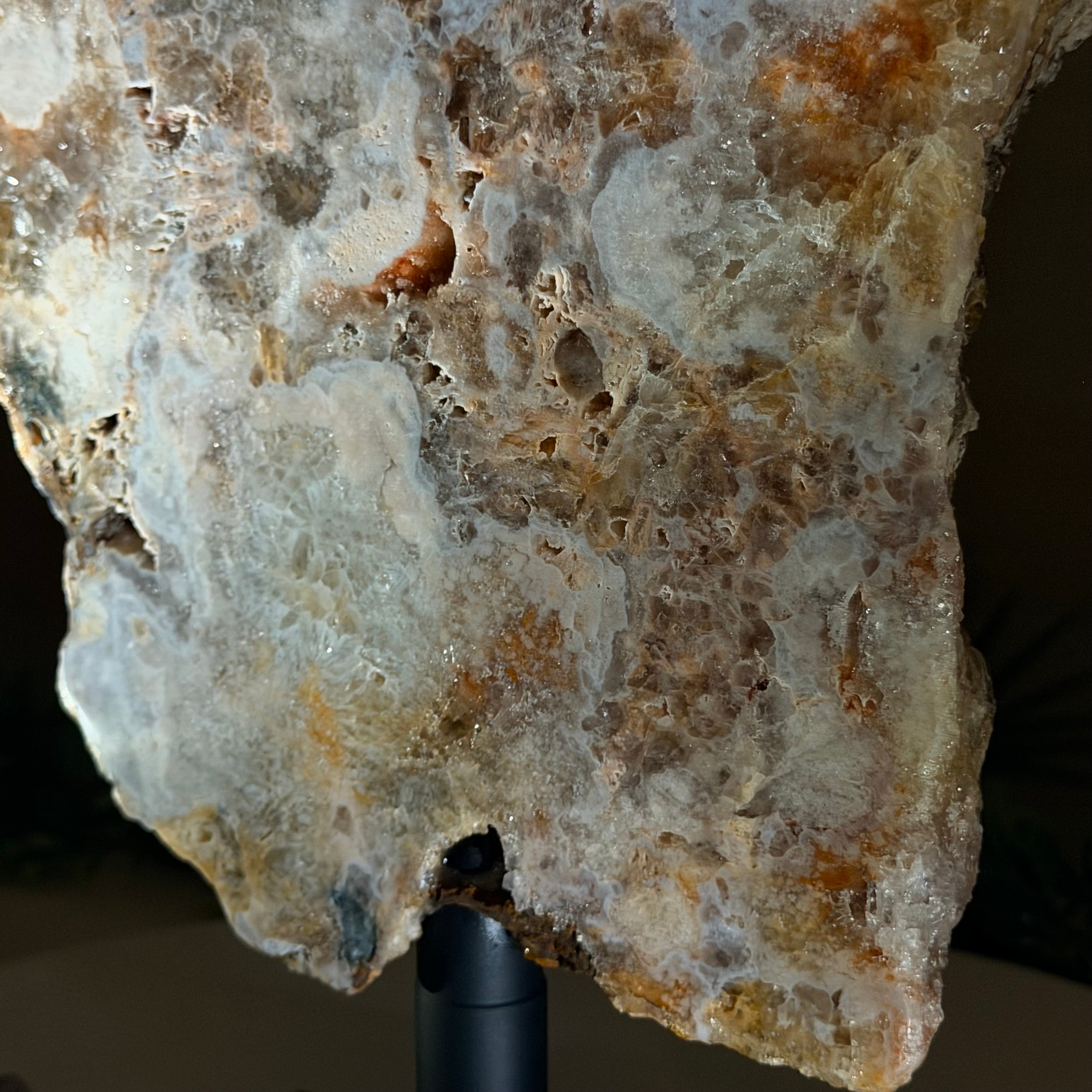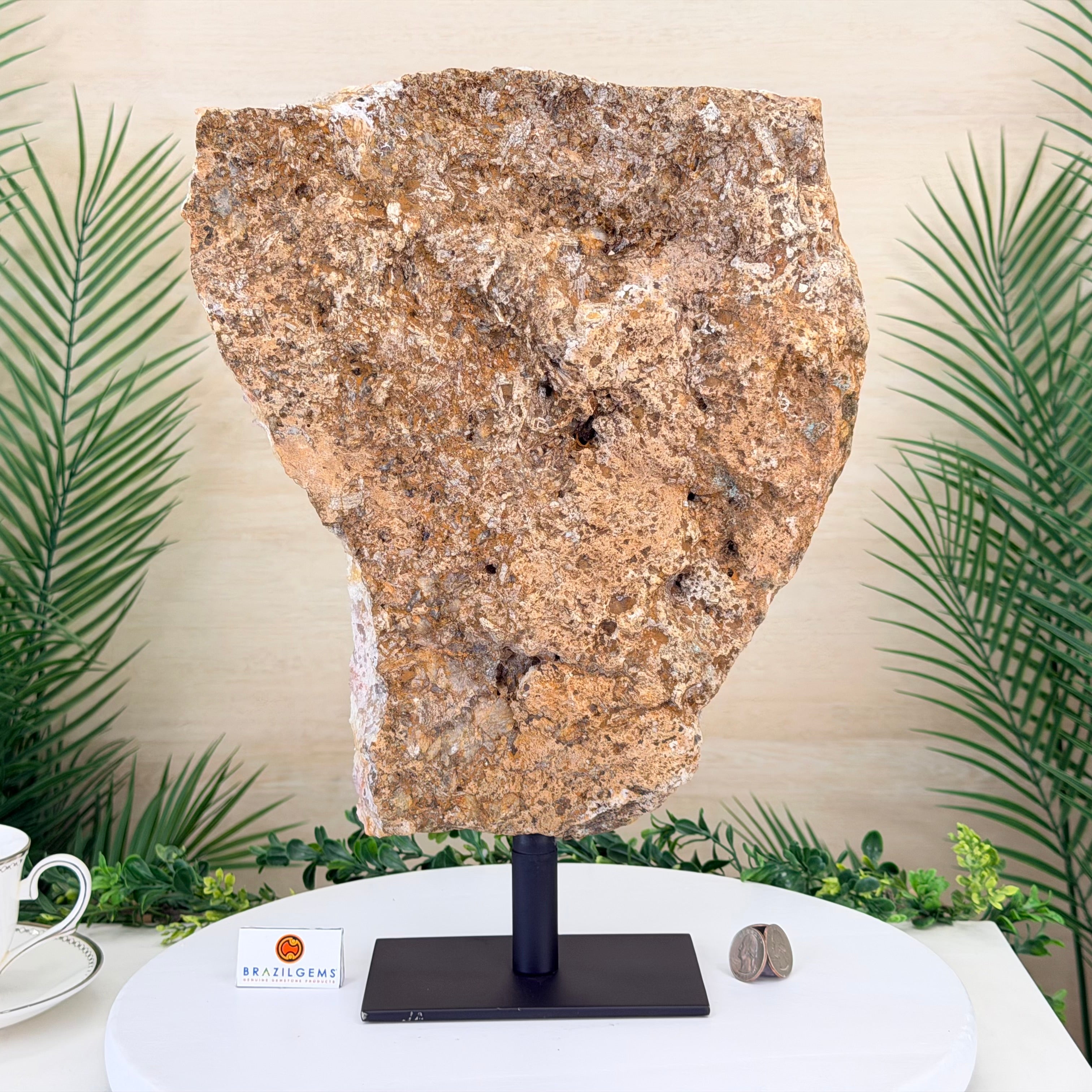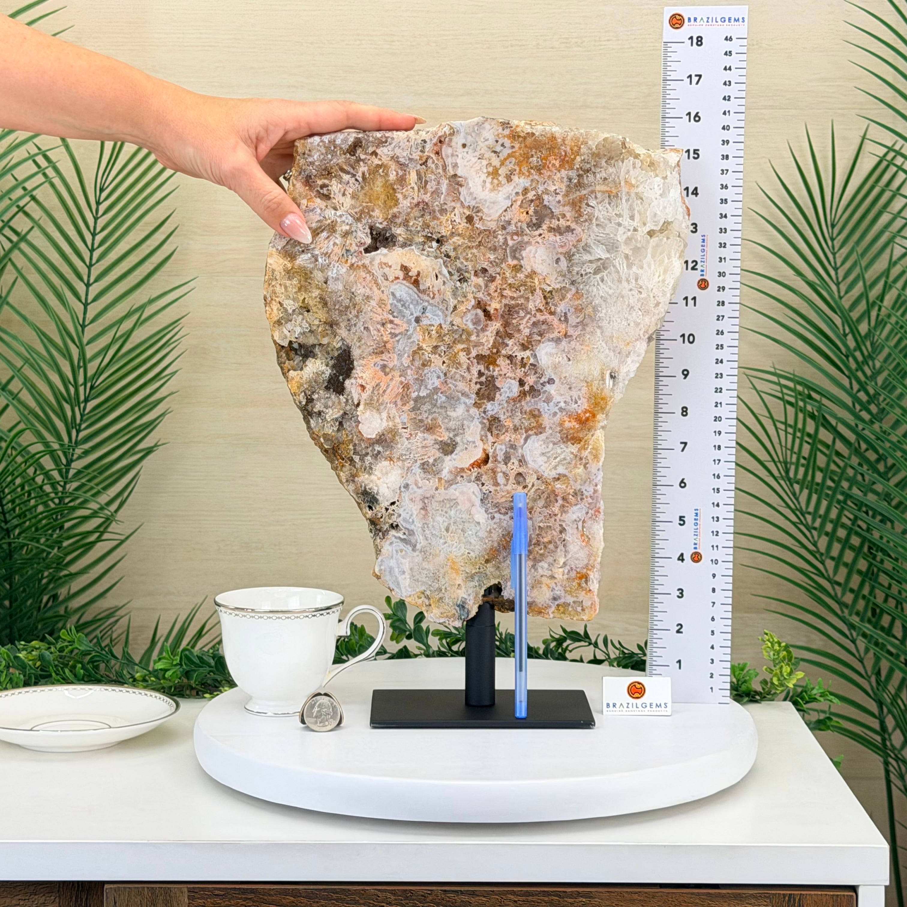 Presented on a modern metal stand, this piece transforms a natural gemstone into a sophisticated décor accent, perfect for adding an elegant, organic touch to any space.