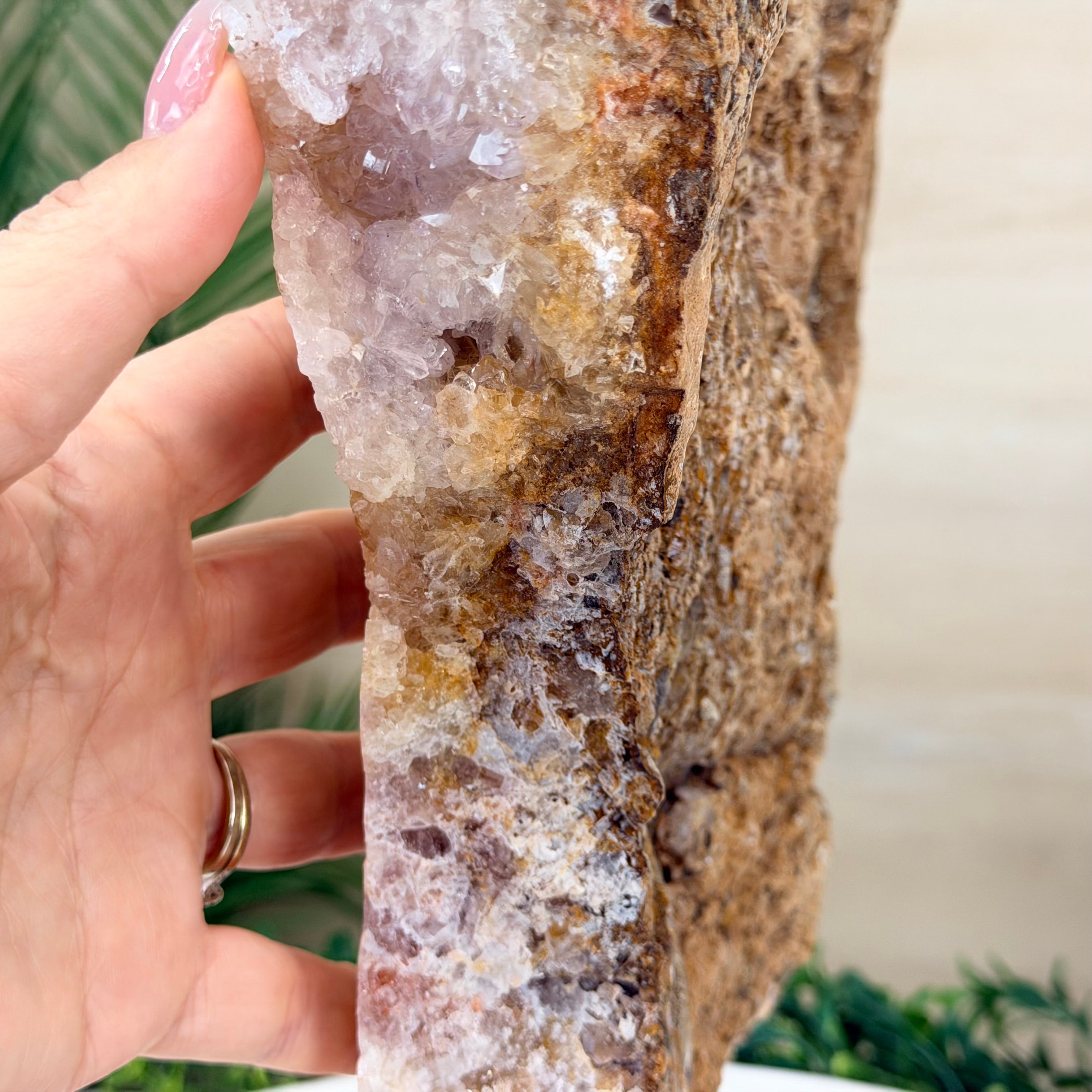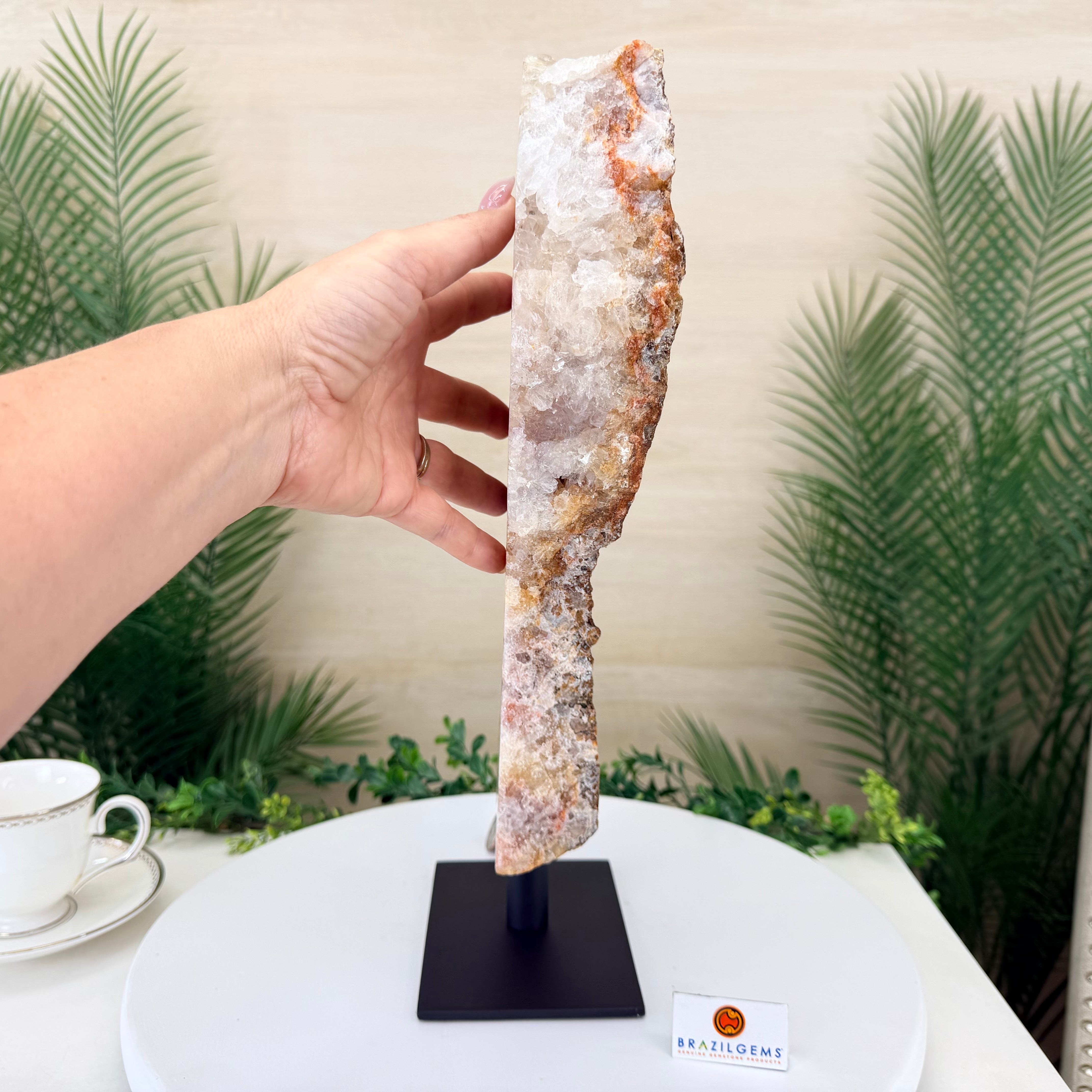 Natural Pink Amethyst Slice on Stand, Polished 15.8" Tall