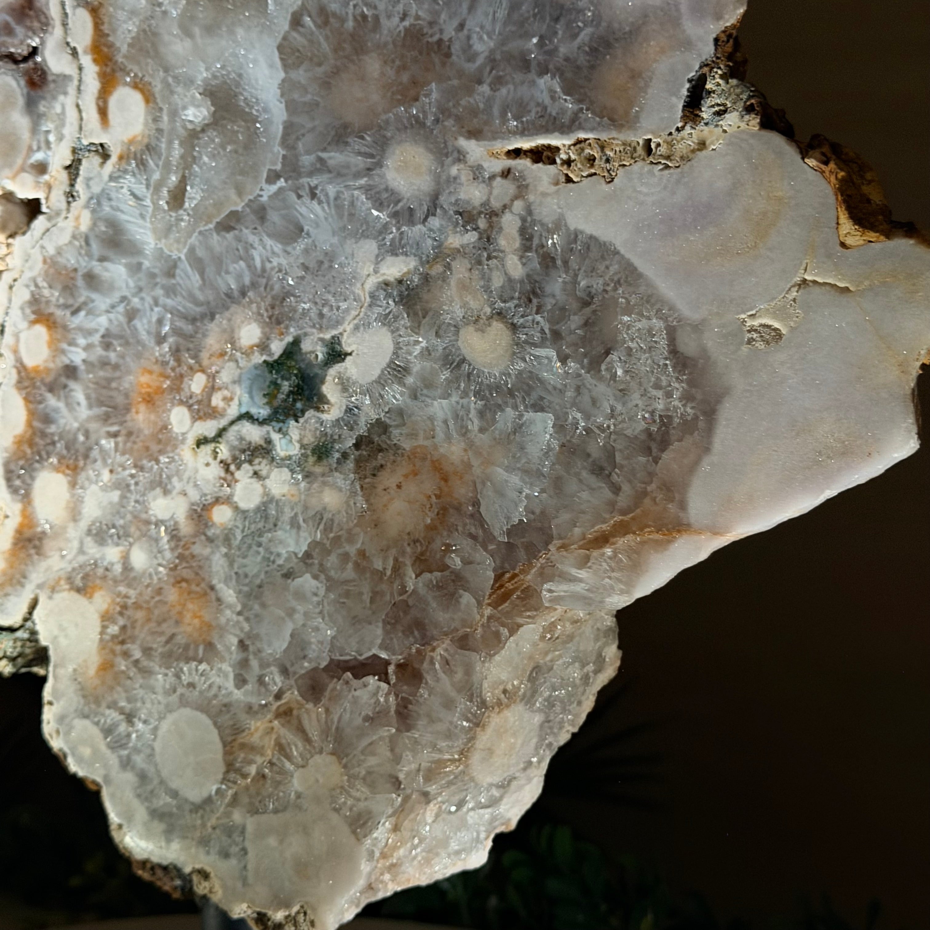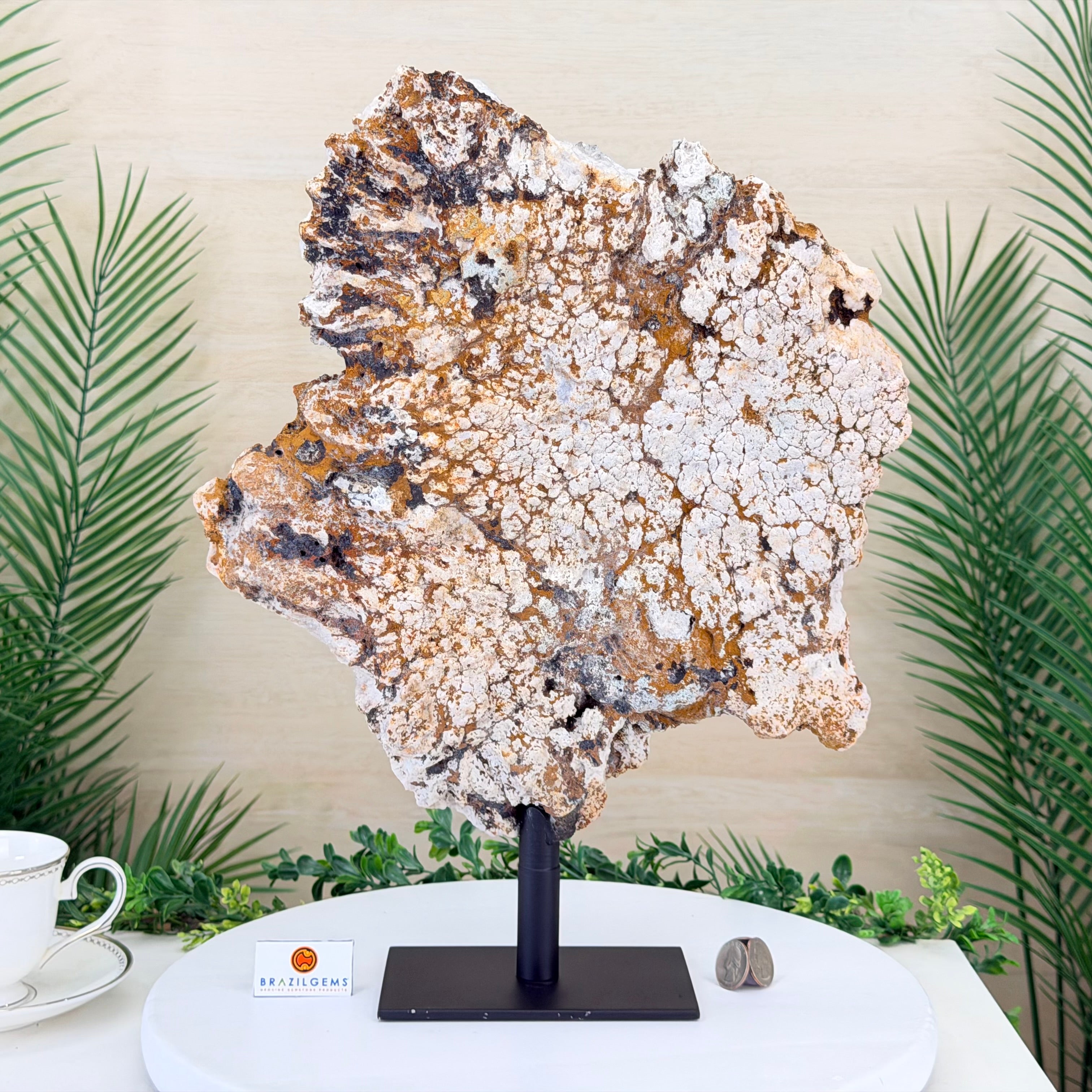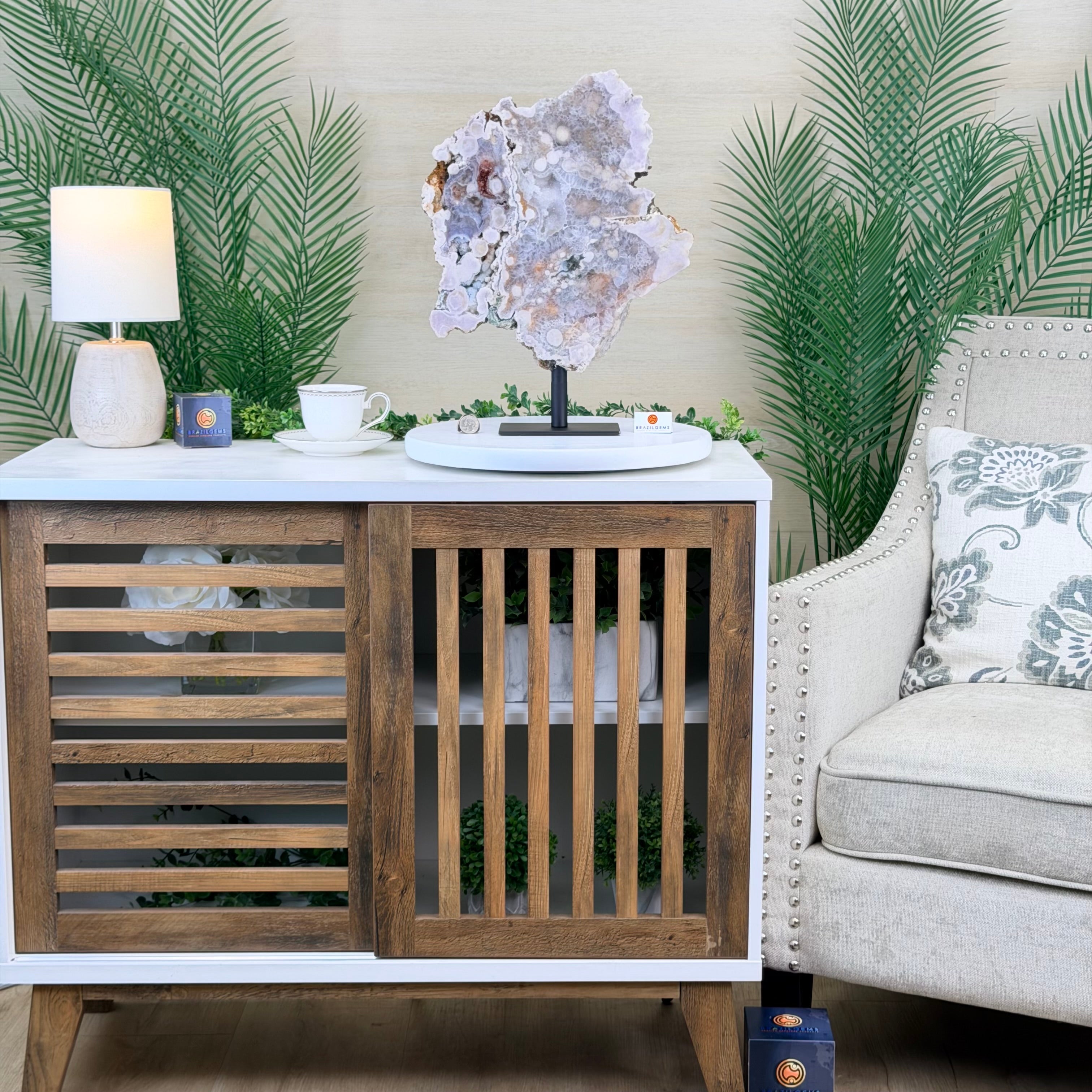 Presented on a modern metal stand, this piece transforms a natural gemstone into a sophisticated décor accent, perfect for adding an elegant, organic touch to any space.