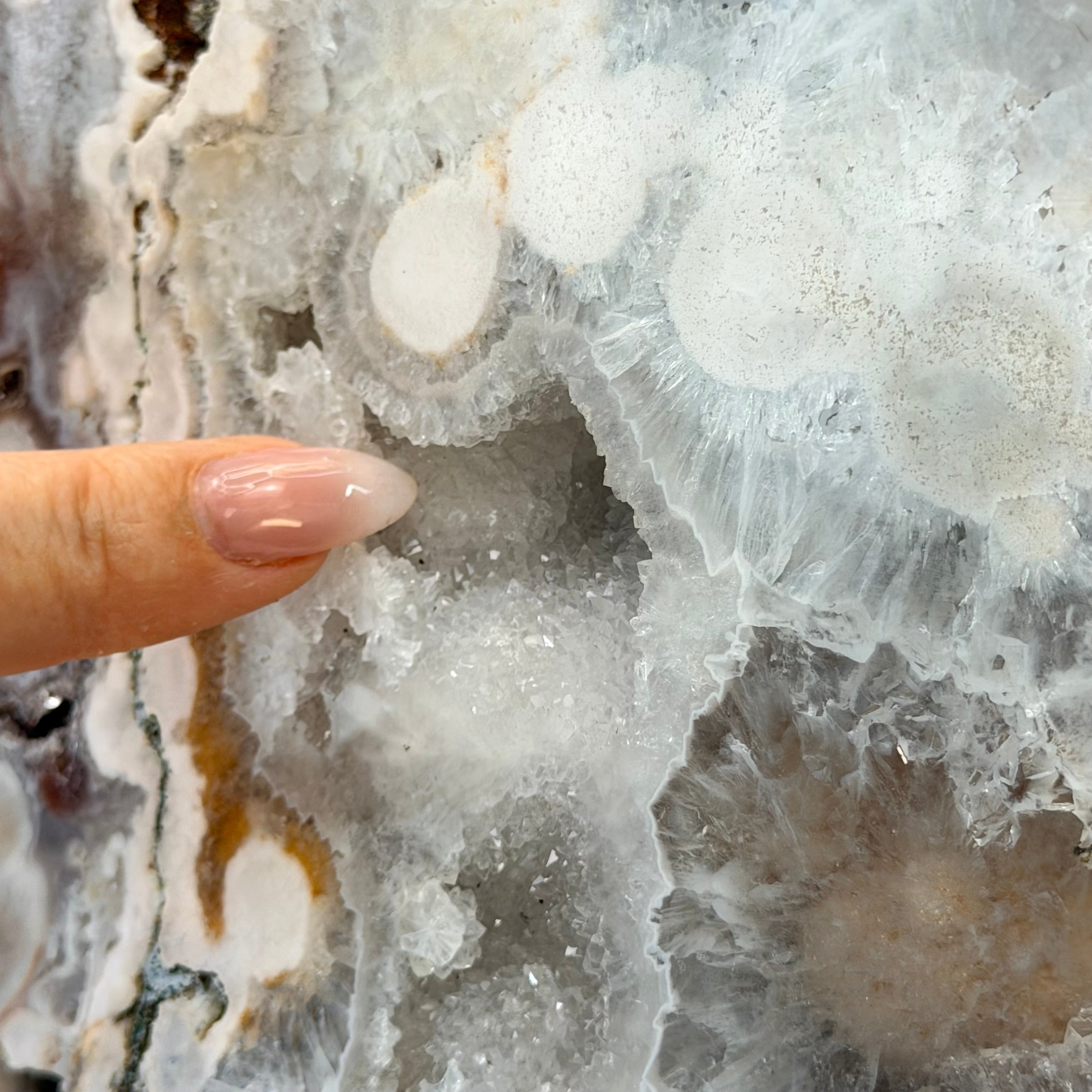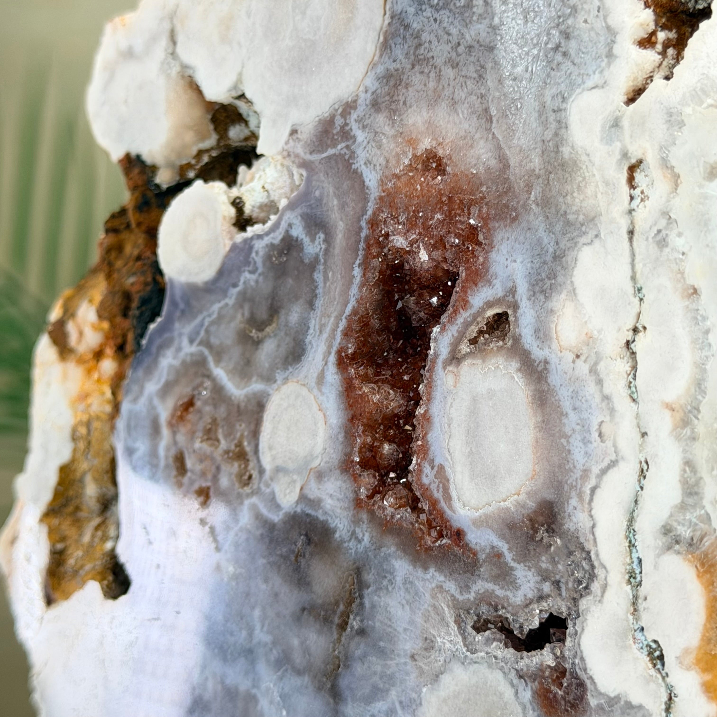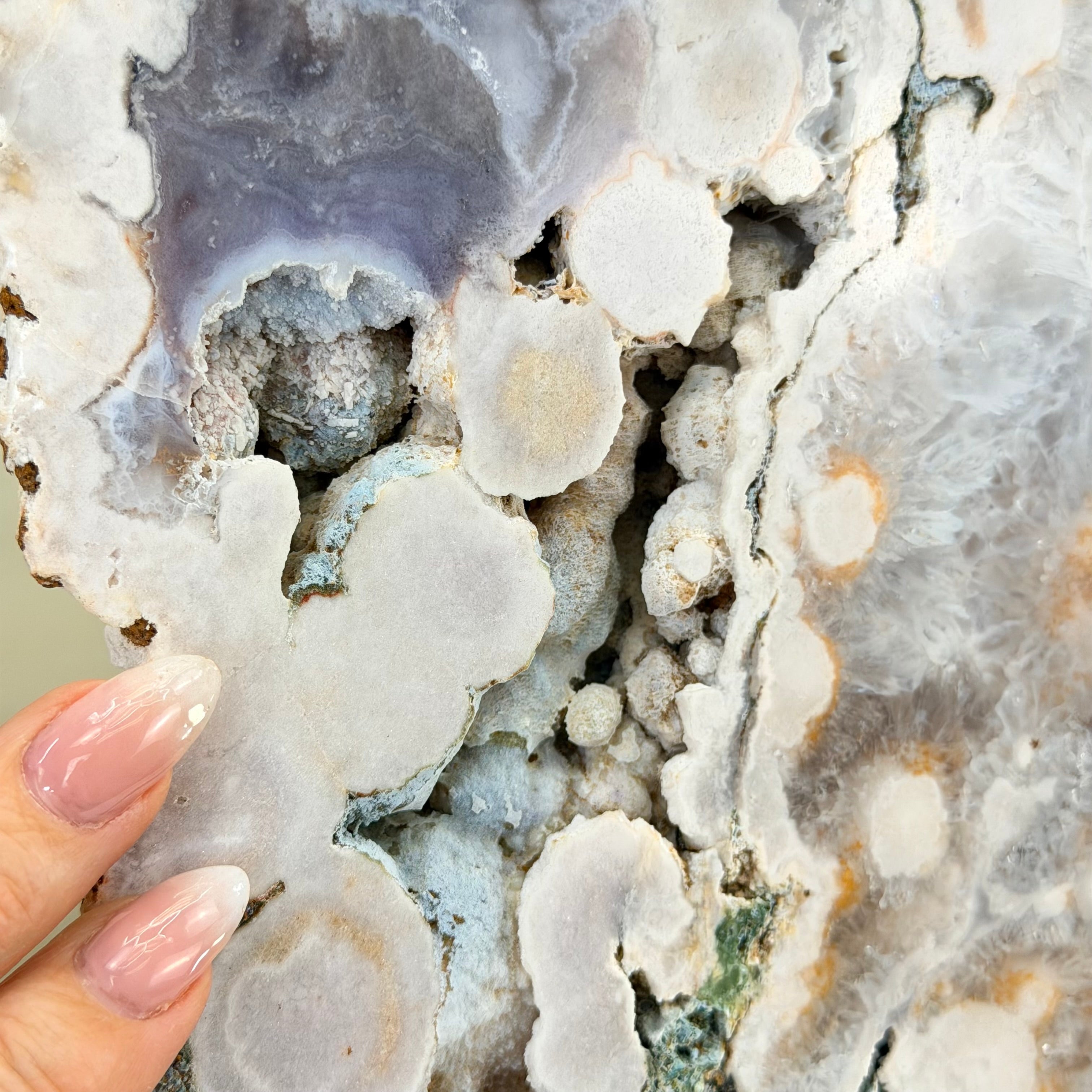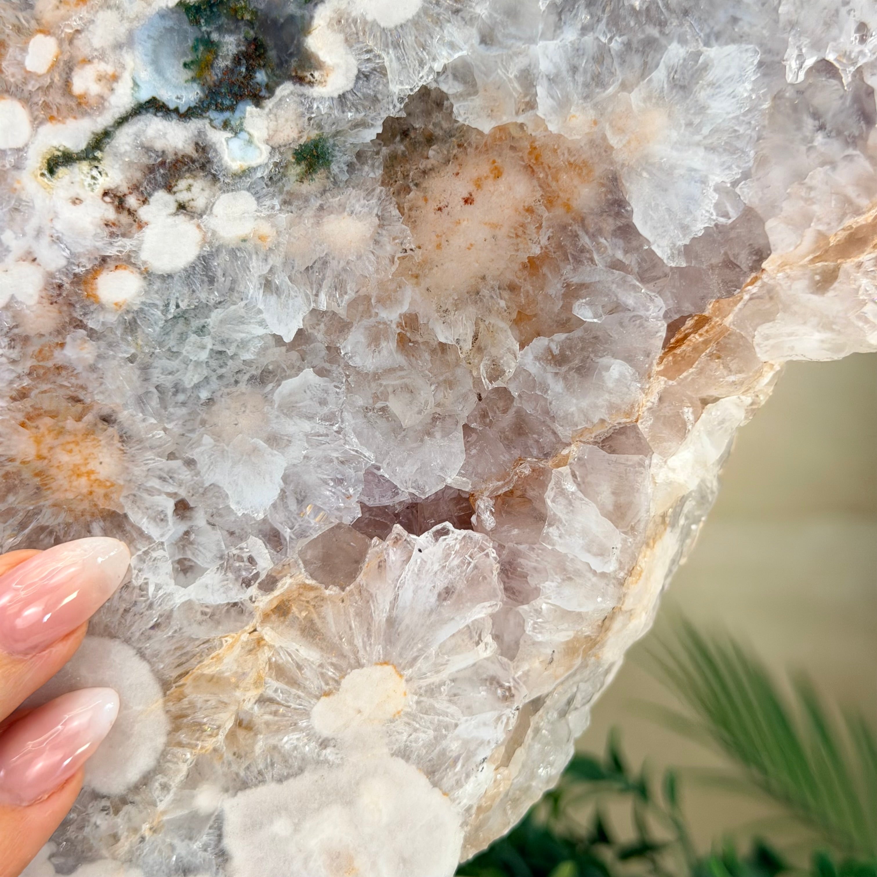 Presented on a modern metal stand, this piece transforms a natural gemstone into a sophisticated décor accent, perfect for adding an elegant, organic touch to any space.