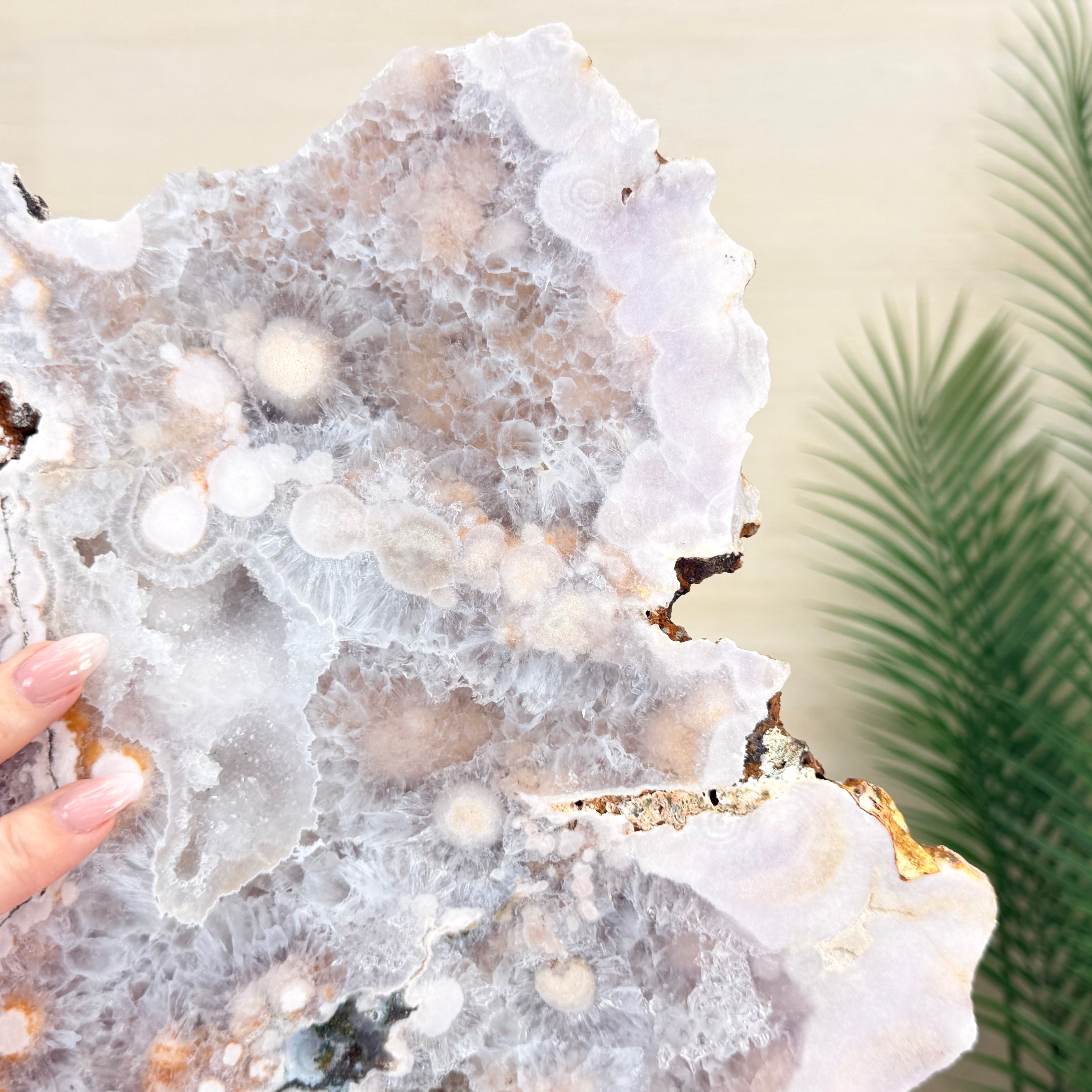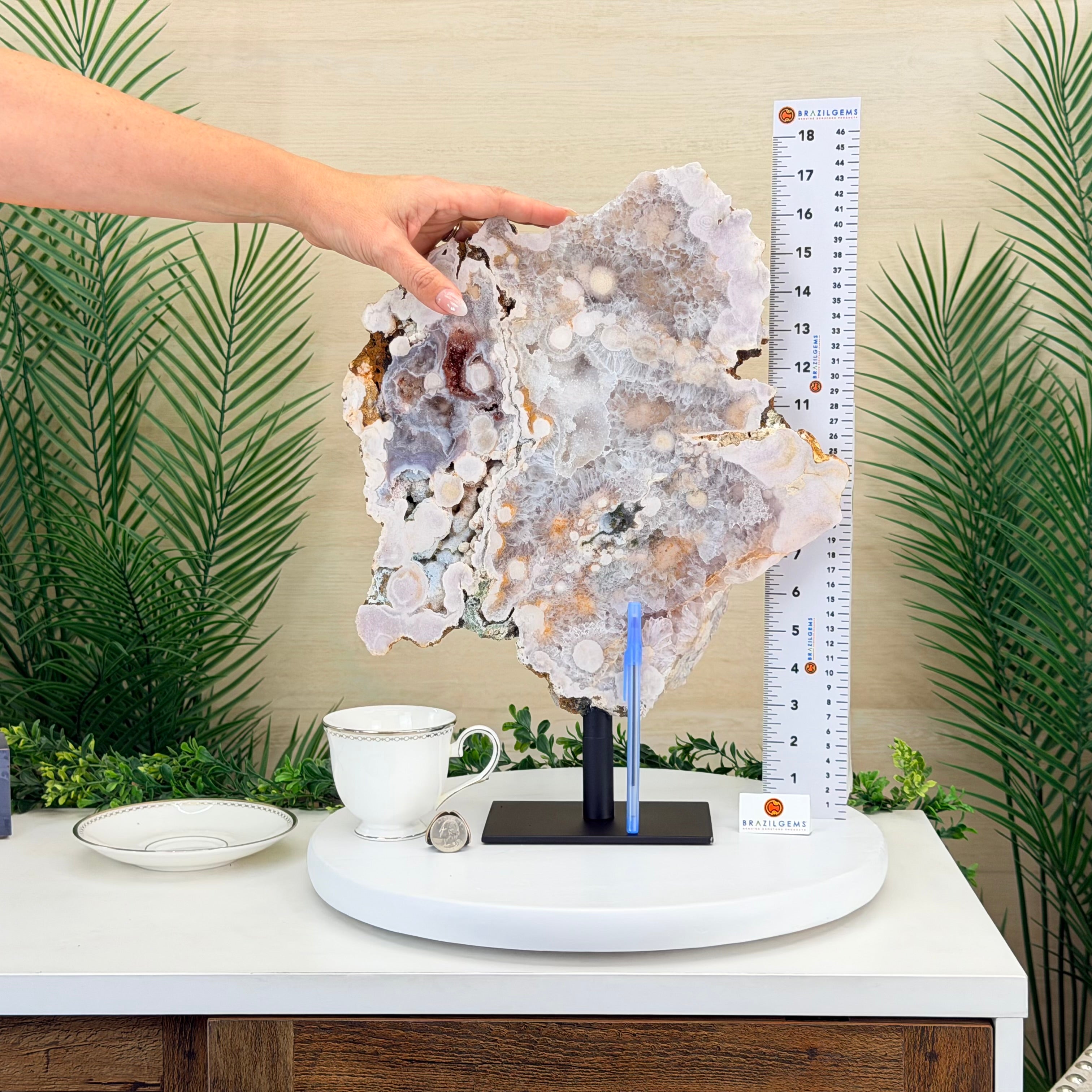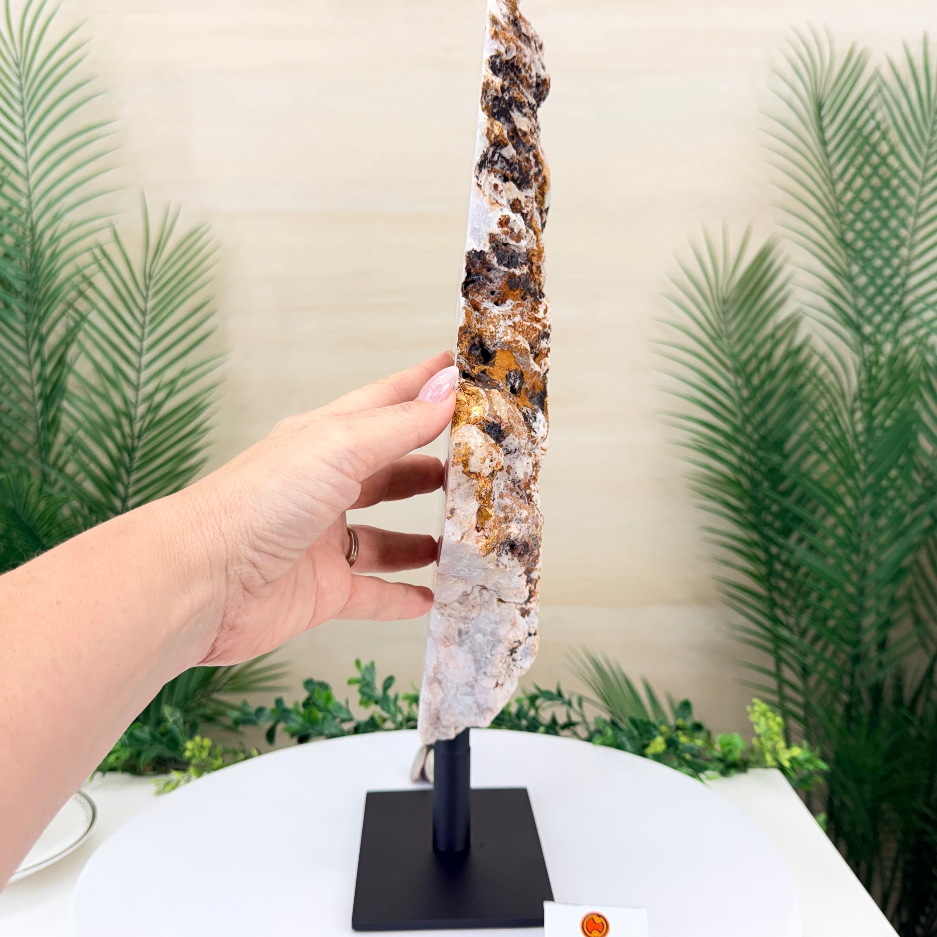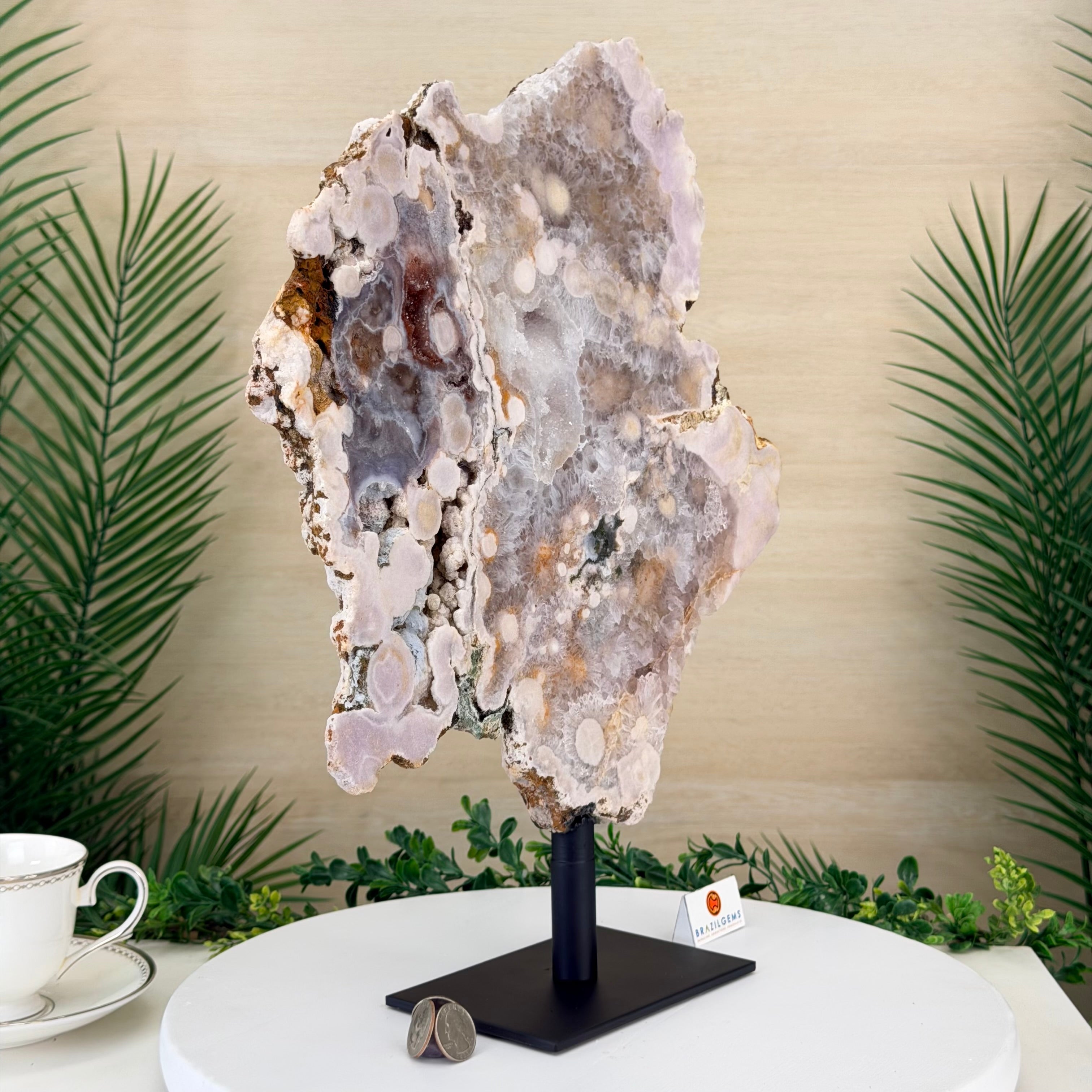 Natural Pink Amethyst Slice on Stand, Polished 17.4" Tall