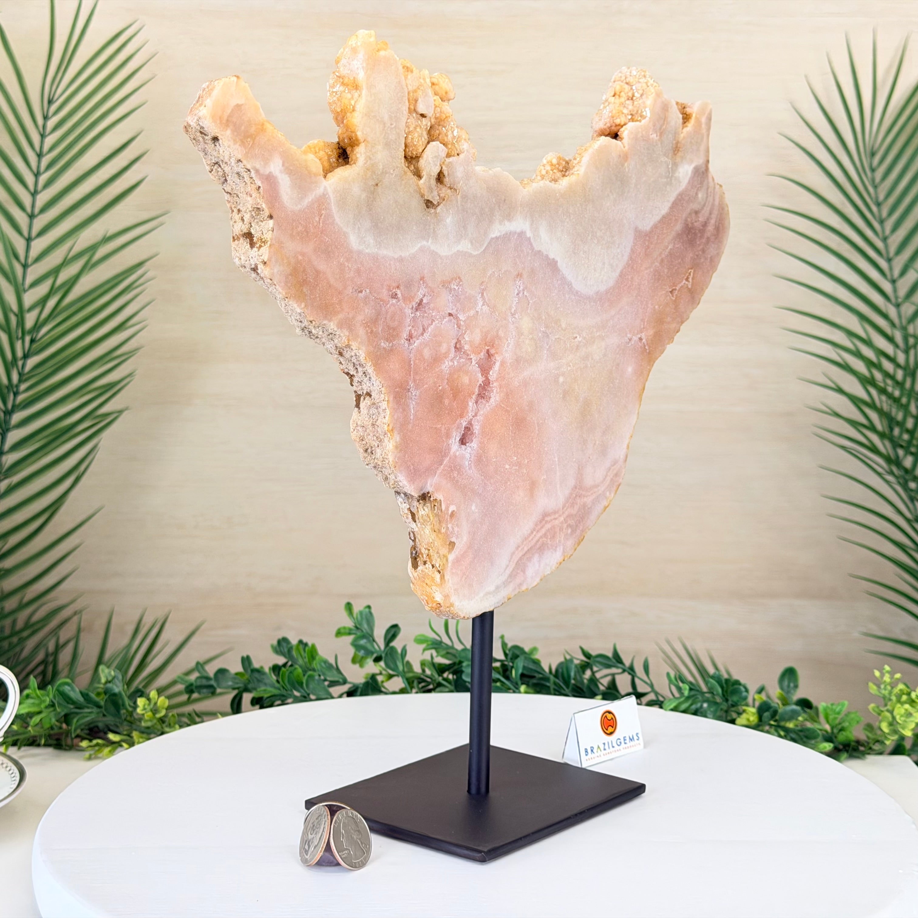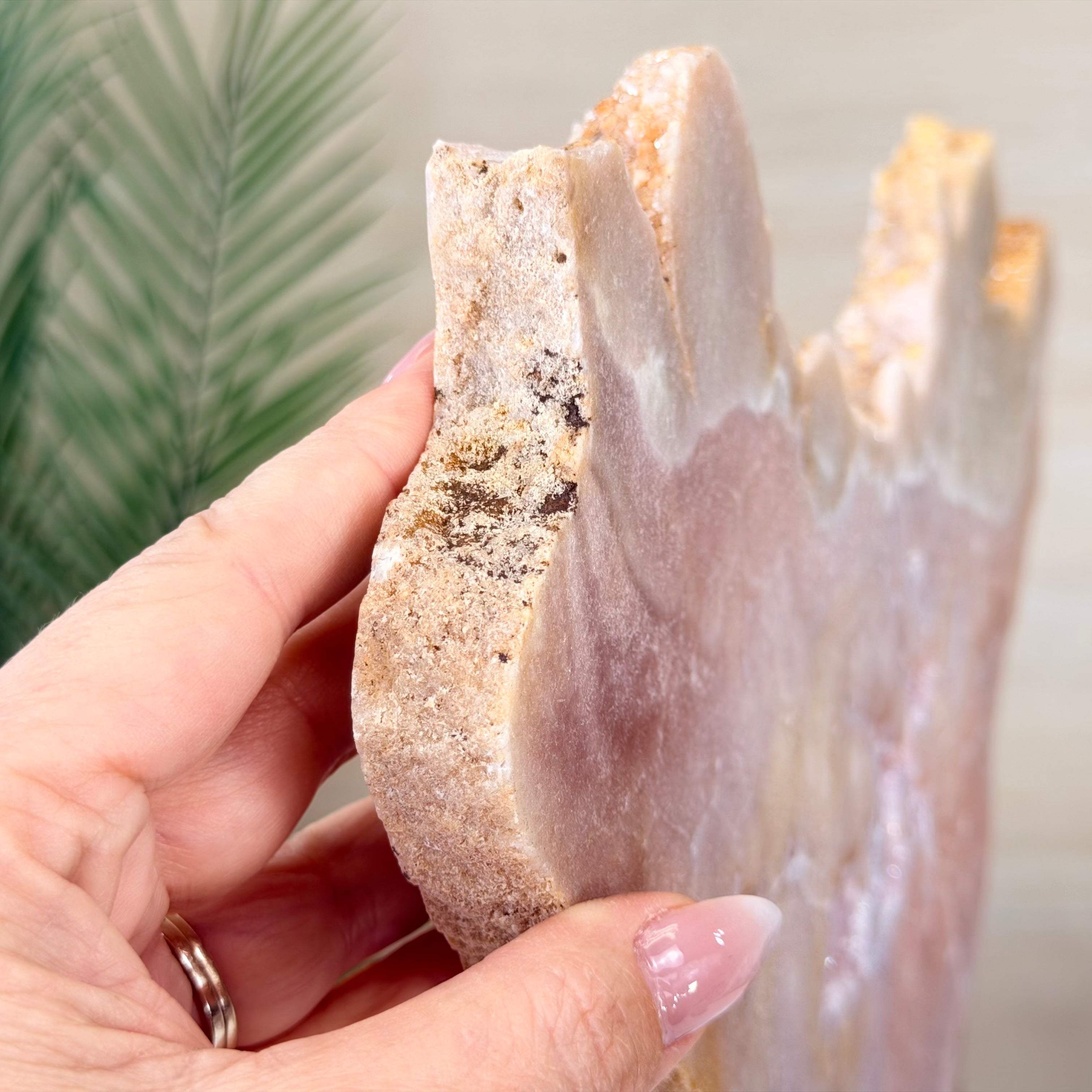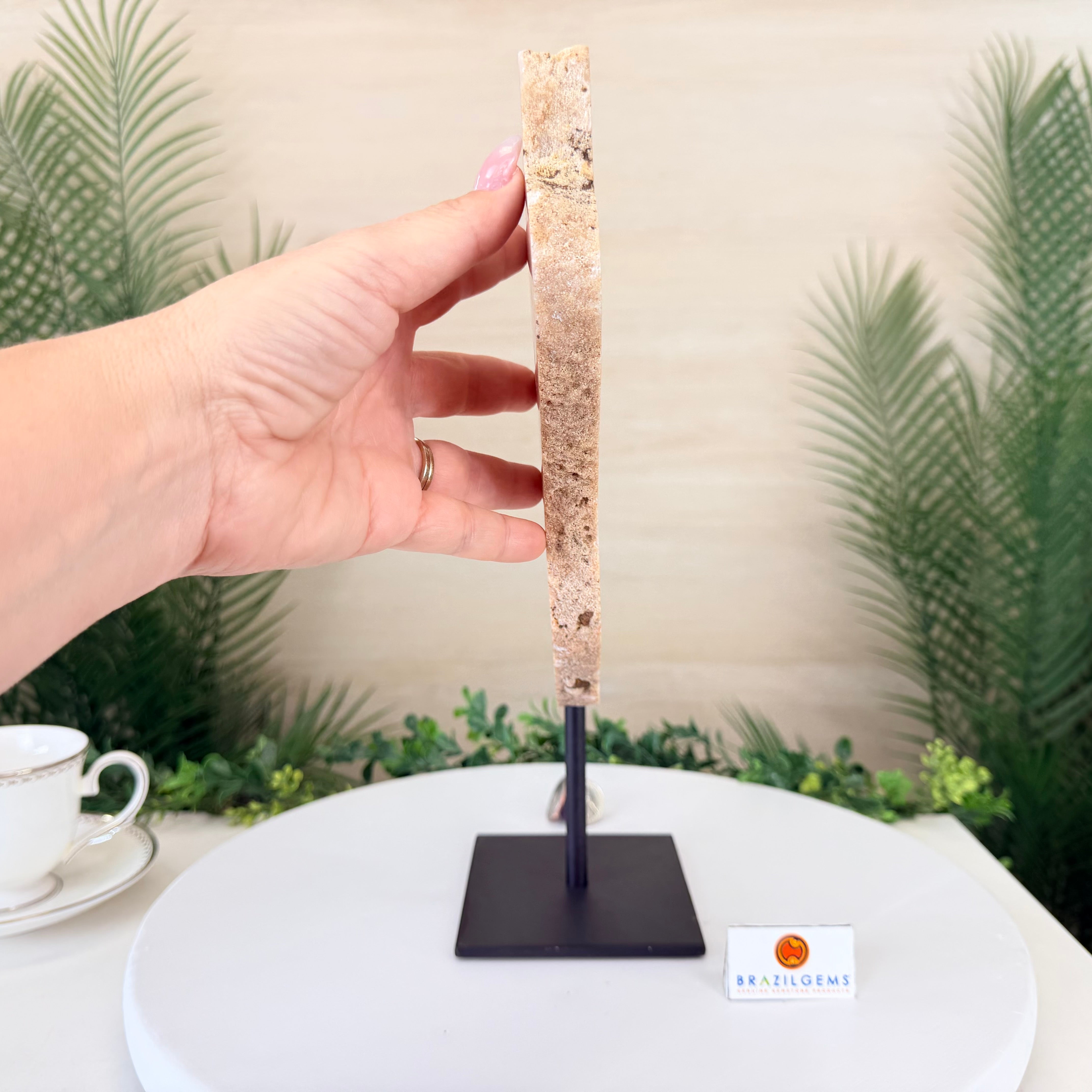 Pink Amethyst Slice on Stand, Polished 13" Tall