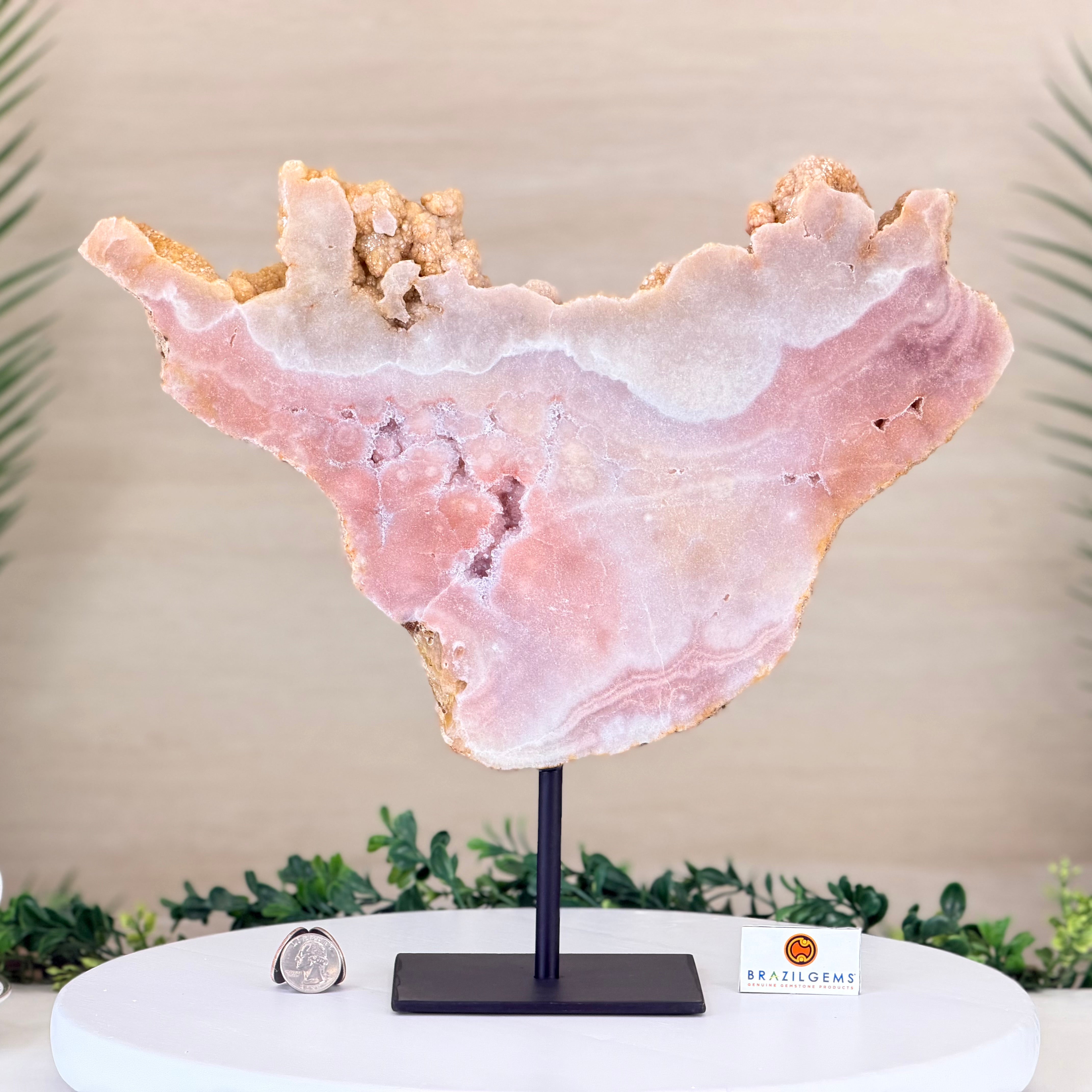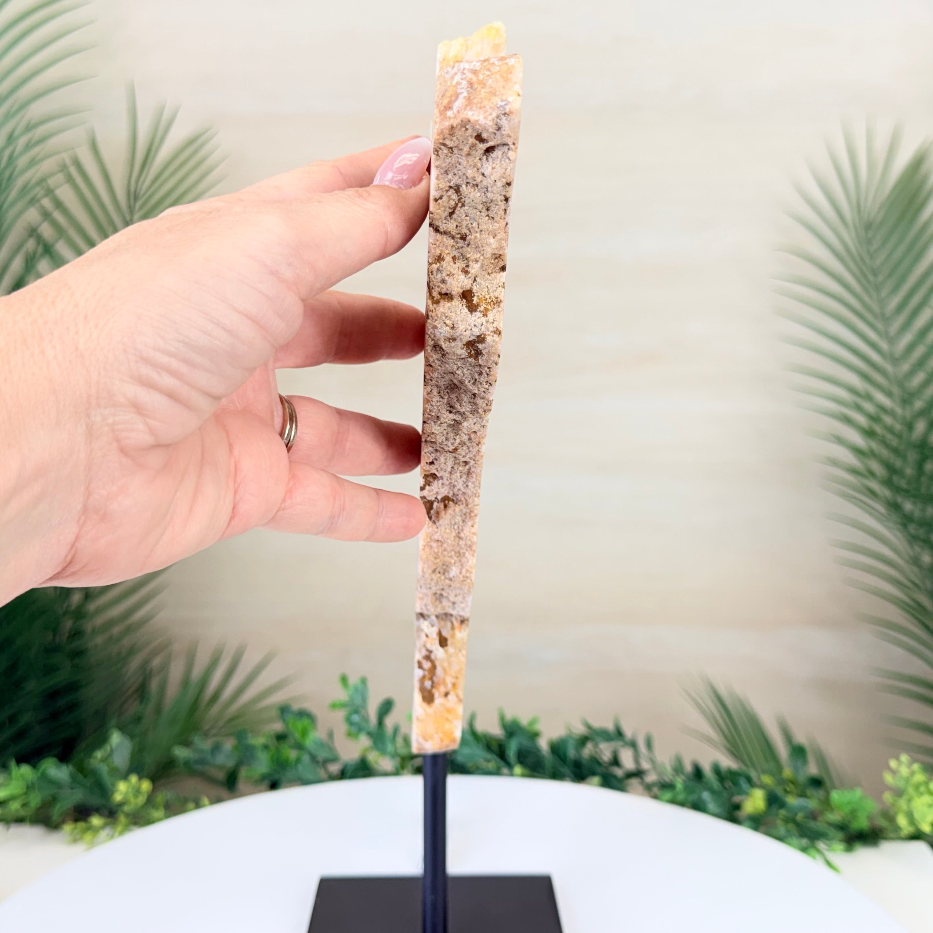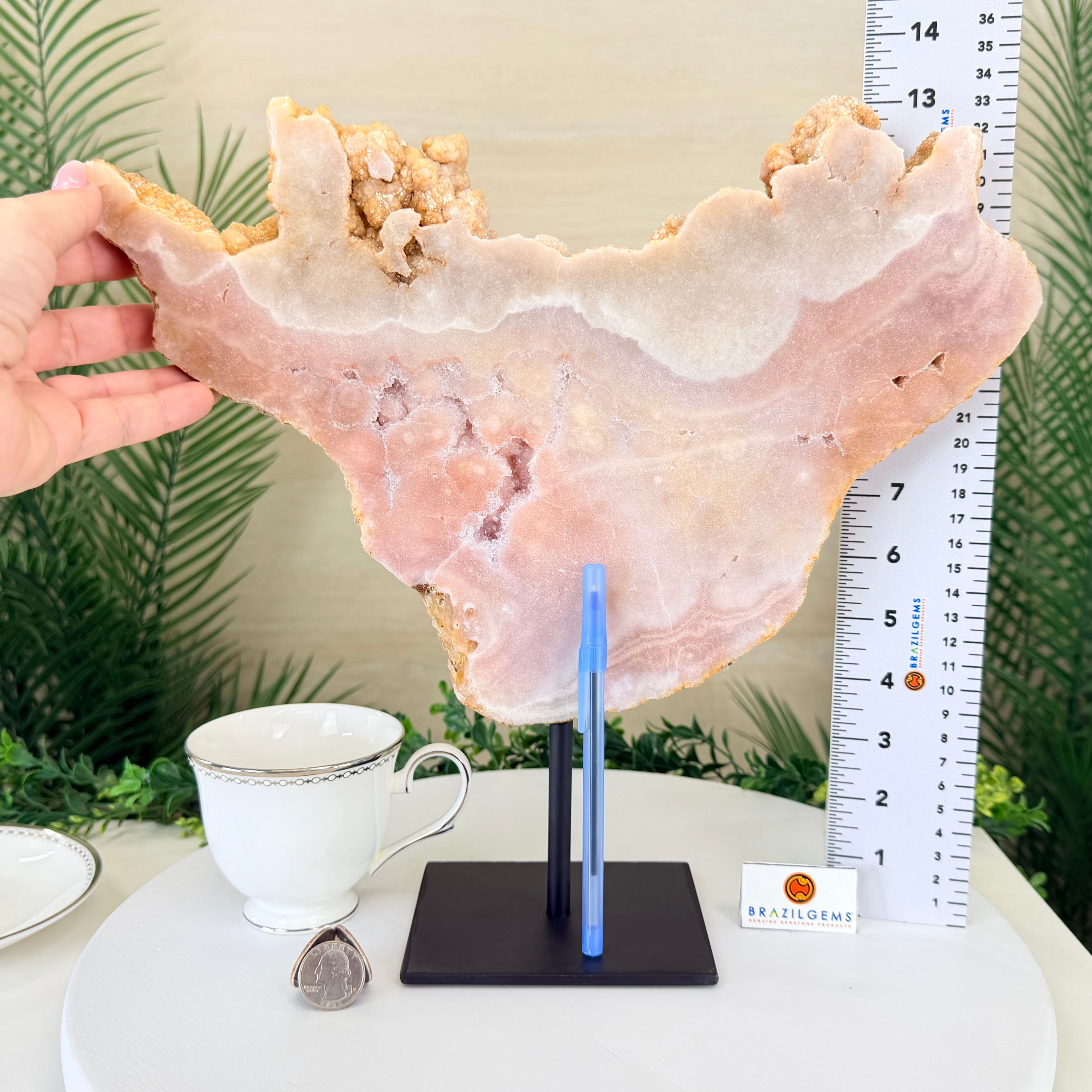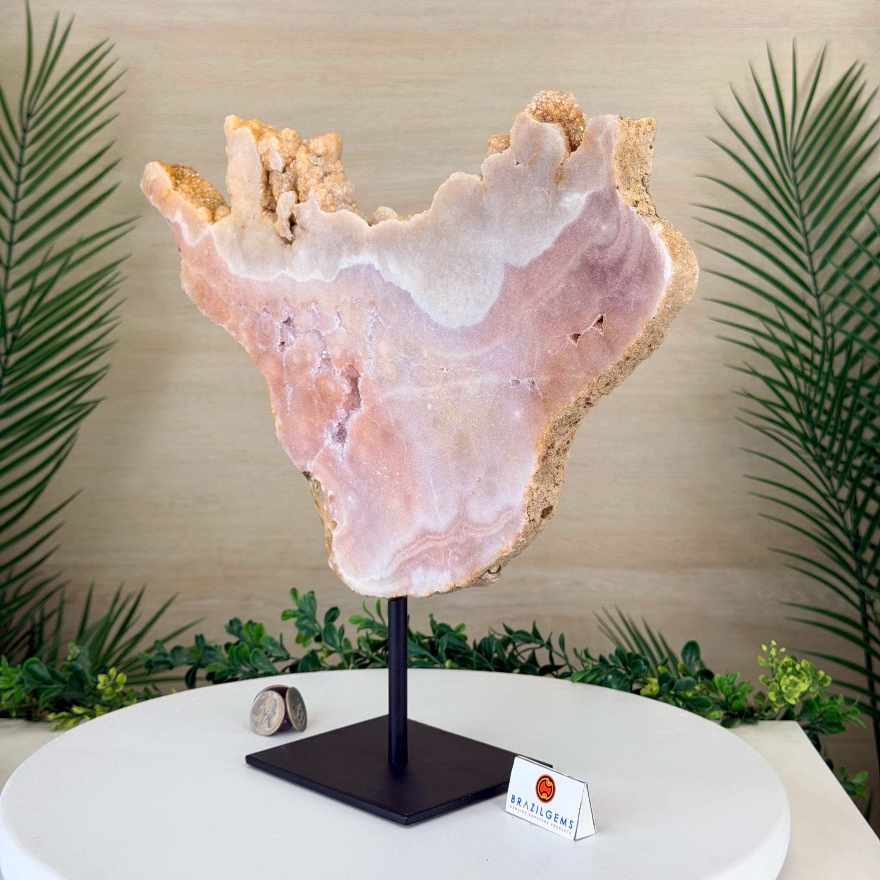 Pink Amethyst Slice on Stand, Polished 13" Tall