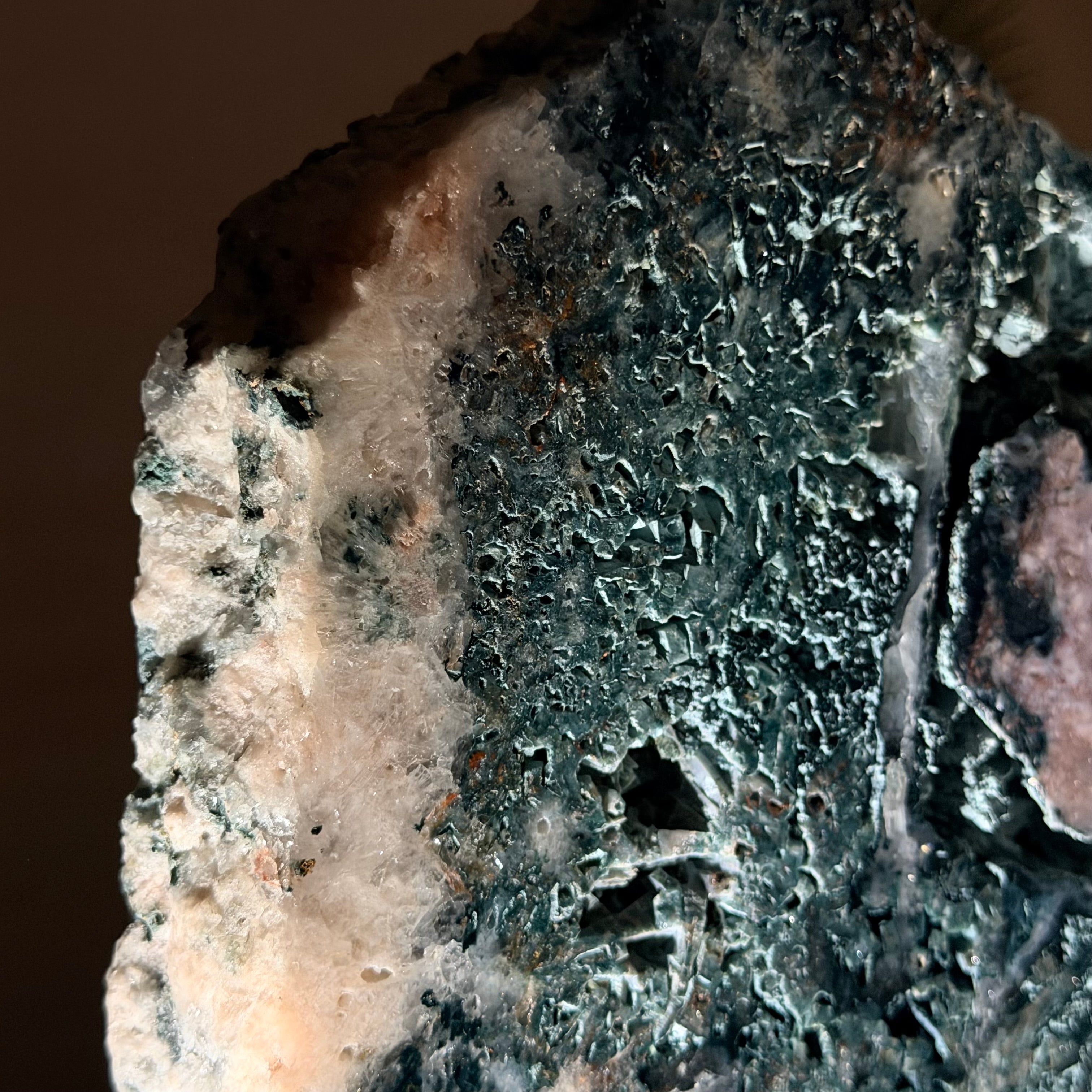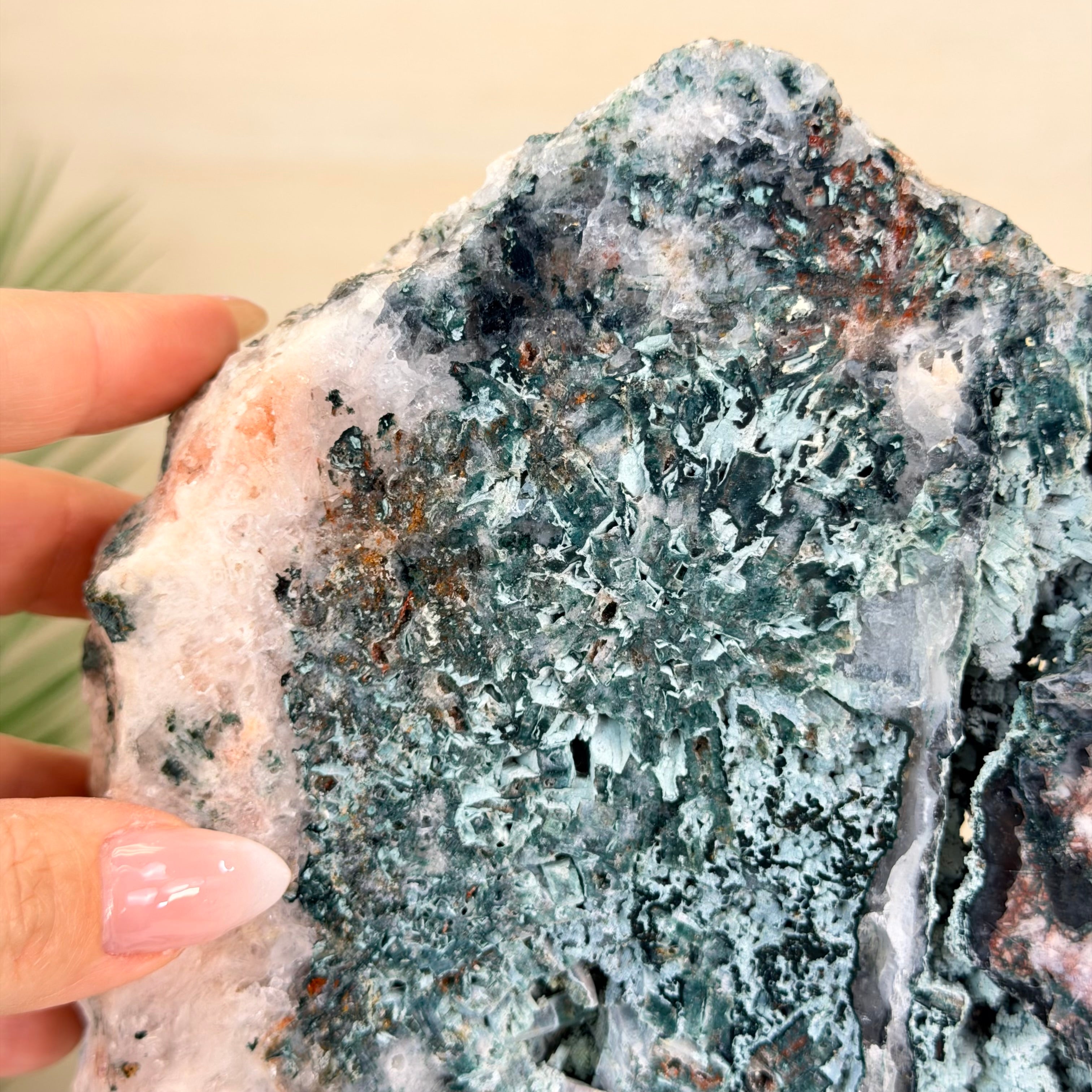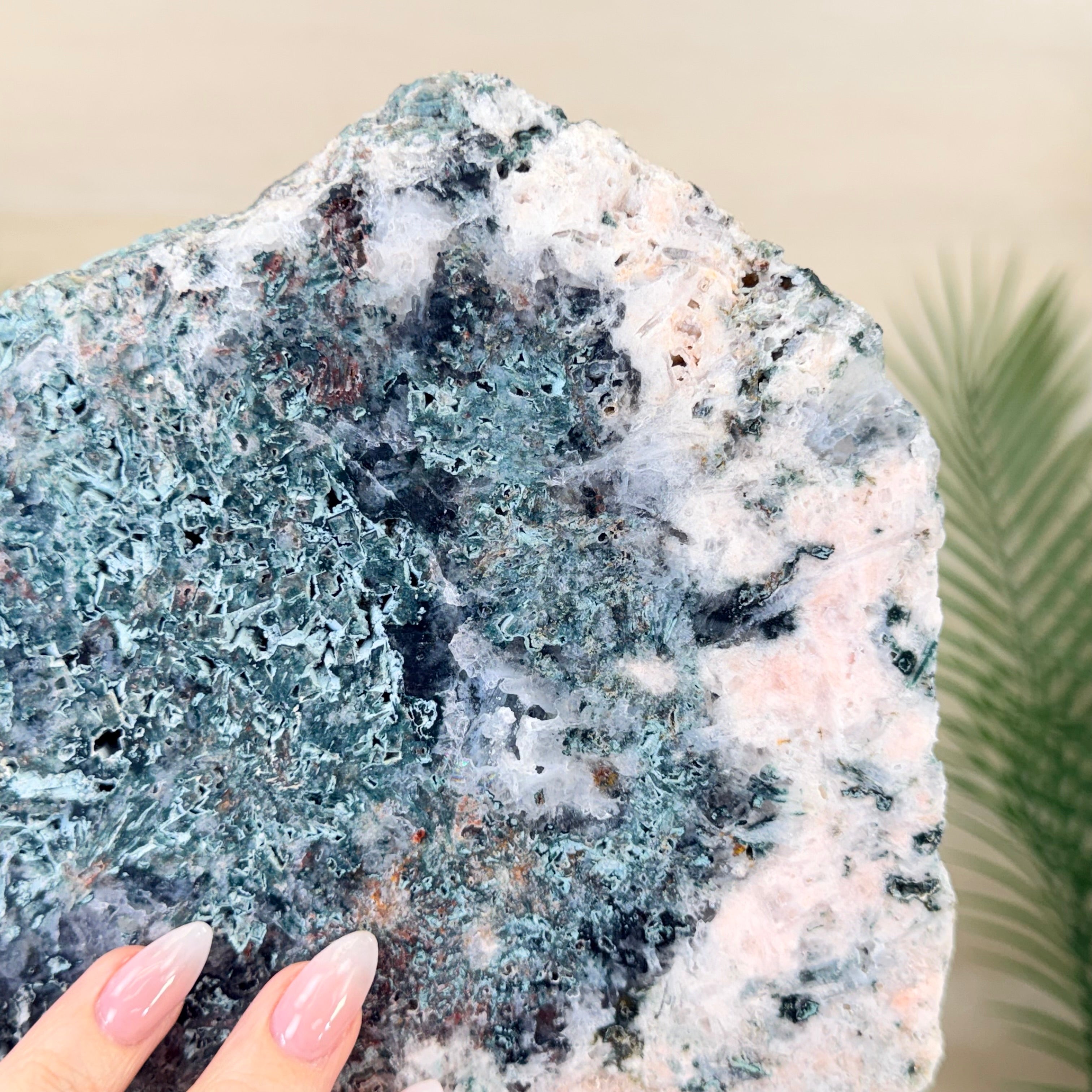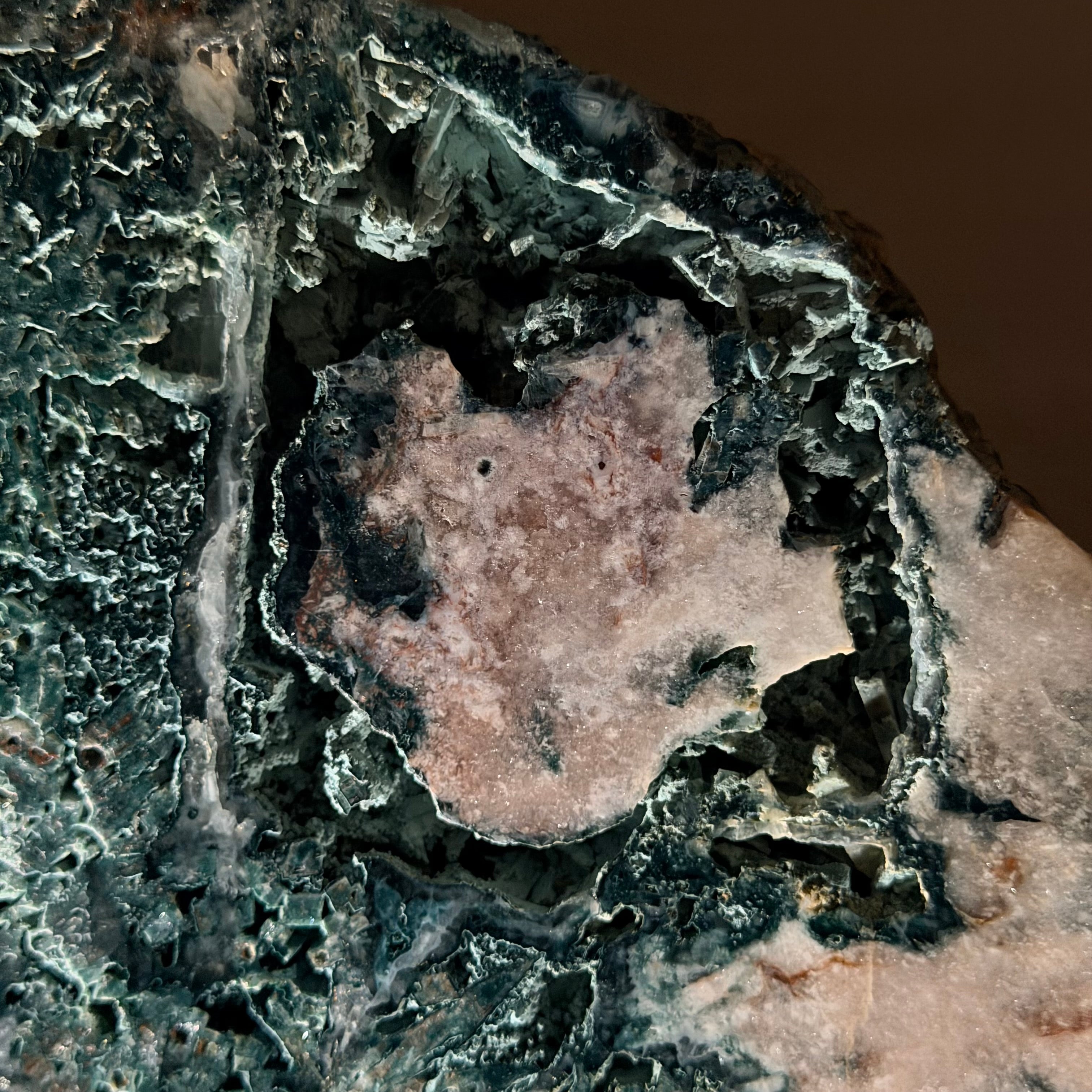 Presented on a modern metal stand, this piece transforms a natural gemstone into a sophisticated décor accent, perfect for adding an elegant, organic touch to any space.