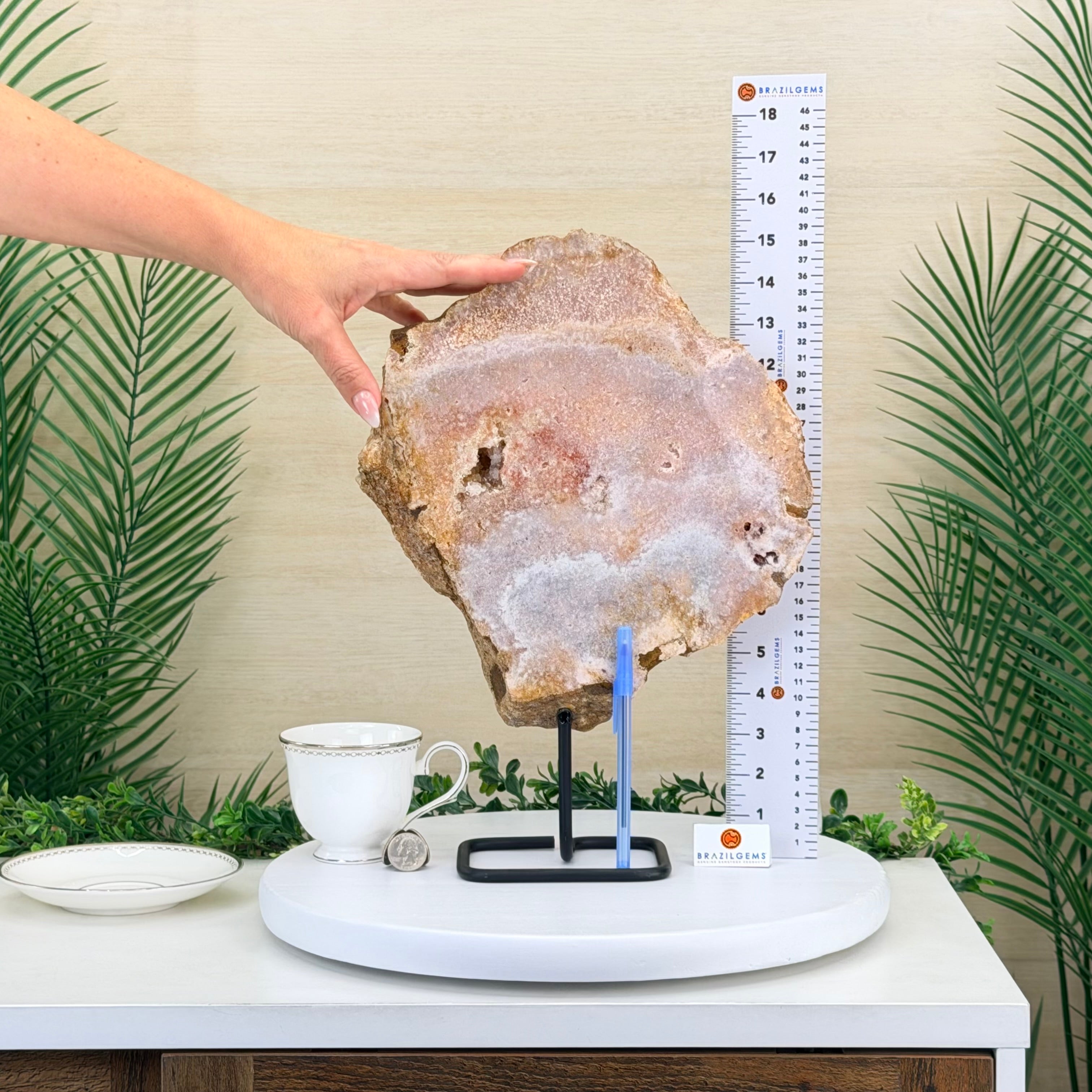 Pink Amethyst Slice on Stand, Polished 15.1" Tall
