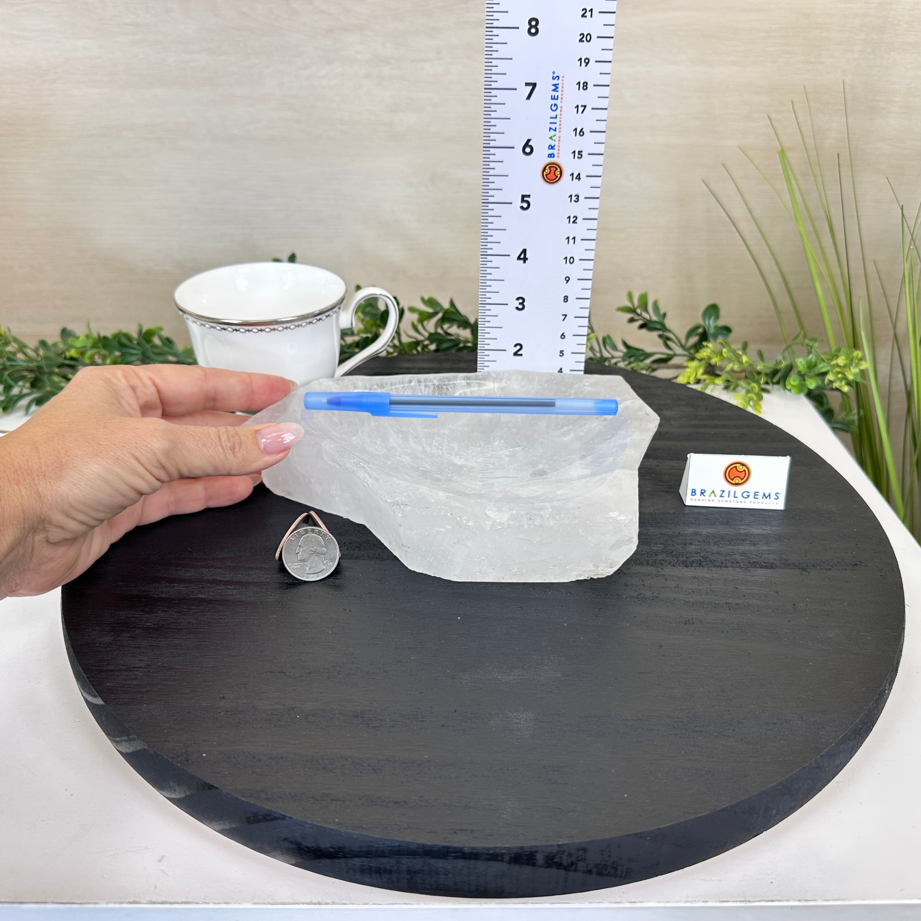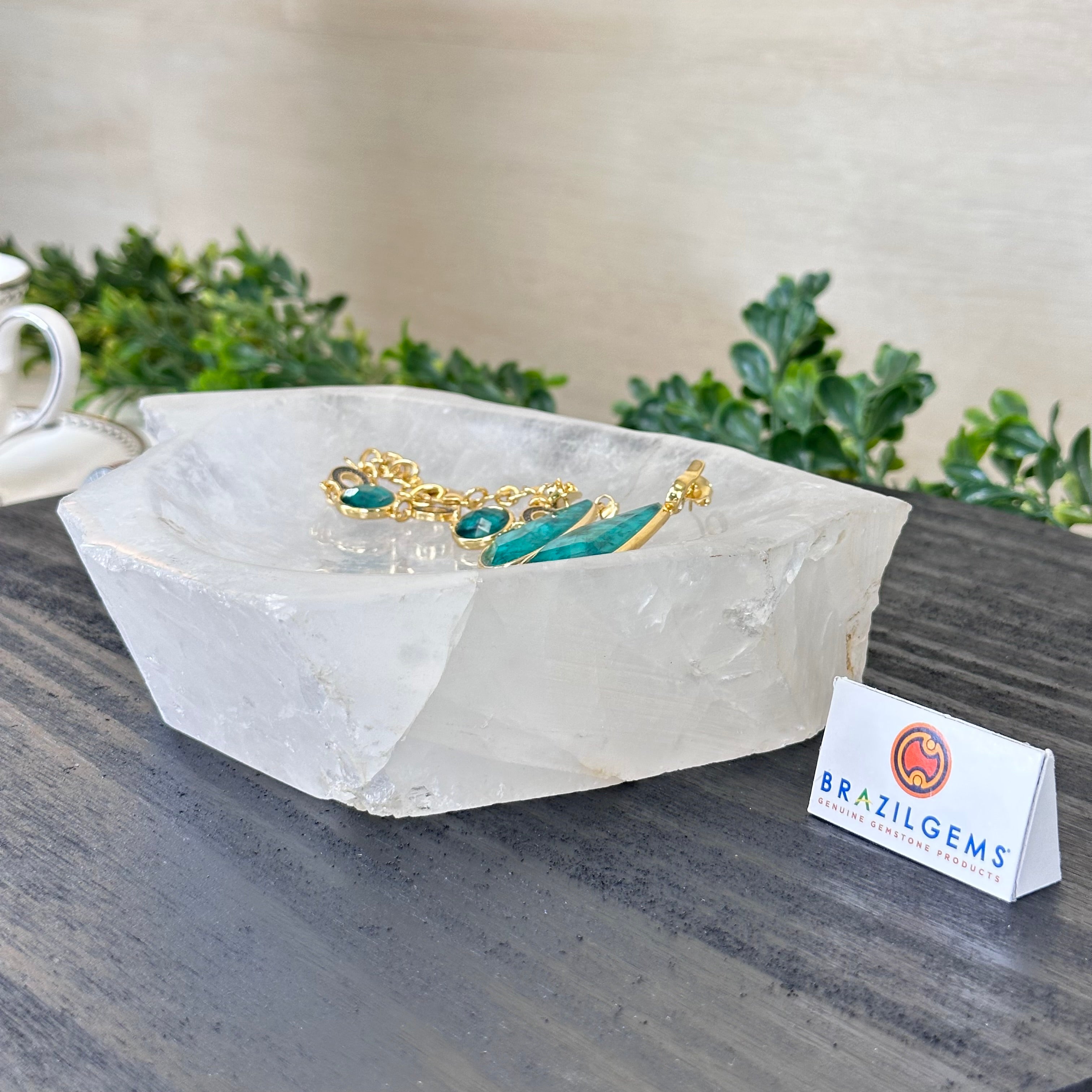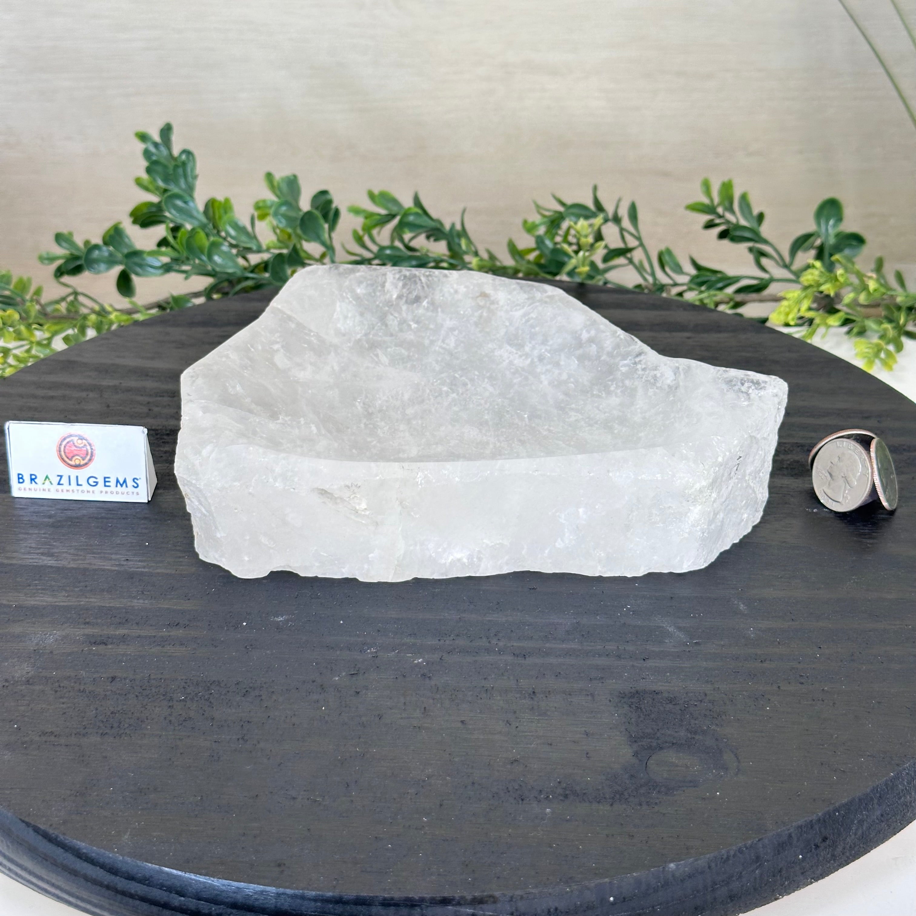 Elegant and versatile, this Clear Quartz decorative bowl is handcrafted from natural Brazilian stone and polished to reveal soft white tones. Use it as a soap dish, jewelry and ring holder, or a decorative catch-all for small items like crystals, keys, or loose change. Its smooth, durable surface makes it ideal for bathroom countertops, bedside tables, or entryway décor. Its edges are rough and not polished.