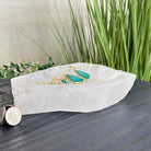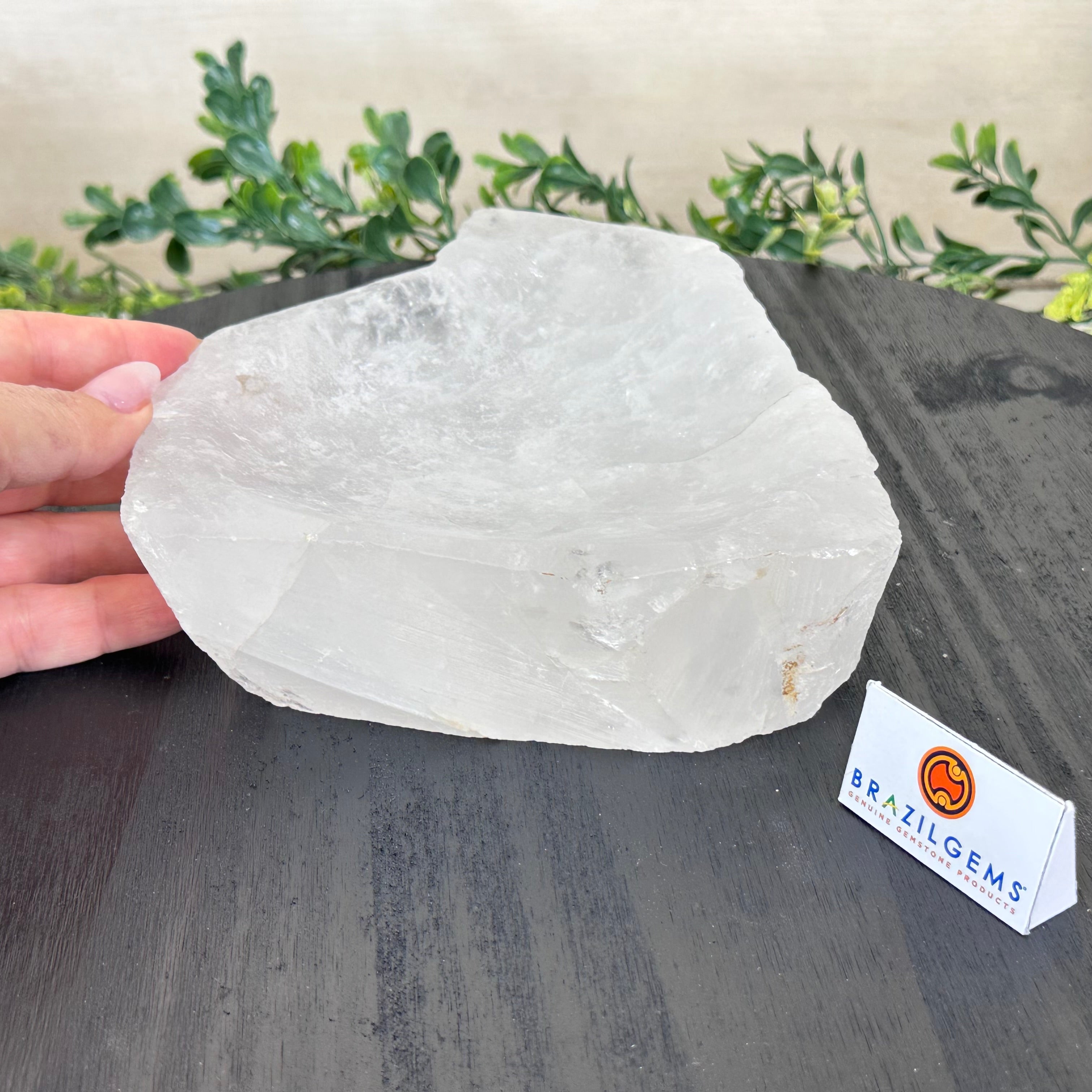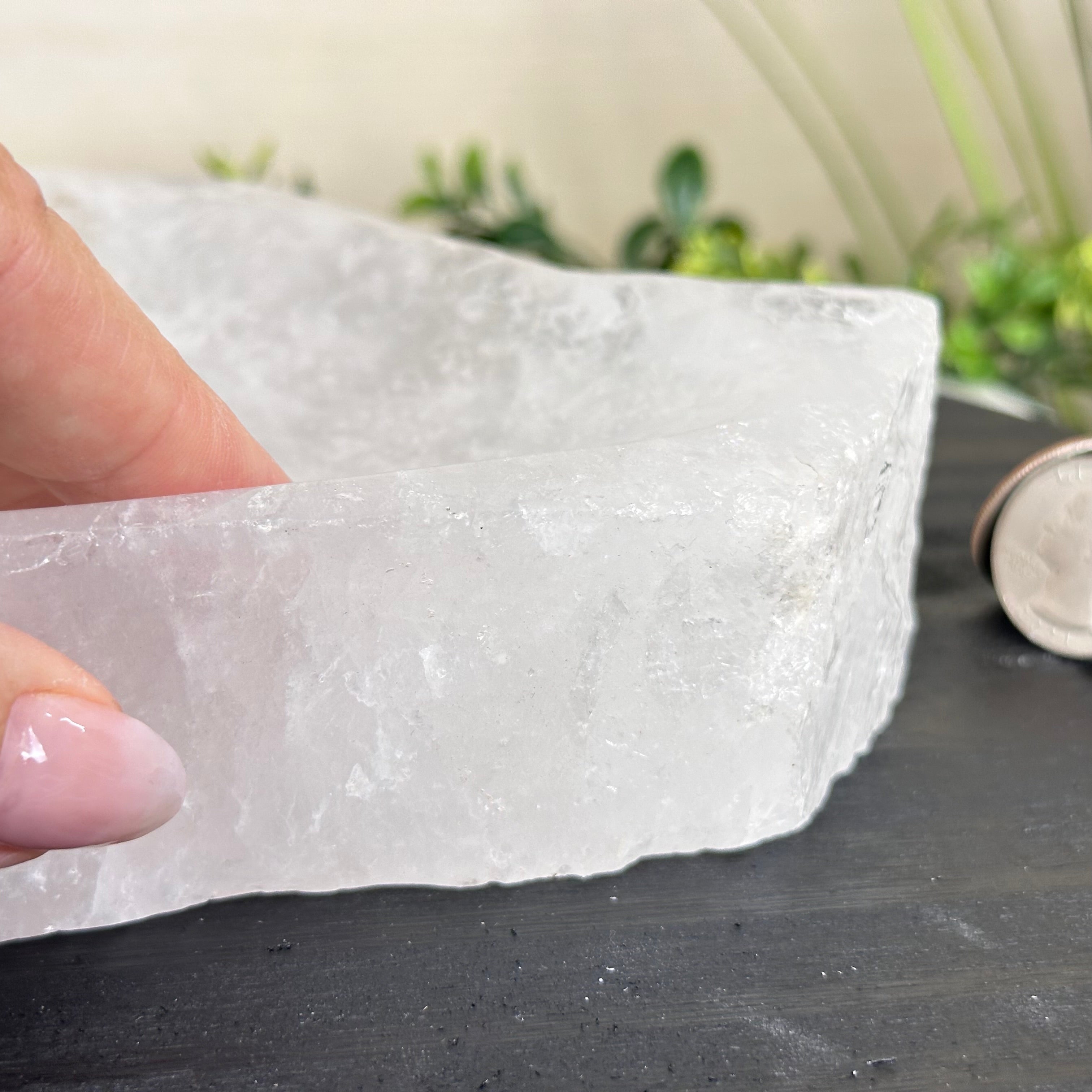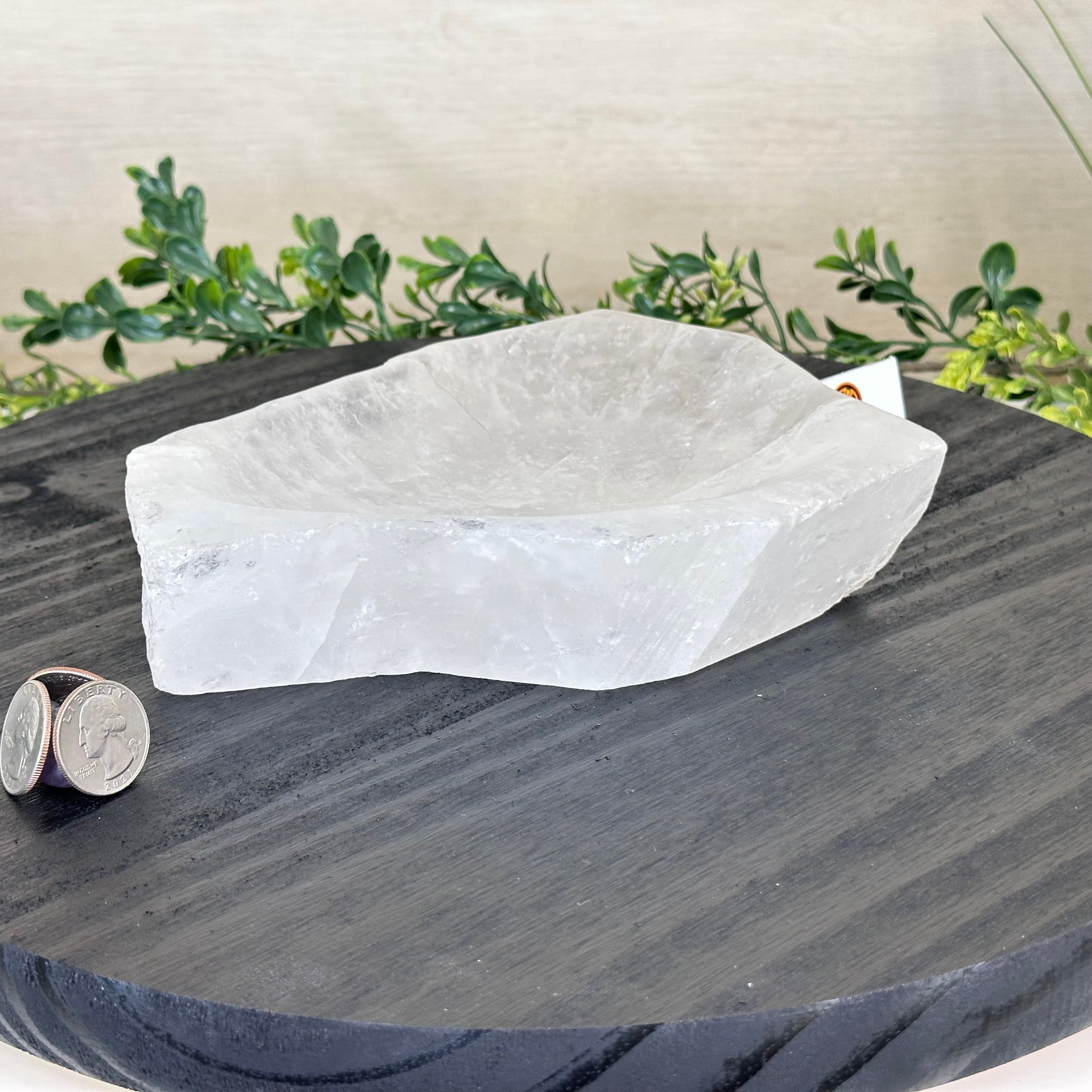 Elegant and versatile, this Clear Quartz decorative bowl is handcrafted from natural Brazilian stone and polished to reveal soft white tones. Use it as a soap dish, jewelry and ring holder, or a decorative catch-all for small items like crystals, keys, or loose change. Its smooth, durable surface makes it ideal for bathroom countertops, bedside tables, or entryway décor. Its edges are rough and not polished.