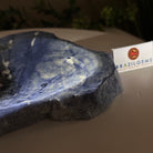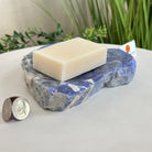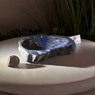 Elegant and versatile, this Sodalite decorative bowl is handcrafted from natural Brazilian stone and polished to reveal blue and white tones. Use it as a soap dish, jewelry and ring holder, or a decorative catch-all for small items like crystals, keys, or loose change. Its smooth, durable surface makes it ideal for bathroom countertops, bedside tables, or entryway décor. Its edges are rough and not polished.