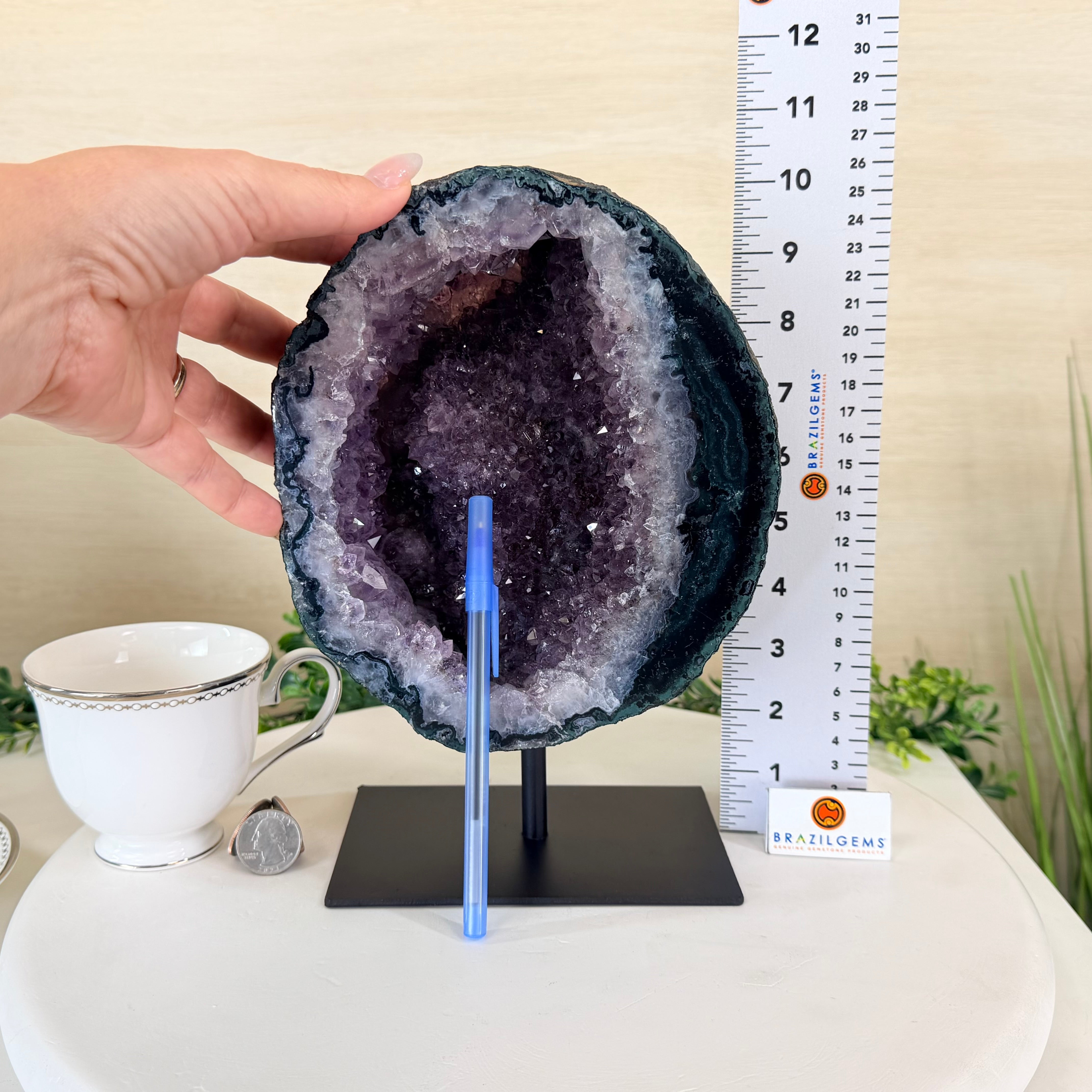 Disclaimer: This is a natural gemstone crystal sold by Brazil Gems® as is and as you see it in its images and video. It is the exact piece you will receive. It may contain natural imperfections as well as imperfections, repairs, scratches and/or broken edges from the extraction, polishing, mounting and prepping processes. The crystal has a hole drilled in its bottom to allow it to be mounted on its black painted metal stand. It can be removed from its stand. At Brazil Gems® we make every effort to get measurements as exact as possible but they are done by human hands and eyes and therefore may have minor discrepancies.