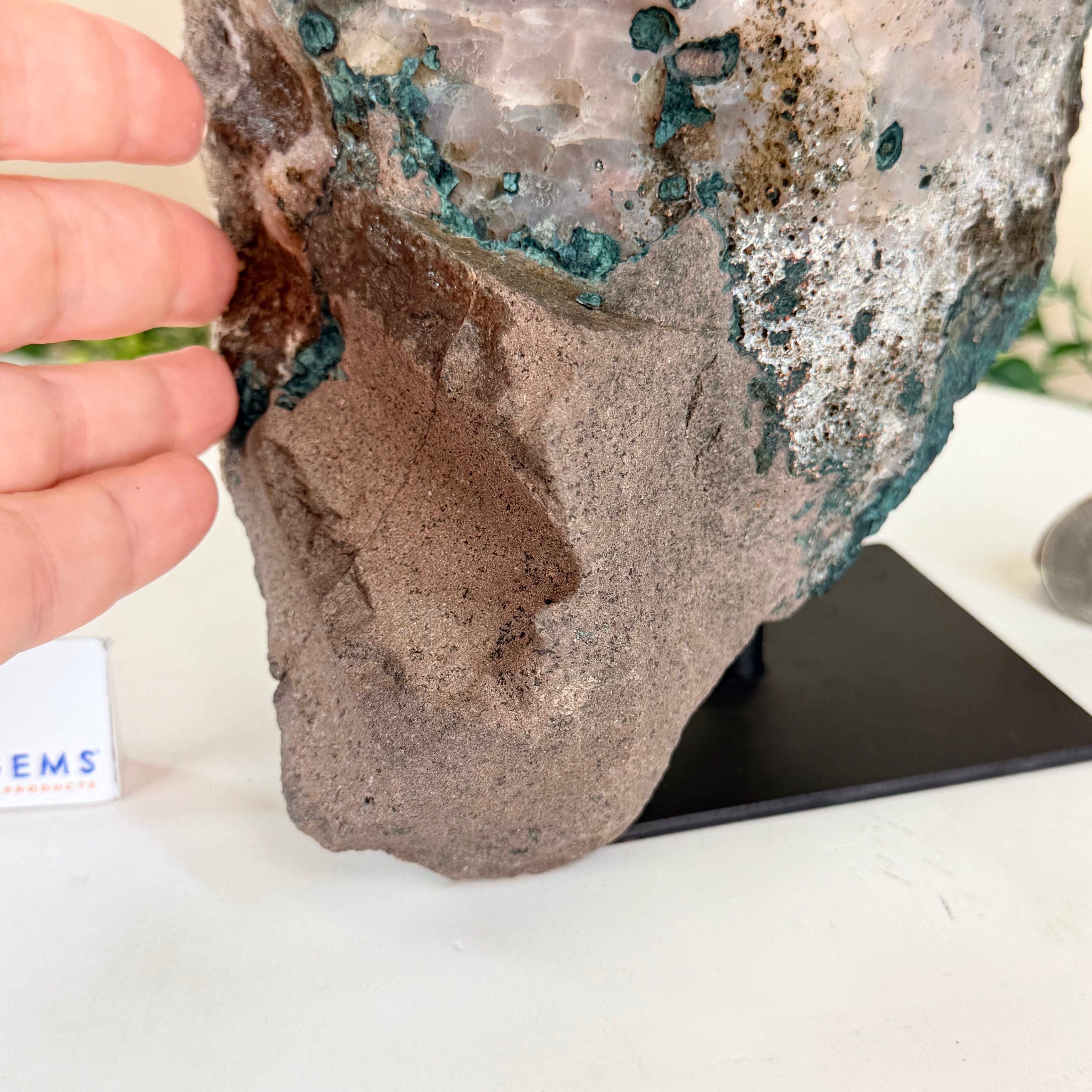 Disclaimer: This is a natural gemstone crystal sold by Brazil Gems® as is and as you see it in its images and video. It is the exact piece you will receive. It may contain natural imperfections as well as imperfections, repairs, scratches and/or broken edges from the extraction, polishing, mounting and prepping processes. The crystal has a hole drilled in its bottom to allow it to be mounted on its black painted metal stand. It can be removed from its stand. At Brazil Gems® we make every effort to get measurements as exact as possible but they are done by human hands and eyes and therefore may have minor discrepancies.
