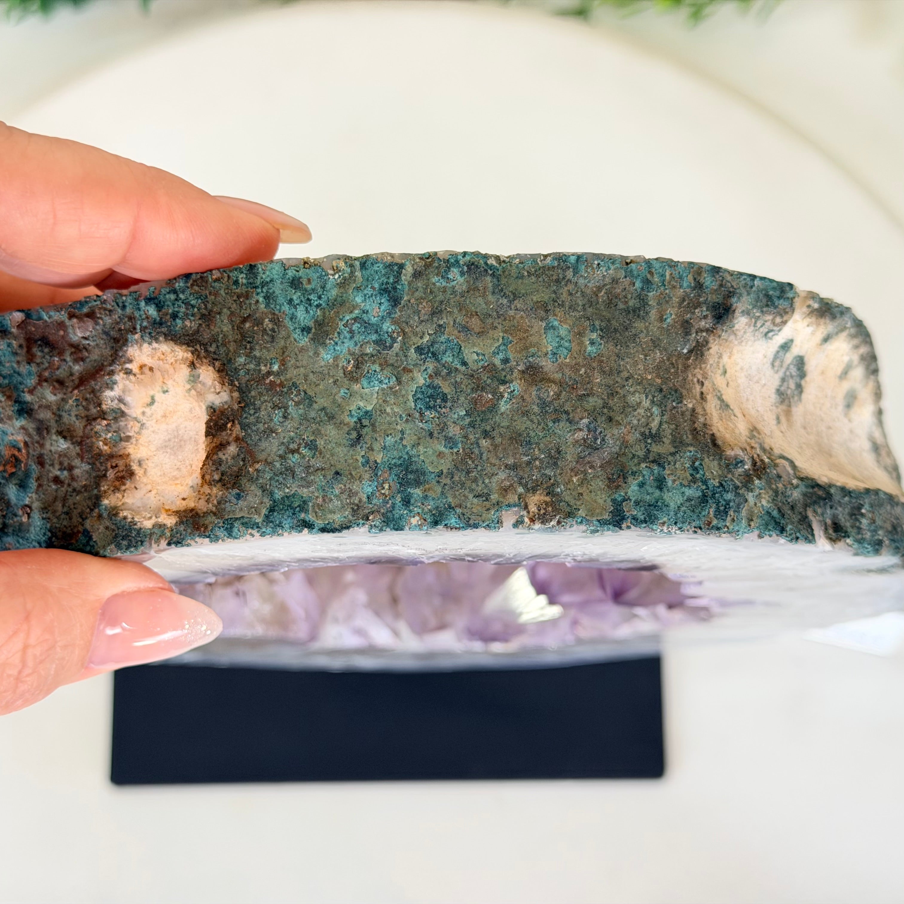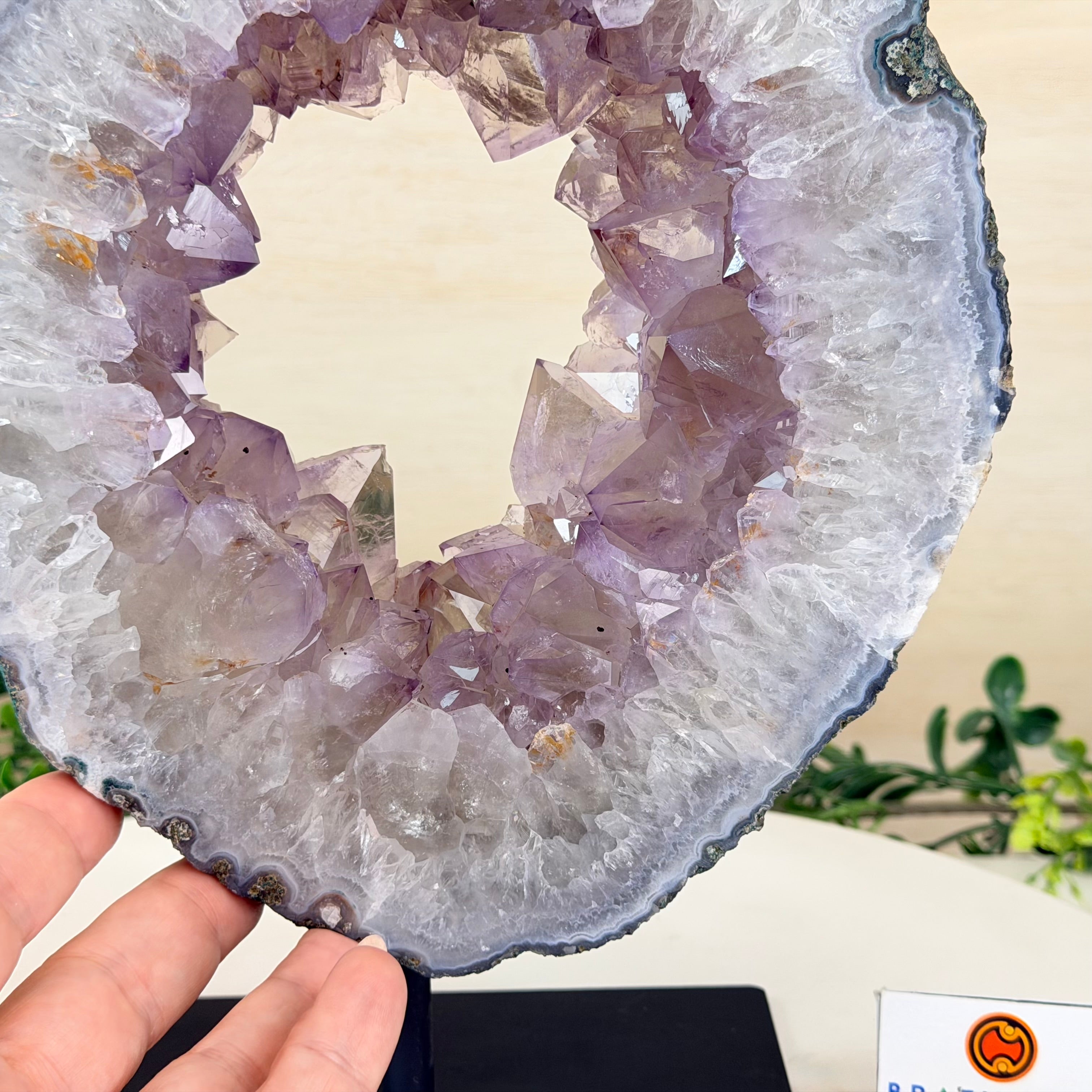 This is a natural gemstone crystal sold by Brazil Gems® as is and as you see it in its images and video. It is the exact piece you will receive. It may contain natural imperfections as well as imperfections, scratches, broken edges and repairs from the extraction, polishing and mounting processes. The crystal has a hole drilled in its bottom to allow it to be mounted on its black painted metal stand. It may or may not be able to be removed from its stand, you may contact us prior to purchase to see if it is glued onto its stand or removable. At Brazil Gems® we make every effort to get measurements as exact as possible but they are done by human hands and eyes and therefore may have minor discrepancies.