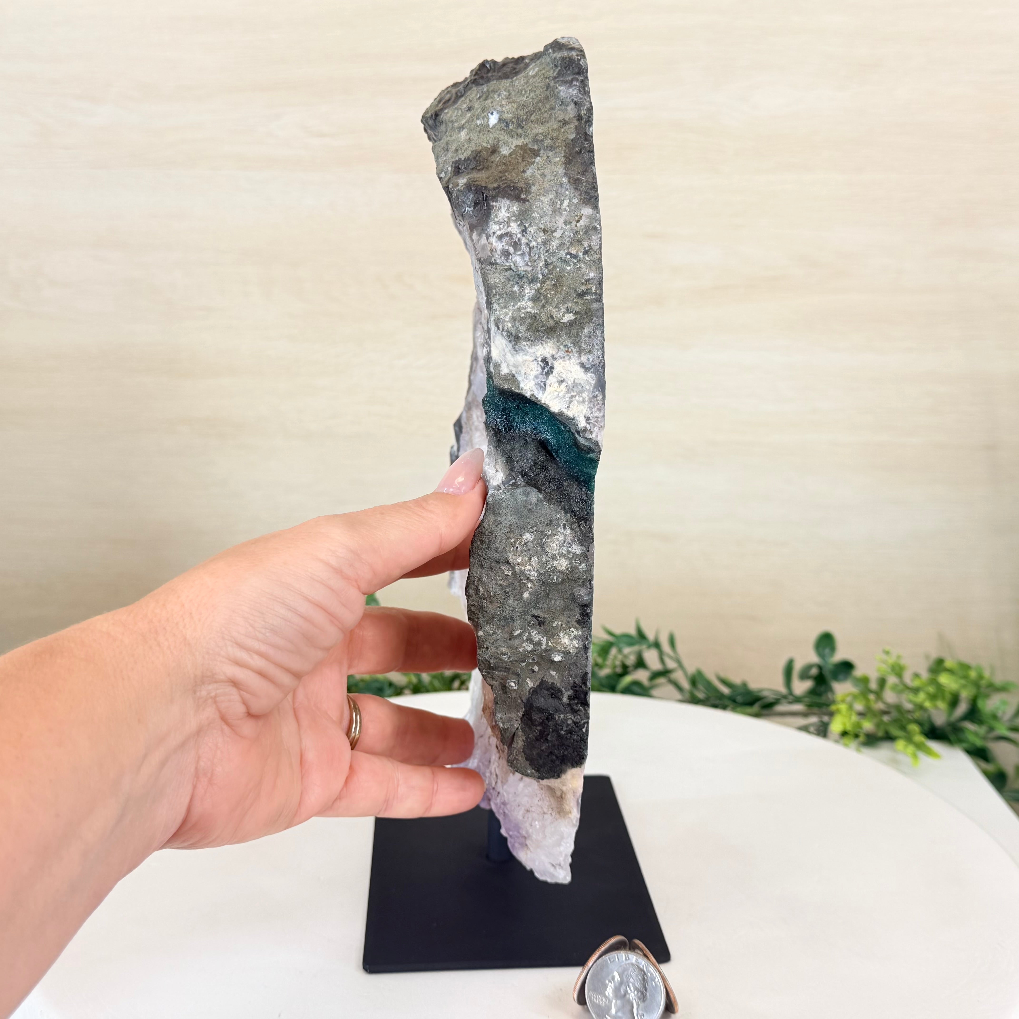 Disclaimer: This is a natural gemstone crystal sold by Brazil Gems® as is and as you see it in its images and video. It is the exact piece you will receive. It may contain natural imperfections as well as imperfections, scratches, broken edges and repairs from the extraction, polishing and mounting processes. The crystal has a hole drilled in its bottom to allow it to be mounted on its black painted metal stand. It may or may not be able to be removed from its stand, you may contact us prior to purchase to see if it is glued onto its stand or removable. At Brazil Gems® we make every effort to get measurements as exact as possible but they are done by human hands and eyes and therefore may have minor discrepancies.