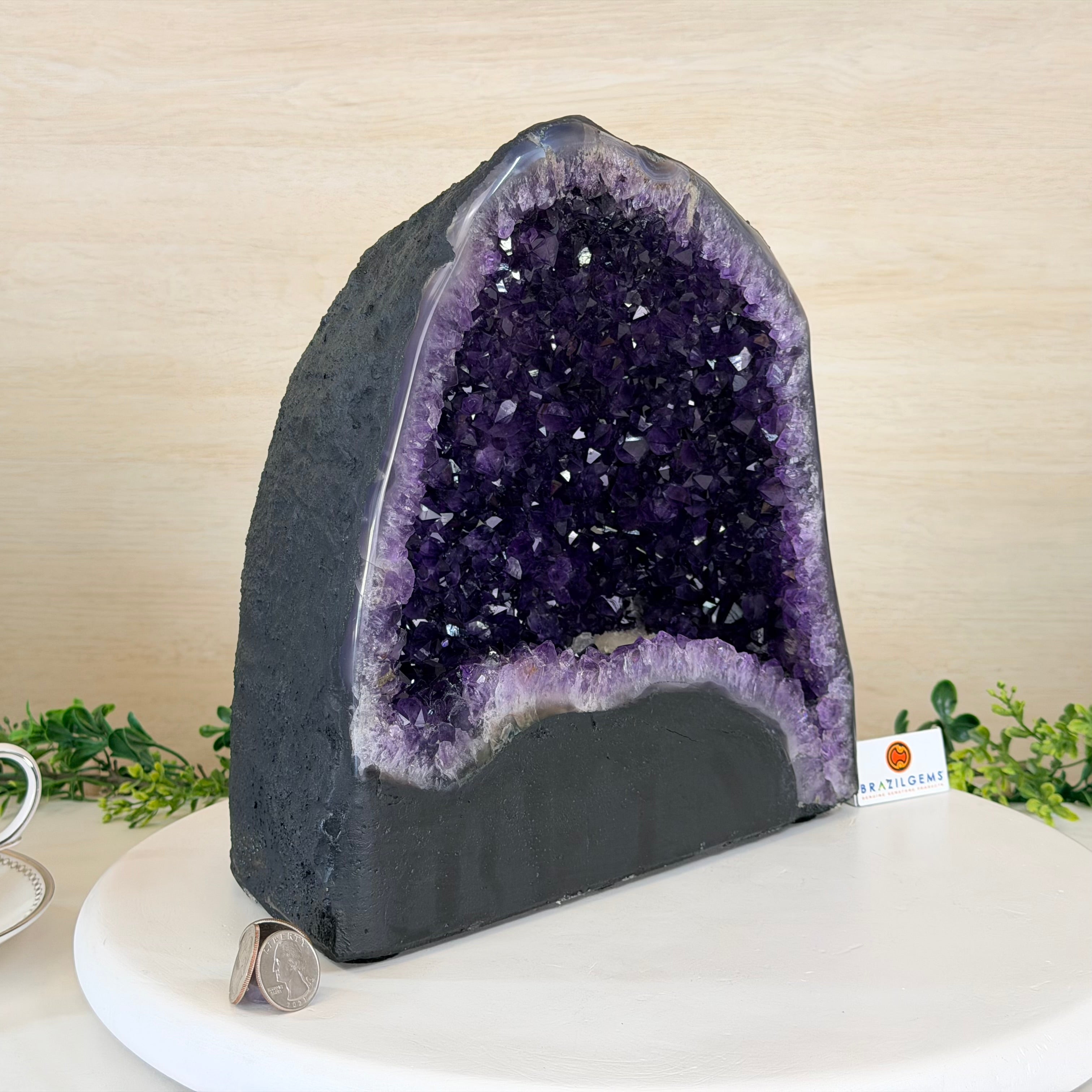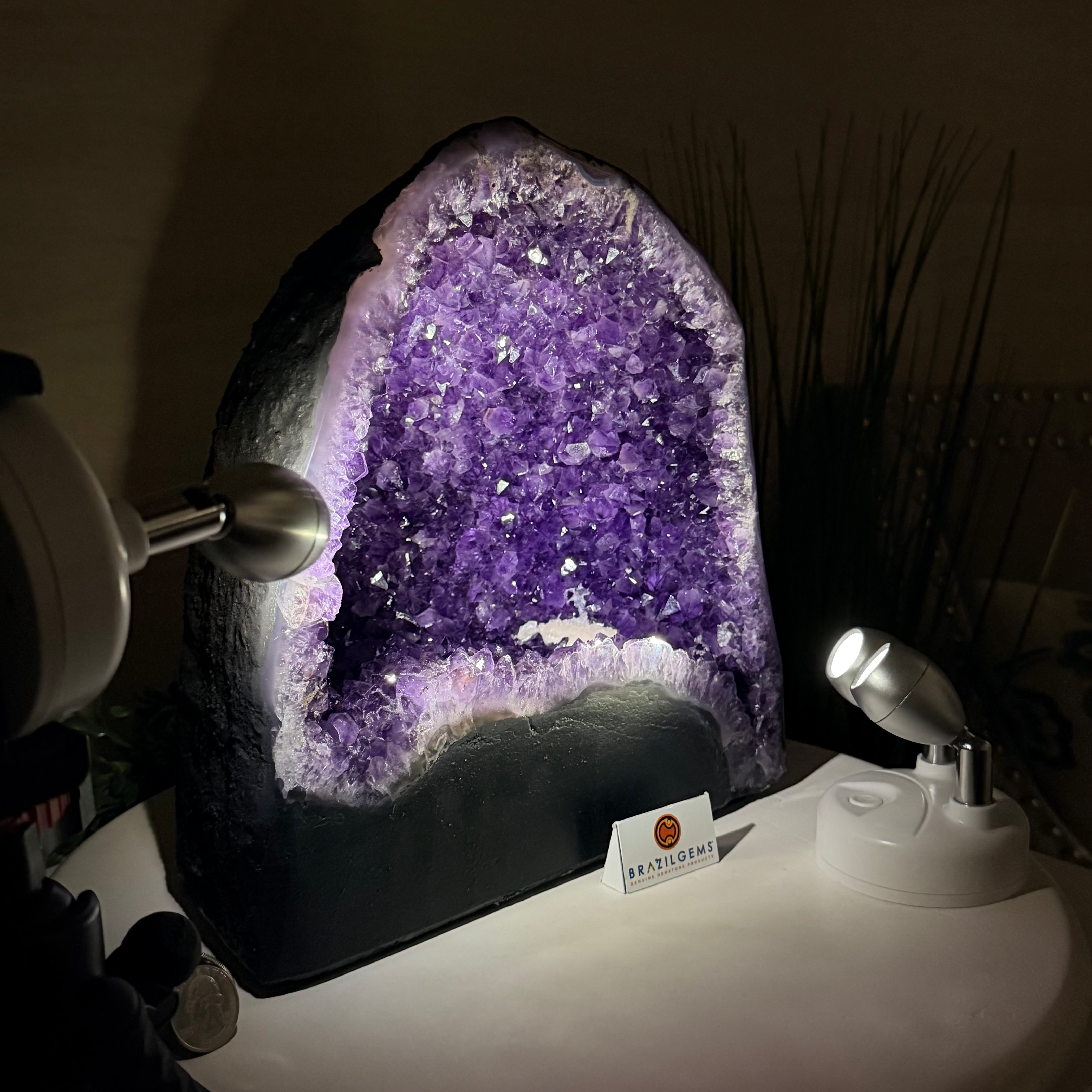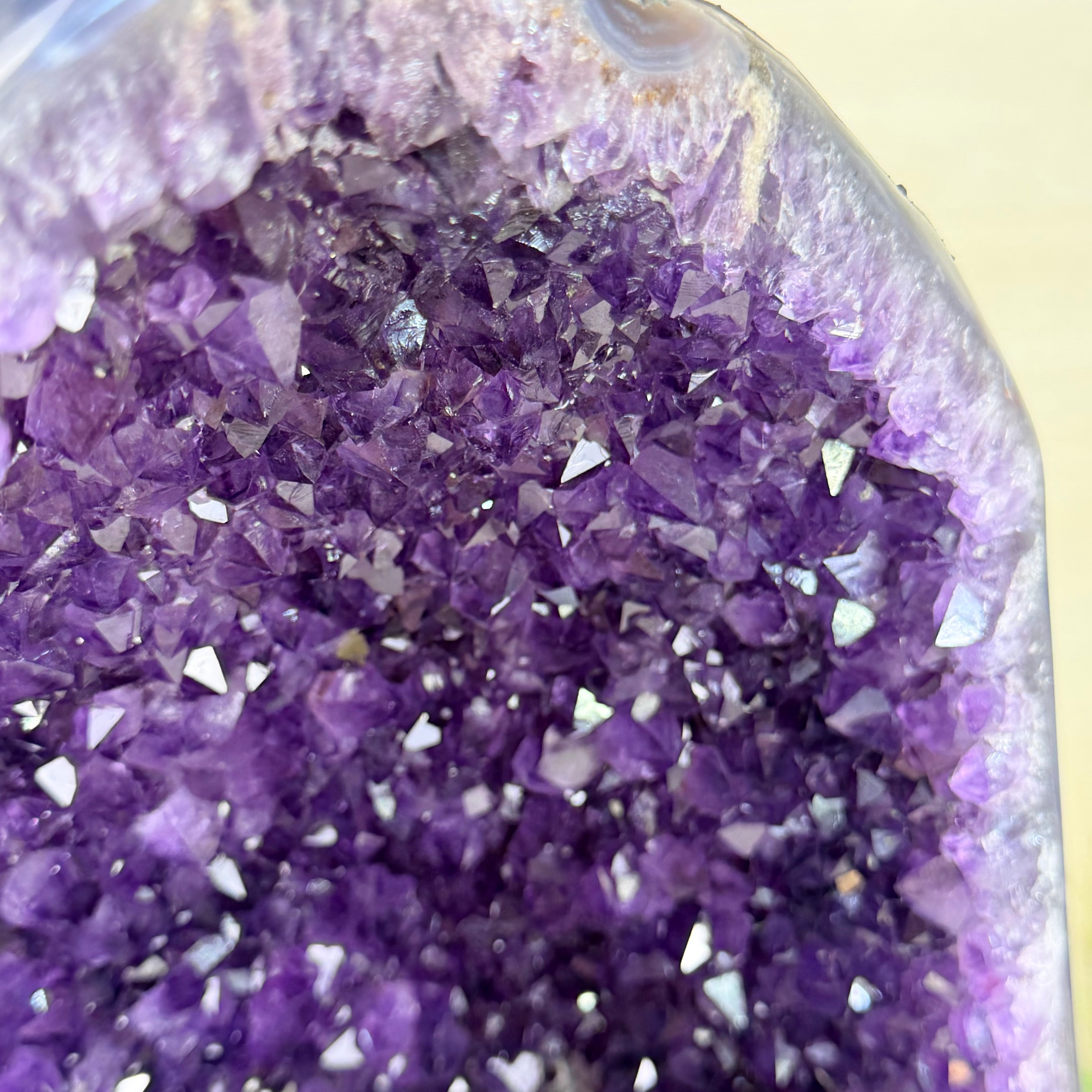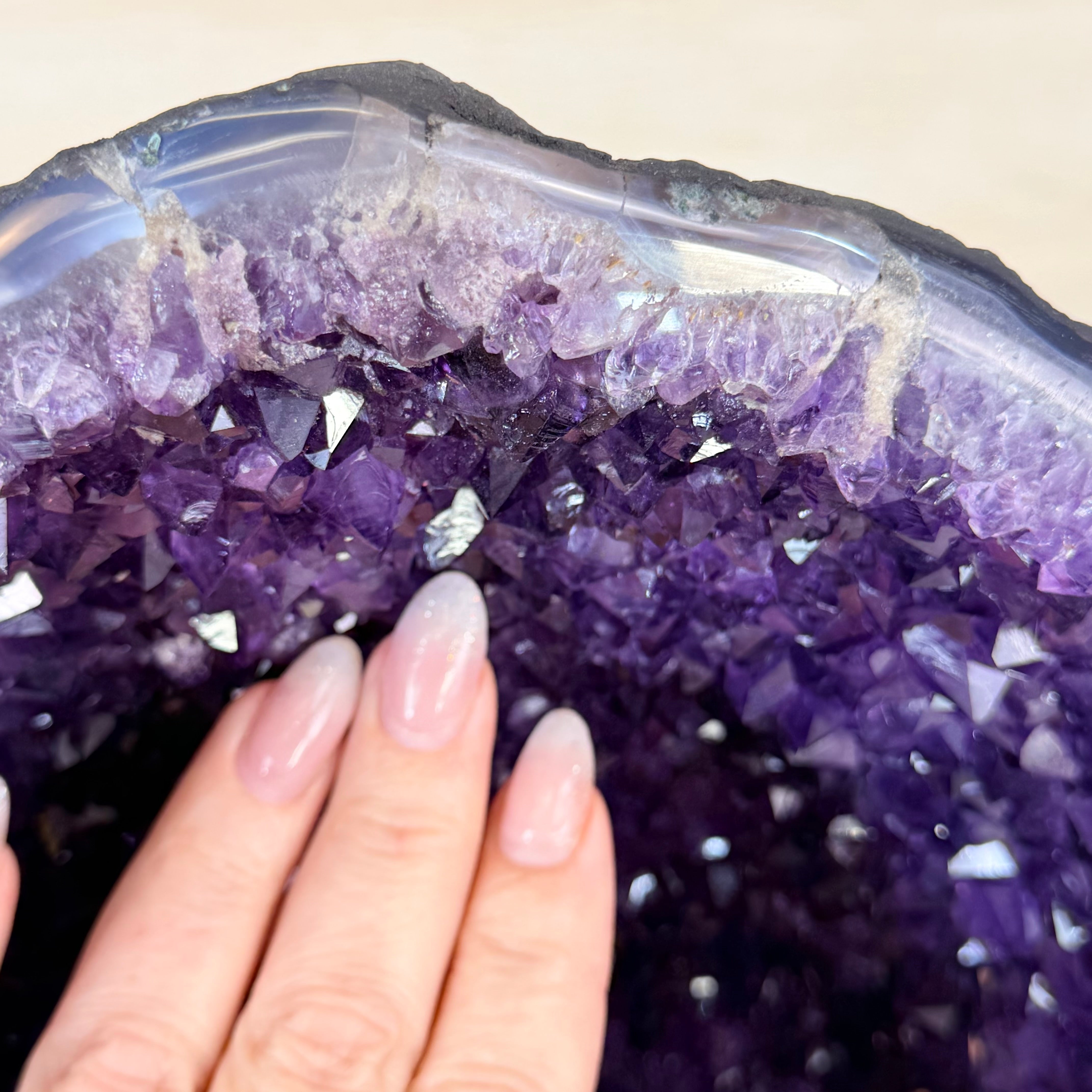 Sourced directly from Amethyst mine owners in Brazil, this magnificent piece showcases nature’s artistry at its finest, formed over millions of years in ancient volcanic cavities.
