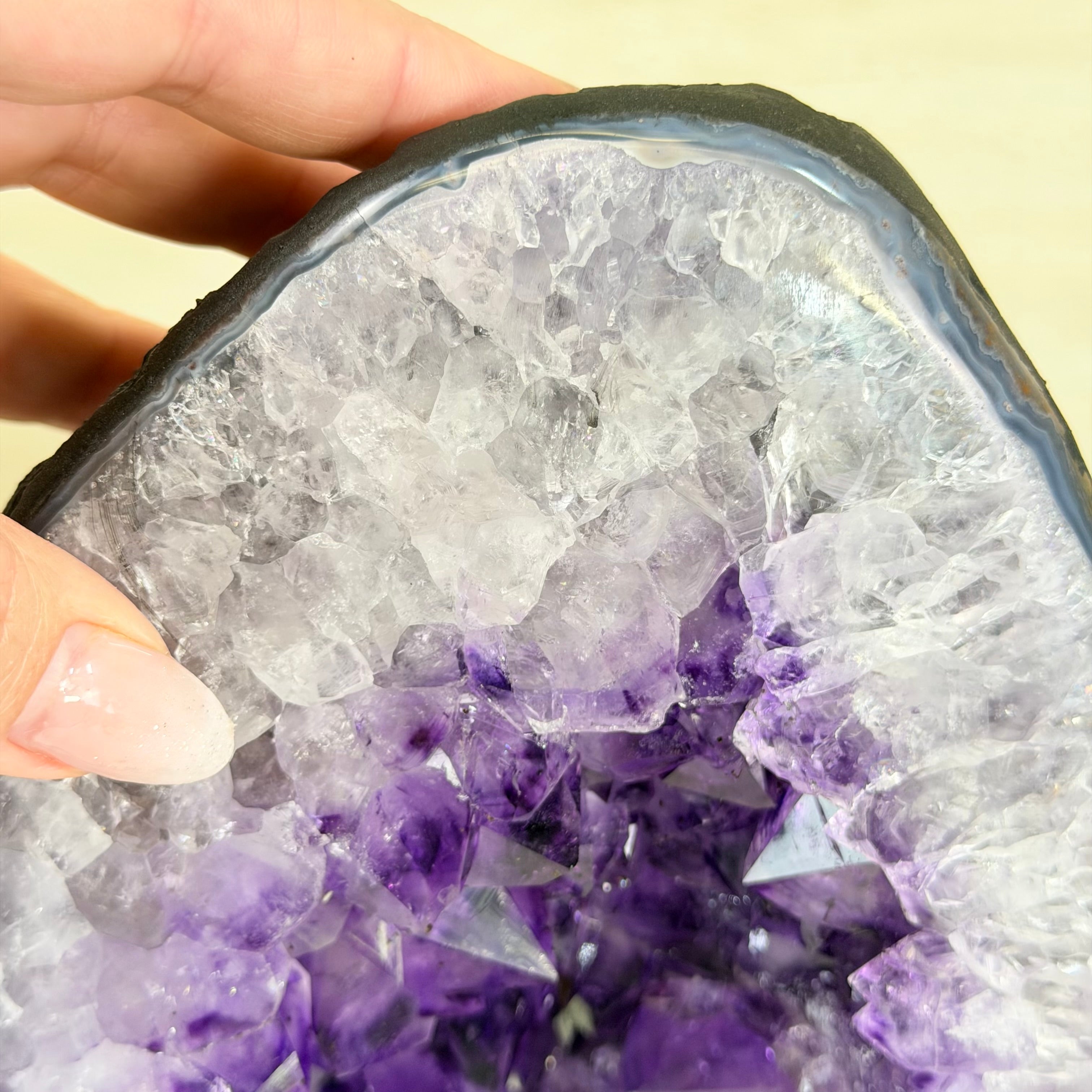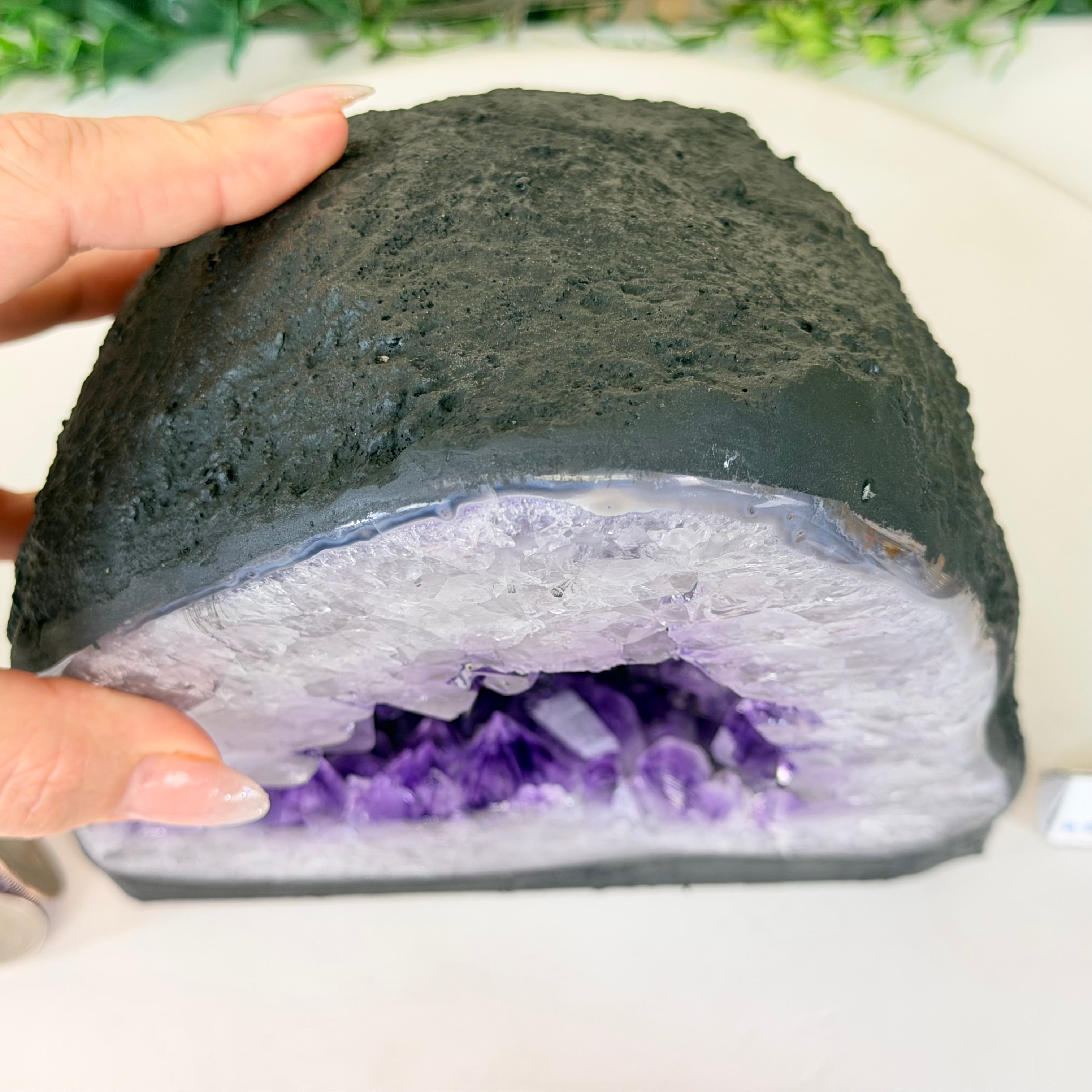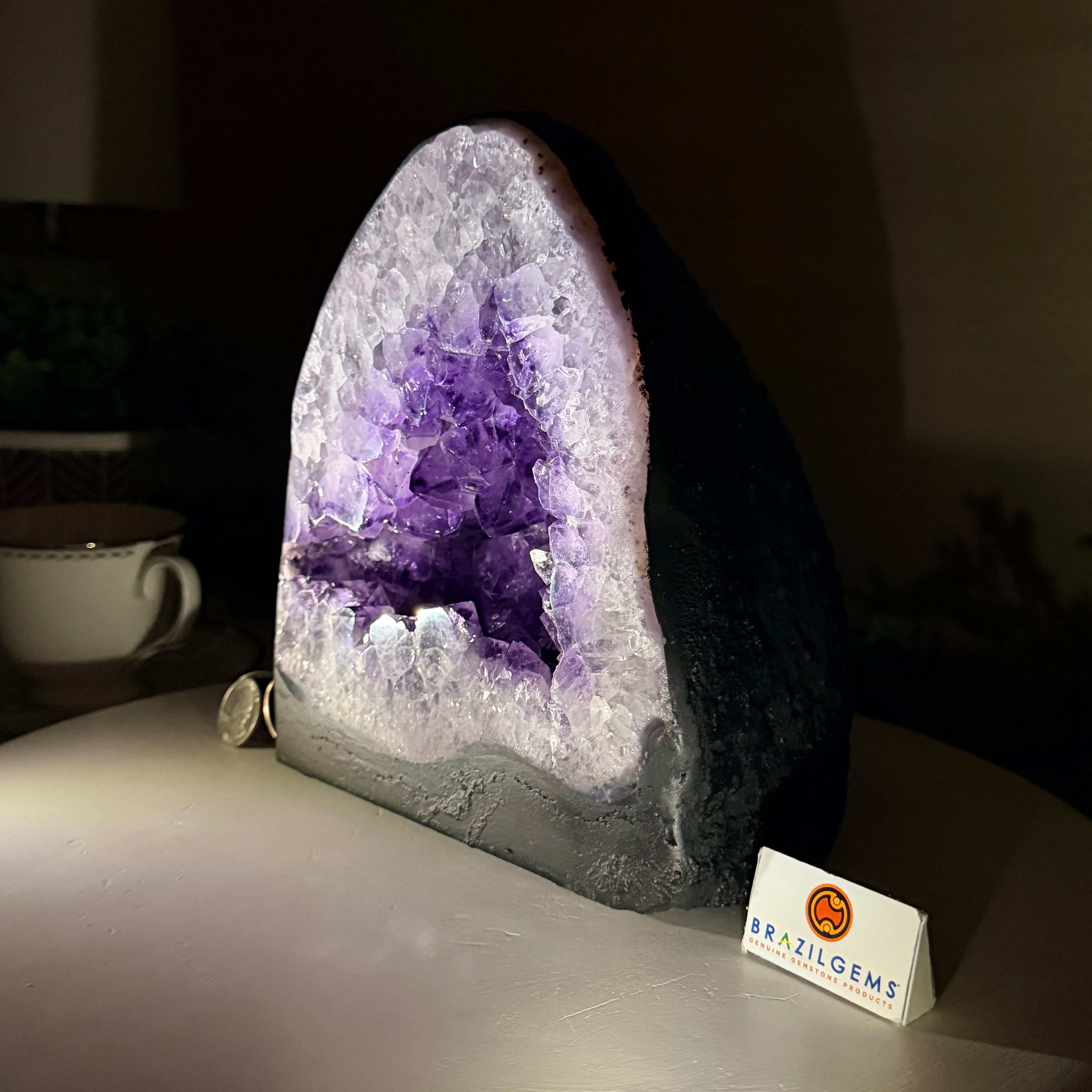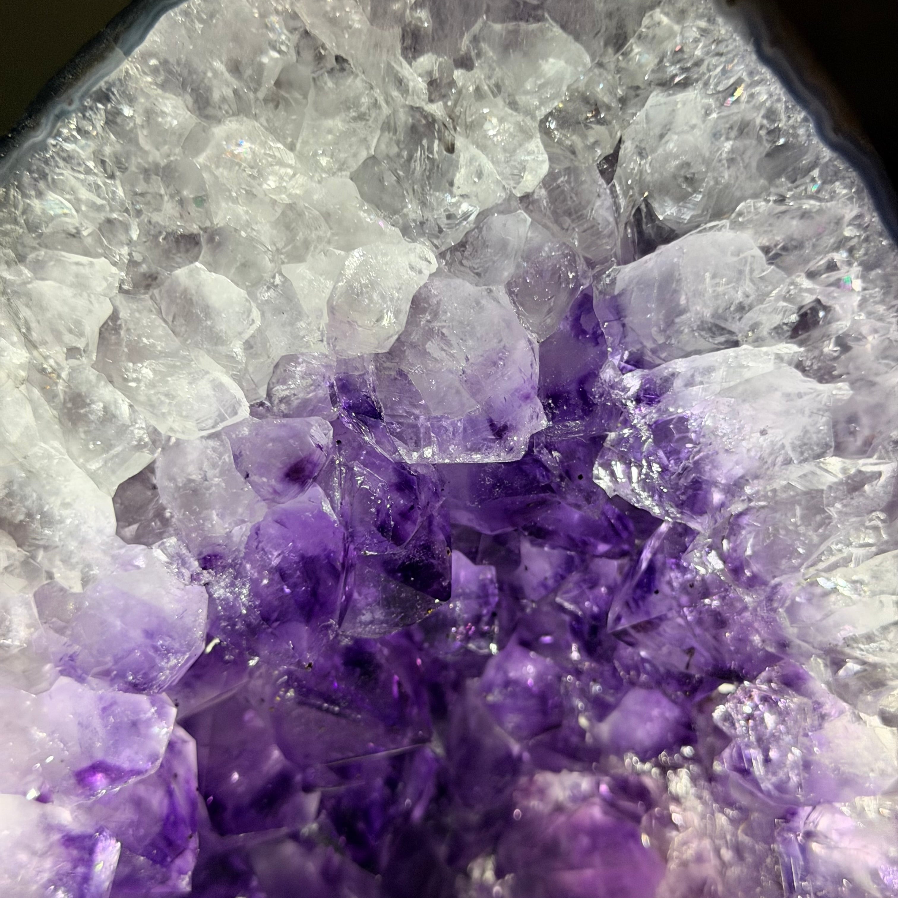 Sourced directly from Amethyst mine owners in Brazil, this magnificent piece showcases nature’s artistry at its finest, formed over millions of years in ancient volcanic cavities.
