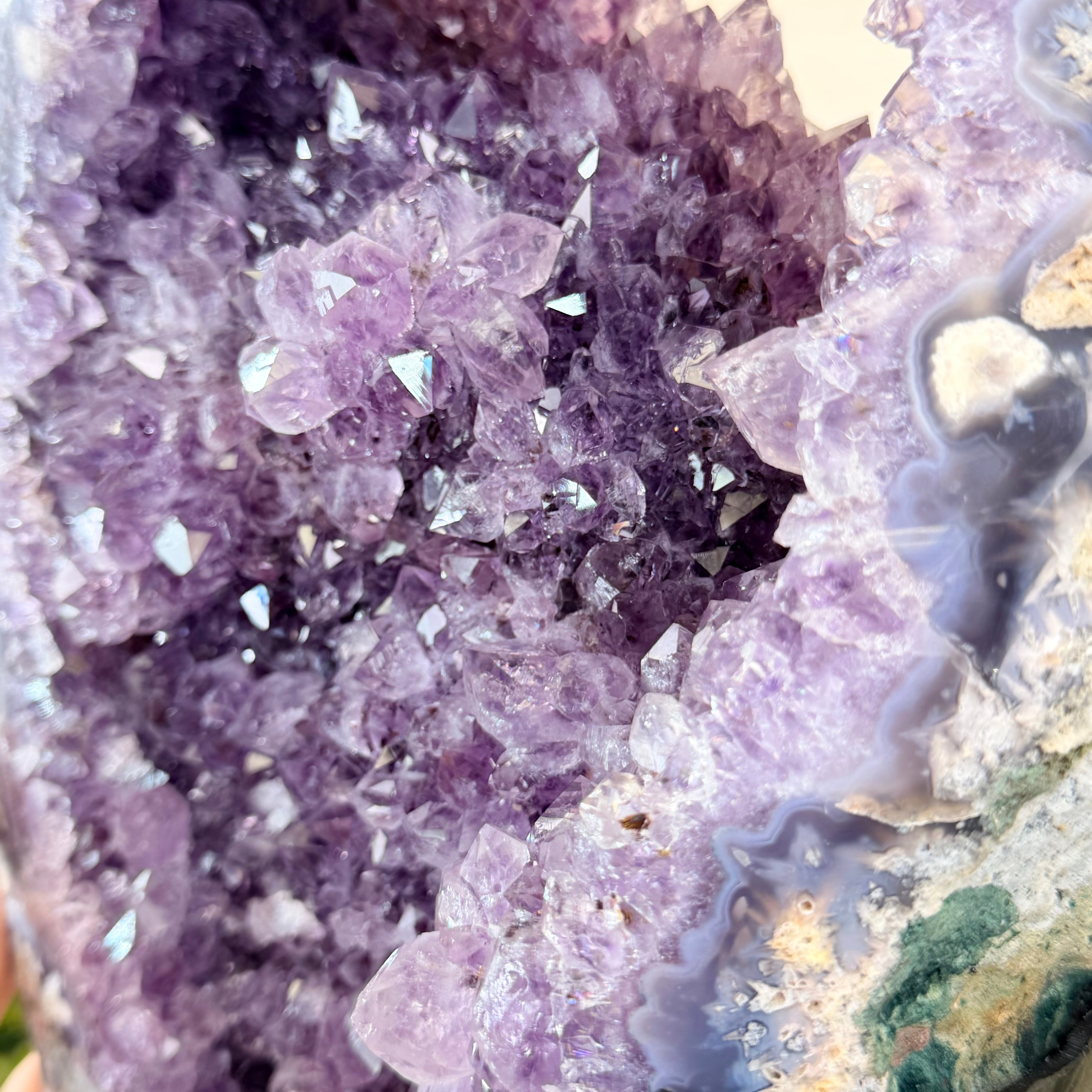 A crystal portal is often depicted as a mystical gateway or entrance formed with crystals, believed to connect different realms or dimensions. It will make a perfect focal point in your home or office. Add a small spotlight behind and watch it glow! It's definitely a gemstone to admire for generations to come.