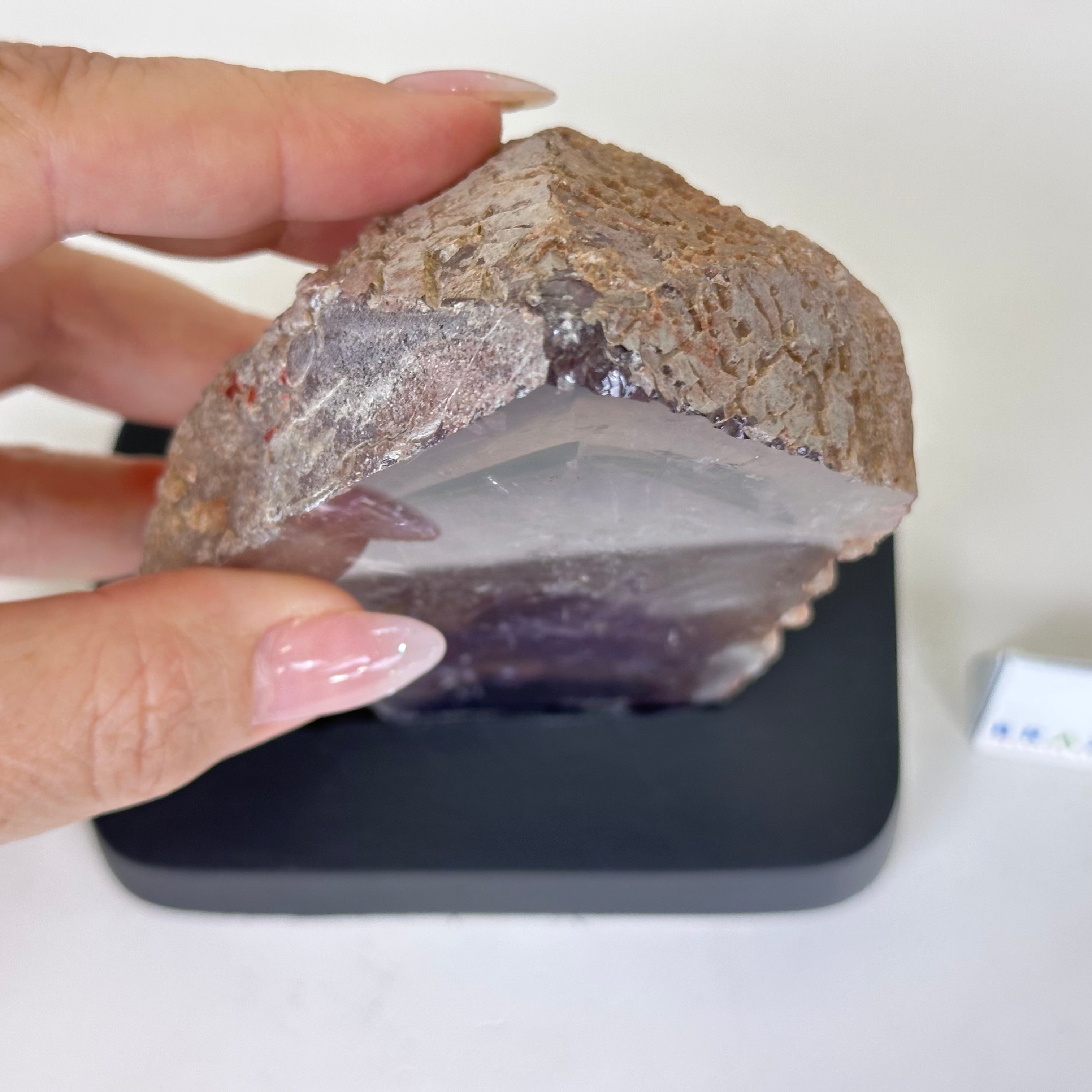 This is a natural gemstone crystal sold by Brazil Gems® as is and as you see it in its images. It is the exact piece you will receive. It may contain natural imperfections as well as imperfections, broken edges and scratches from the extraction, slicing, polishing and mounting processes. The gemstone slice has been glued into its wood base. The wood base has been painted black. At Brazil Gems® we make every effort to get measurements as exact as possible but they are done by human hands and eyes and therefore may have minor discrepancies.