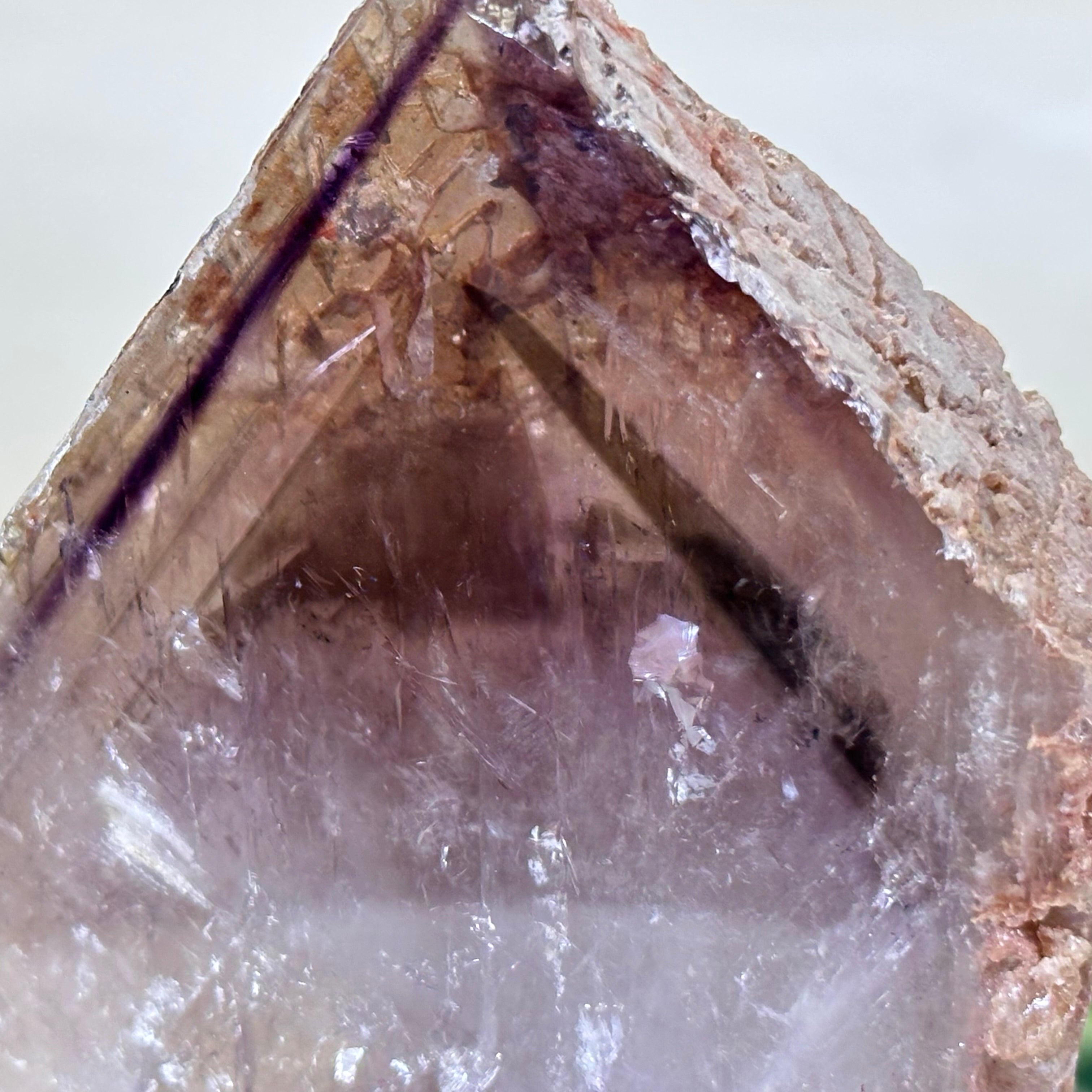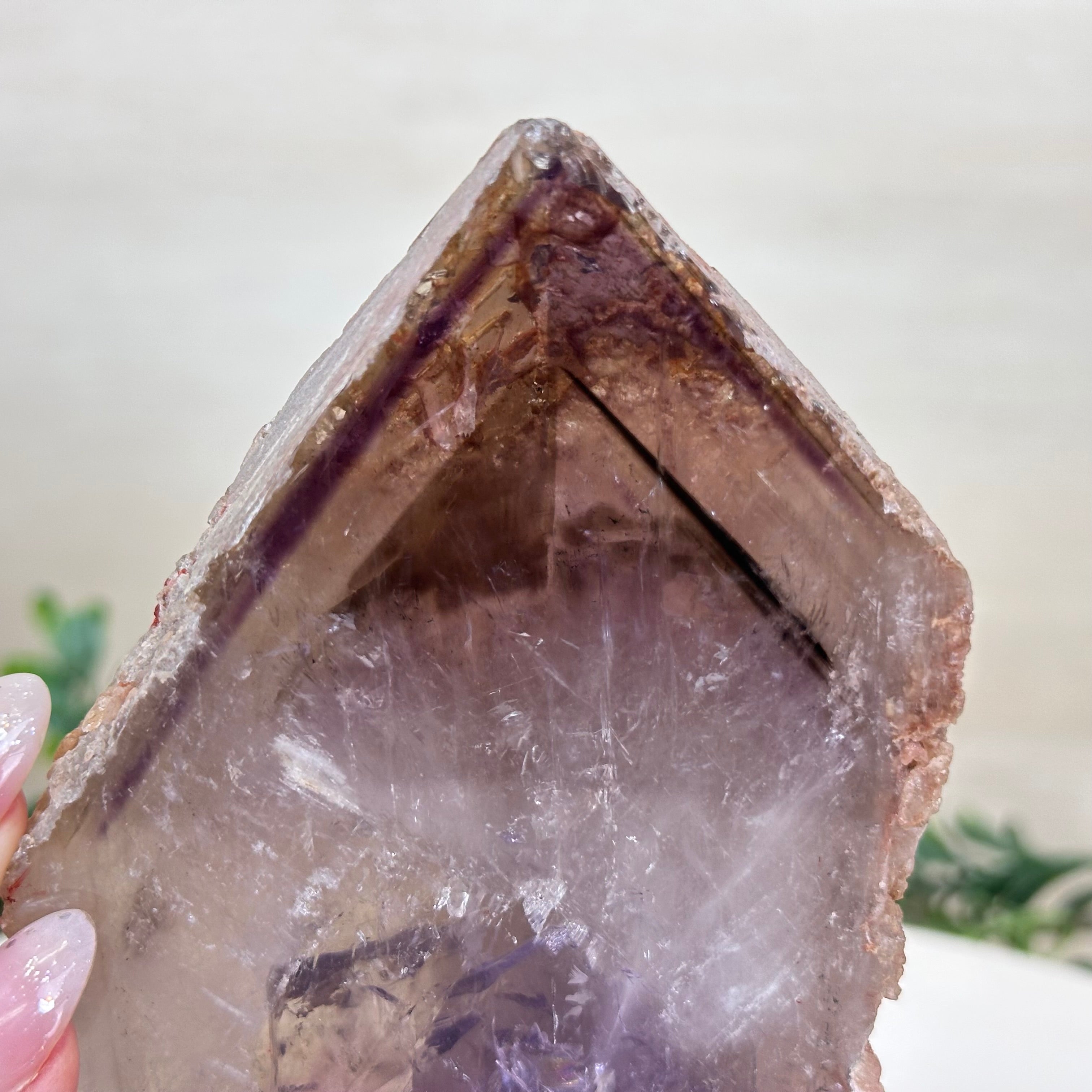 Elevate your space with this Brazilian Amethyst Slice on a wood base. Amethyst like this is known as Chevron Amethyst because it has bands of purple in a Chevron pattern. This piece is beautifully polished on the front with rough edges on the sides and the back. This slice will make a great addition or start to your crystal collection and will accent the décor of any room.