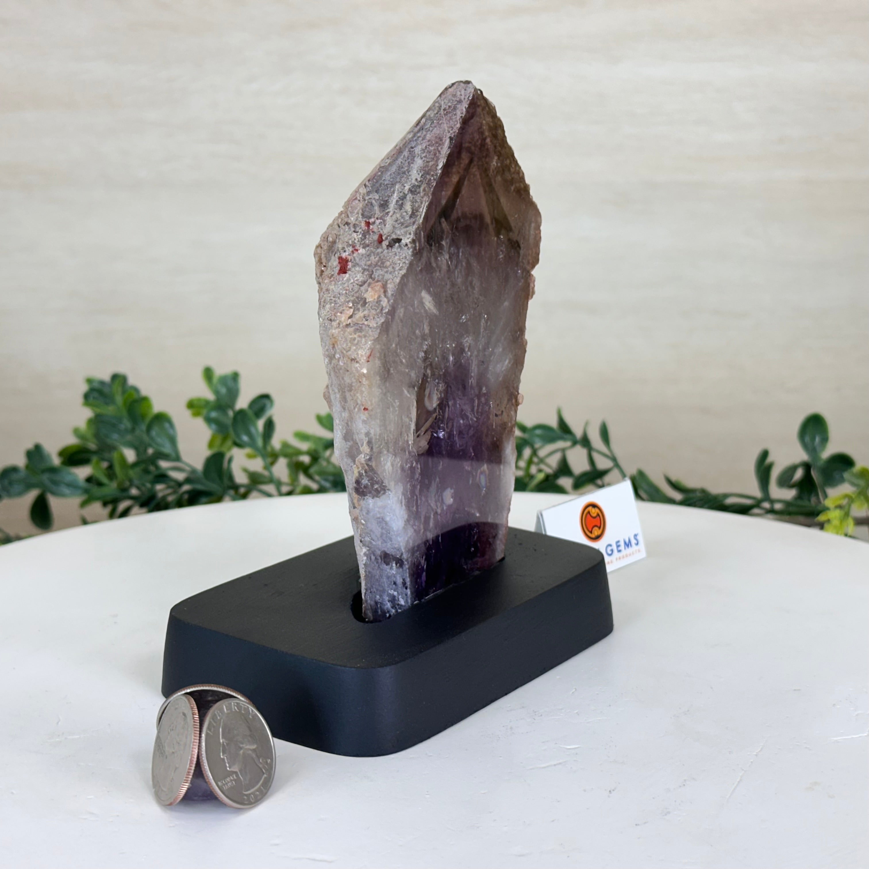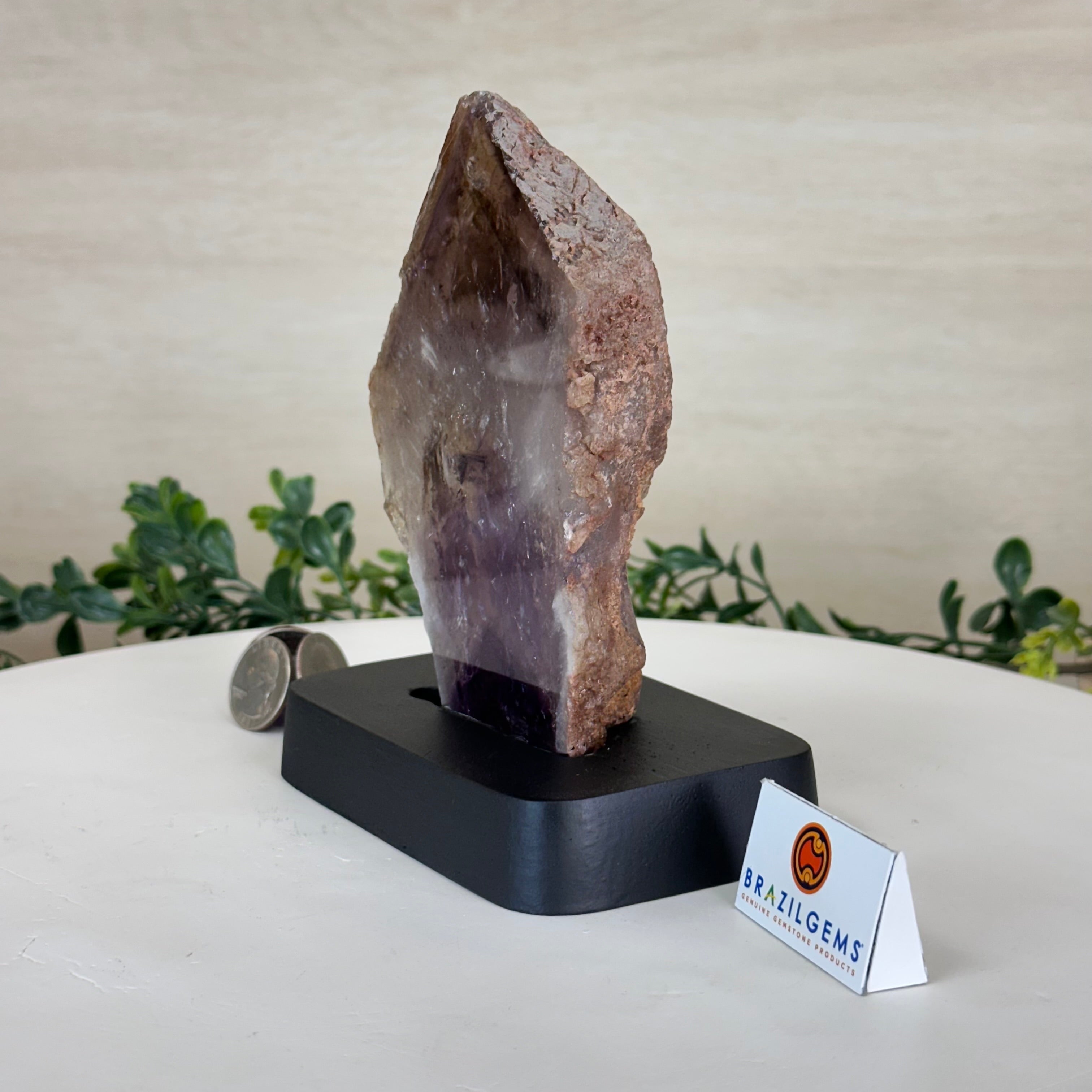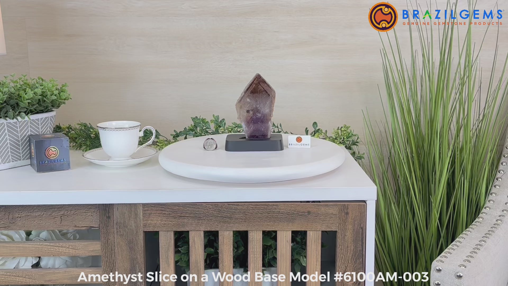 Disclaimer: This is a natural gemstone crystal sold by Brazil Gems® as is and as you see it in its images. It is the exact piece you will receive. It may contain natural imperfections as well as imperfections, broken edges and scratches from the extraction, slicing, polishing and mounting processes. The gemstone slice has been glued into its wood base. The wood base has been painted black. At Brazil Gems® we make every effort to get measurements as exact as possible but they are done by human hands and eyes and therefore may have minor discrepancies.