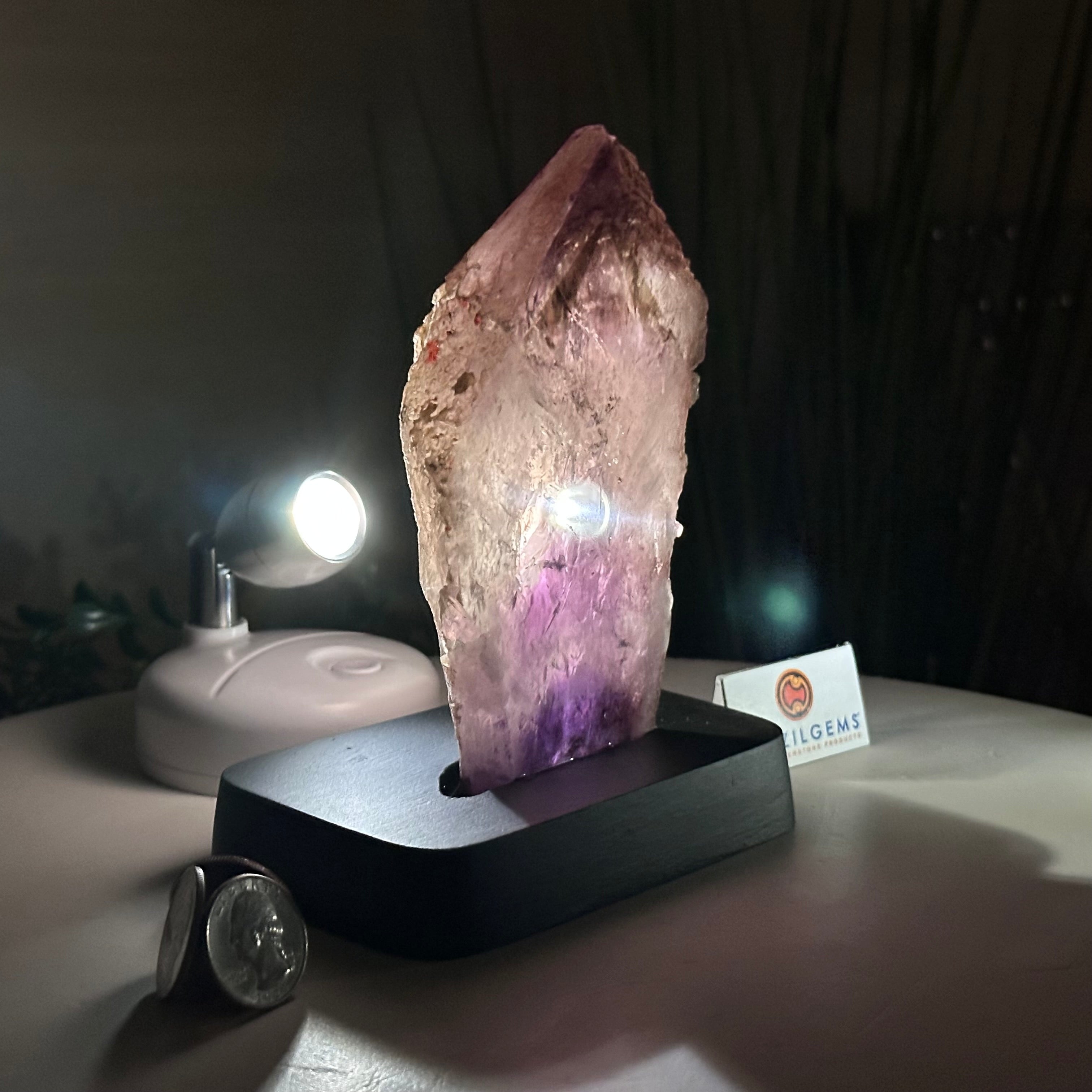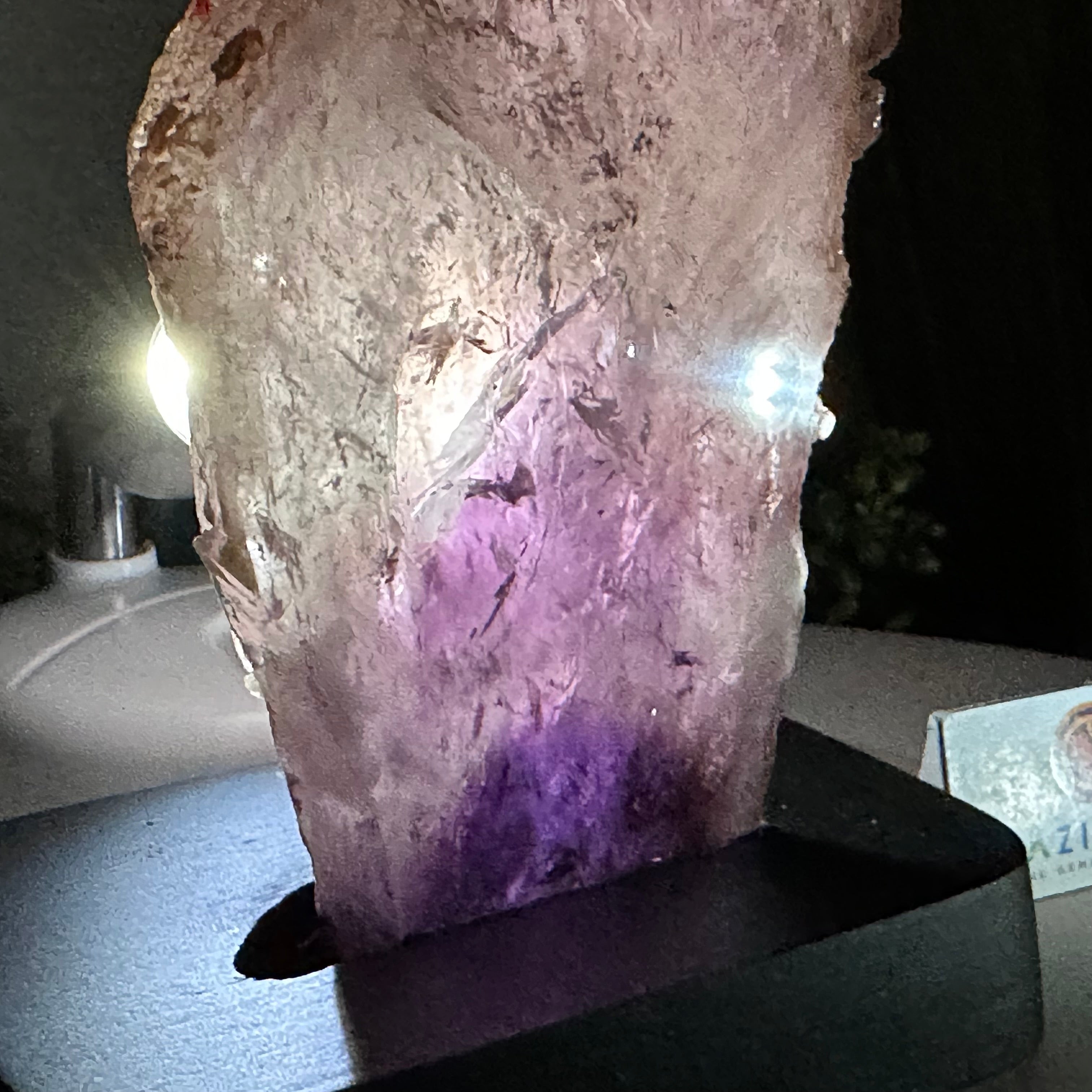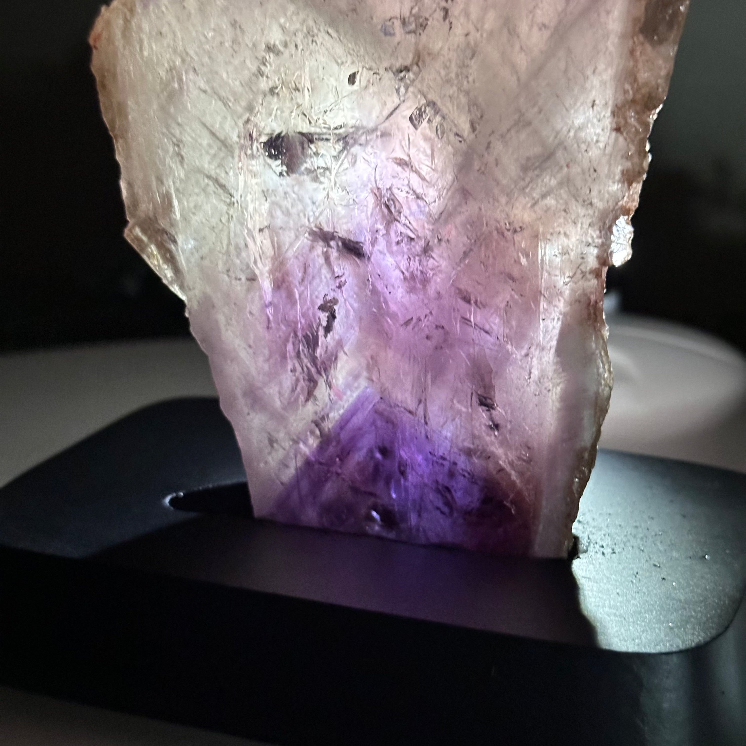 Disclaimer: This is a natural gemstone crystal sold by Brazil Gems® as is and as you see it in its images. It is the exact piece you will receive. It may contain natural imperfections as well as imperfections, broken edges and scratches from the extraction, slicing, polishing and mounting processes. The gemstone slice has been glued into its wood base. The wood base has been painted black. At Brazil Gems® we make every effort to get measurements as exact as possible but they are done by human hands and eyes and therefore may have minor discrepancies.