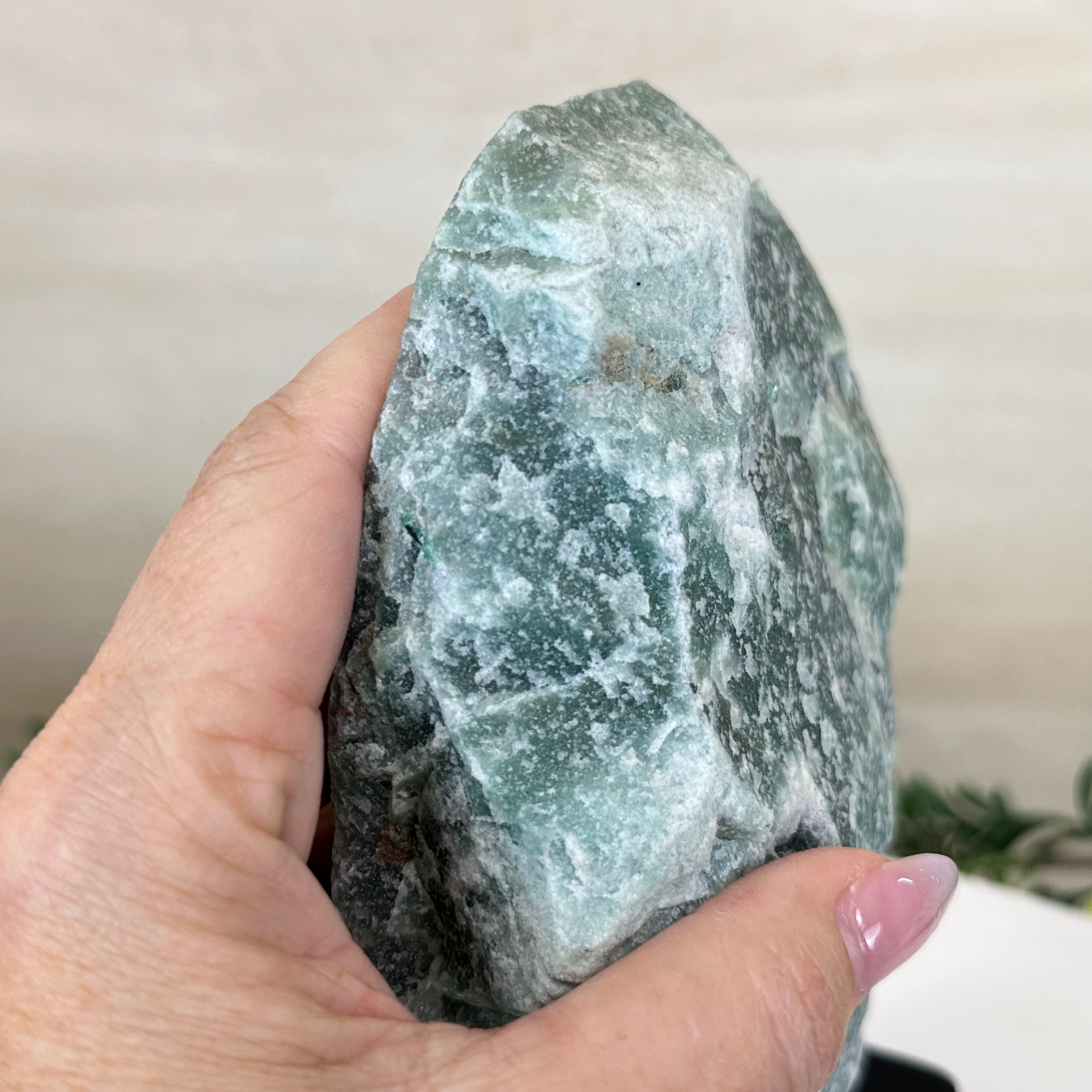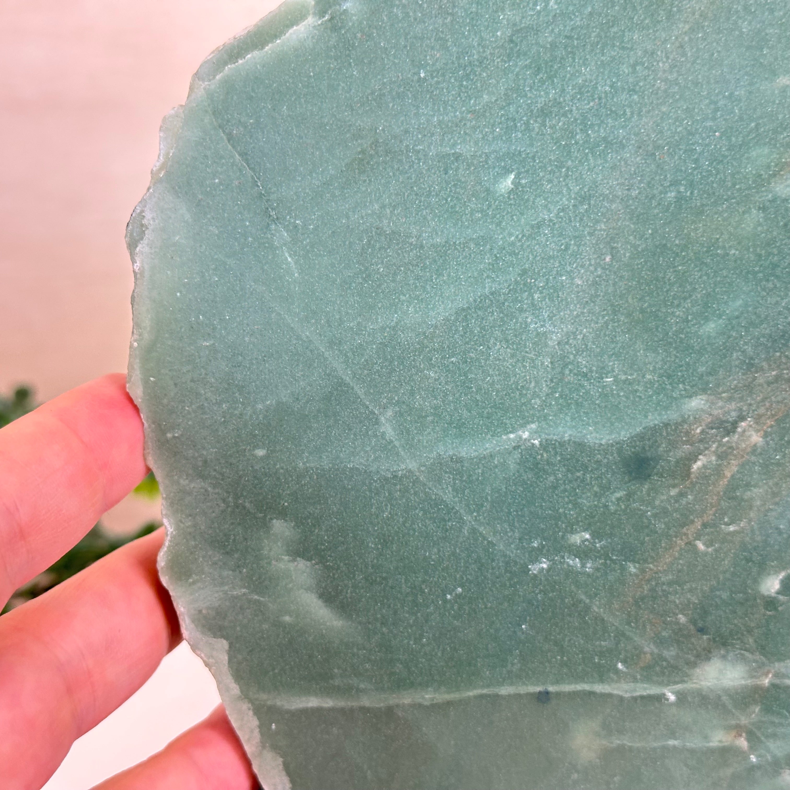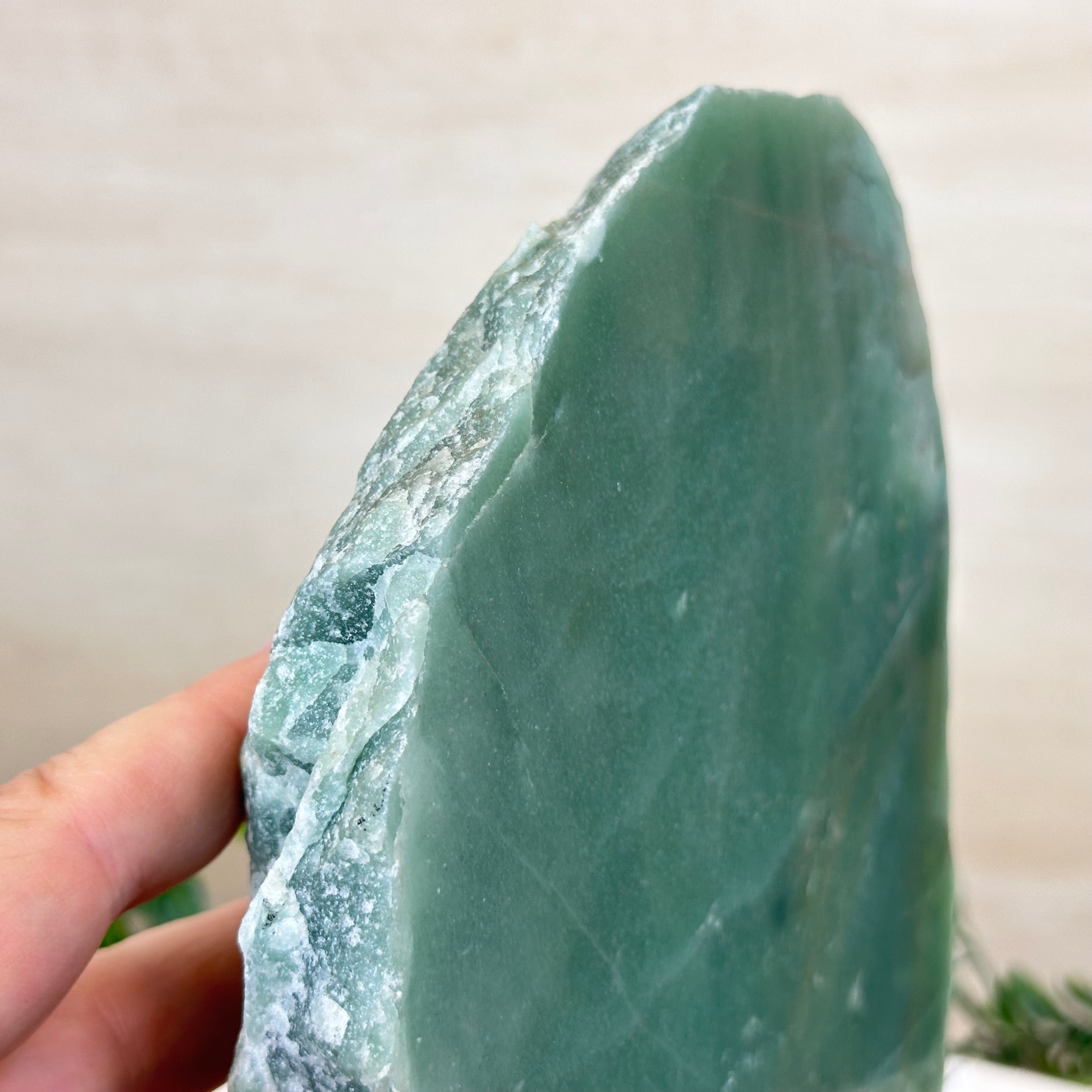 Green Quartz Polished Slice with Rough Edges, Wood Base 8.1" Tall # 6100GQ-030